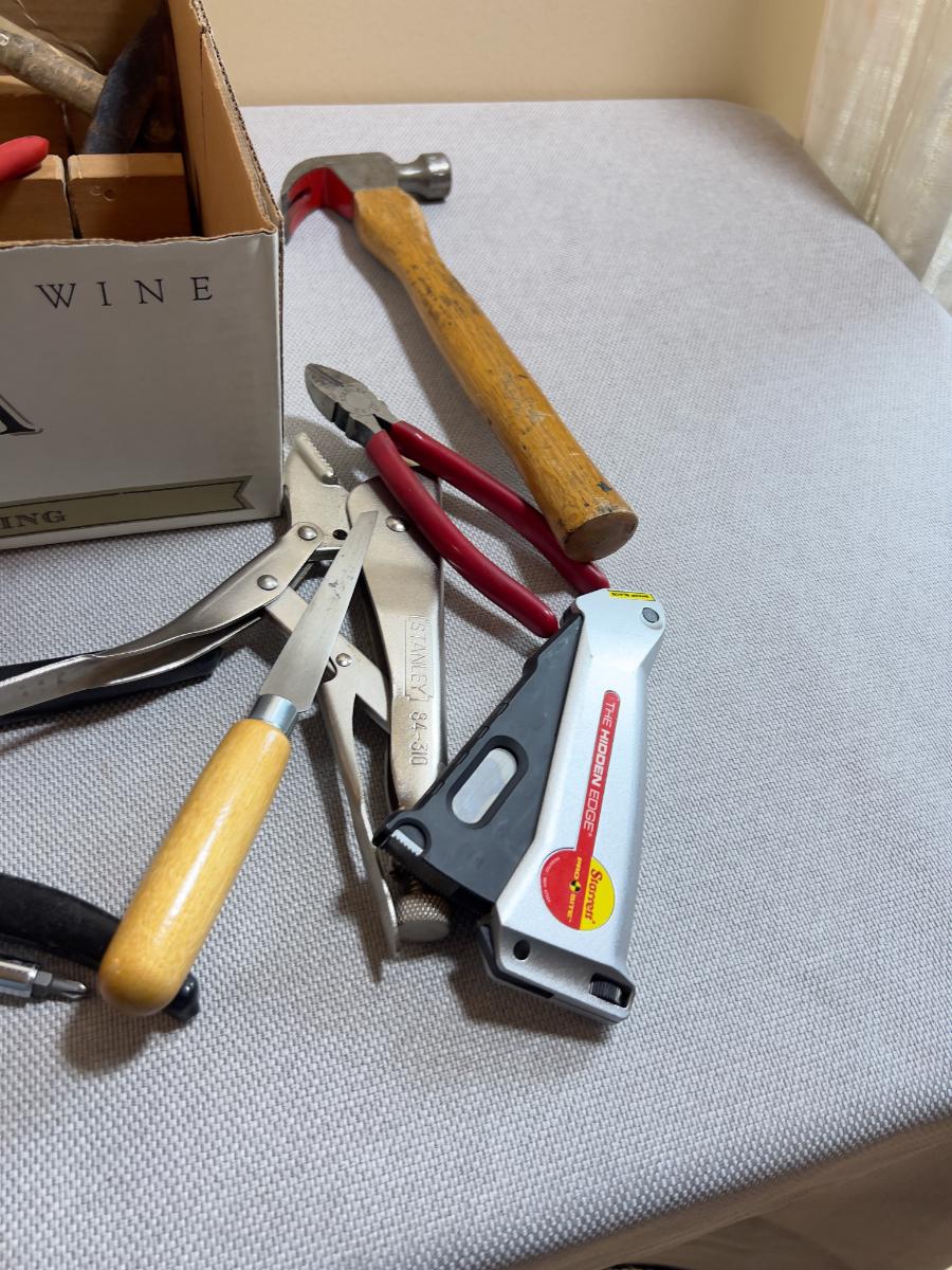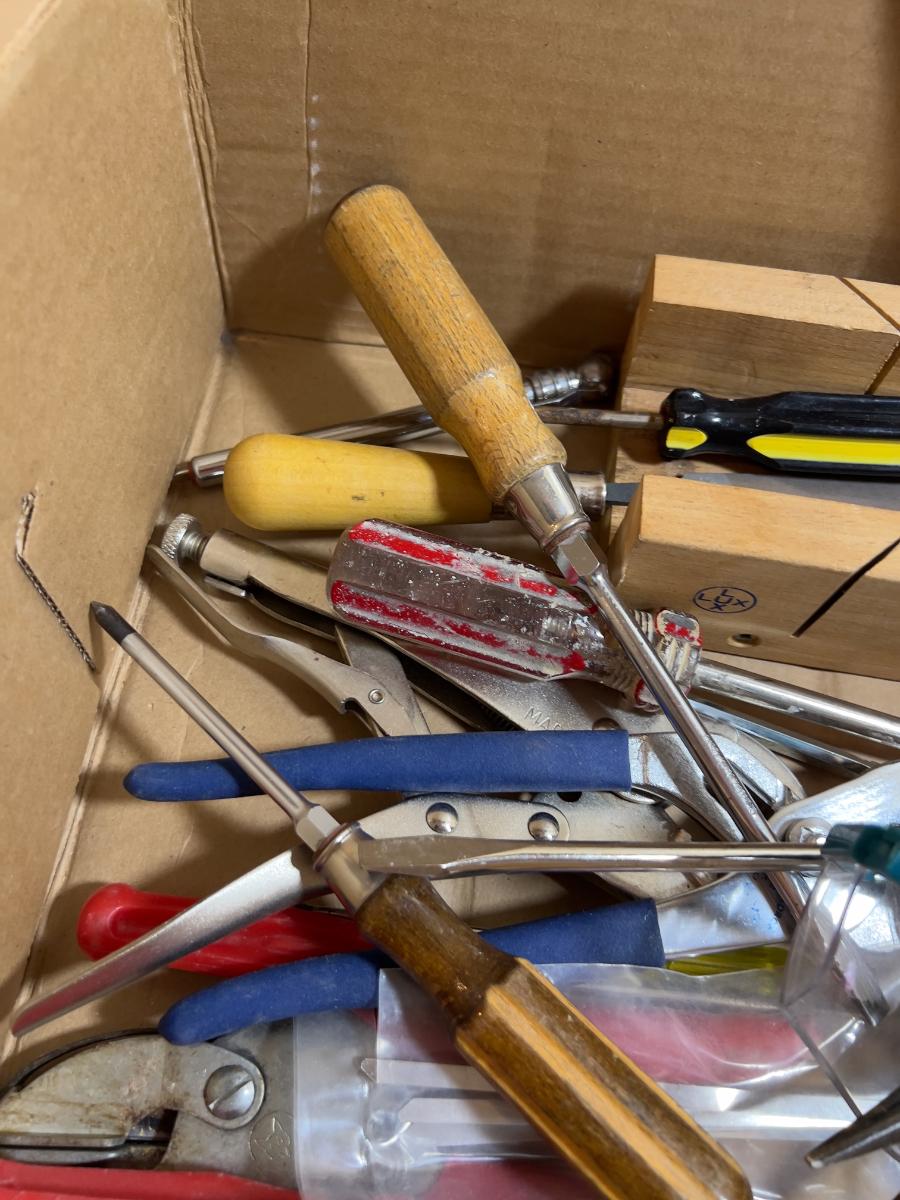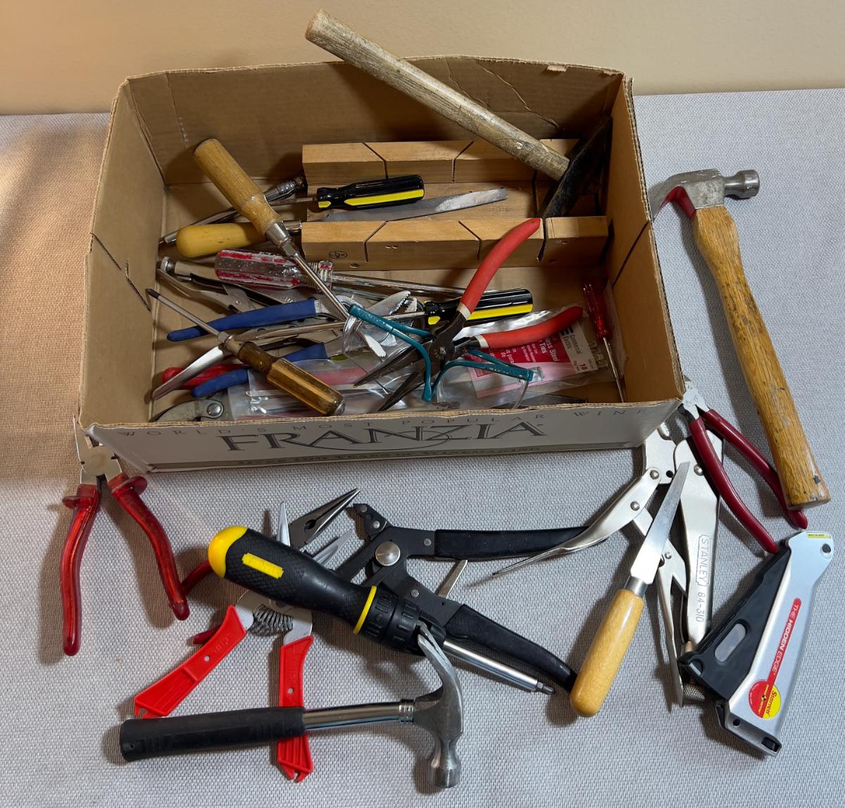 Tray full of Hand Tools: Hammer, Wrenches, Screw Drivers