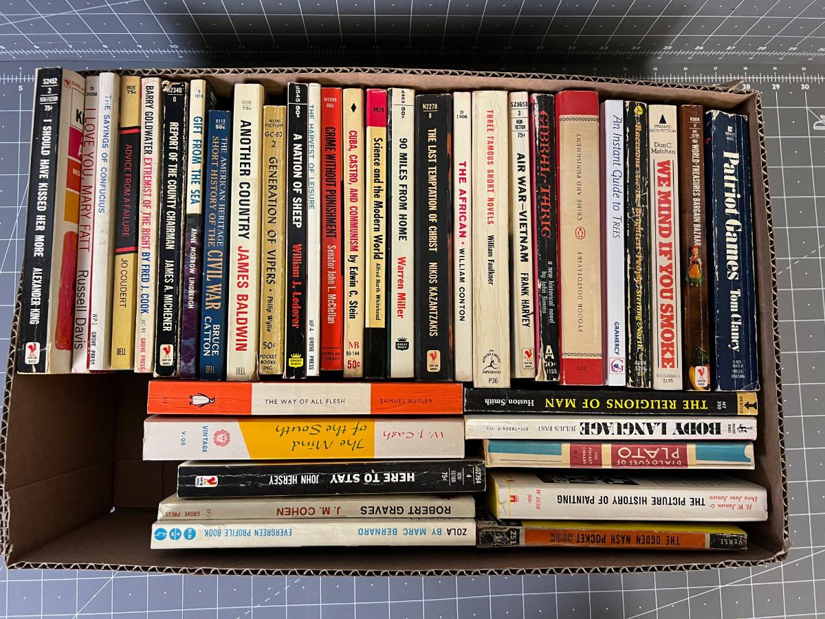 Tray full of Paper Back Books from 60's and 70's or Earlier