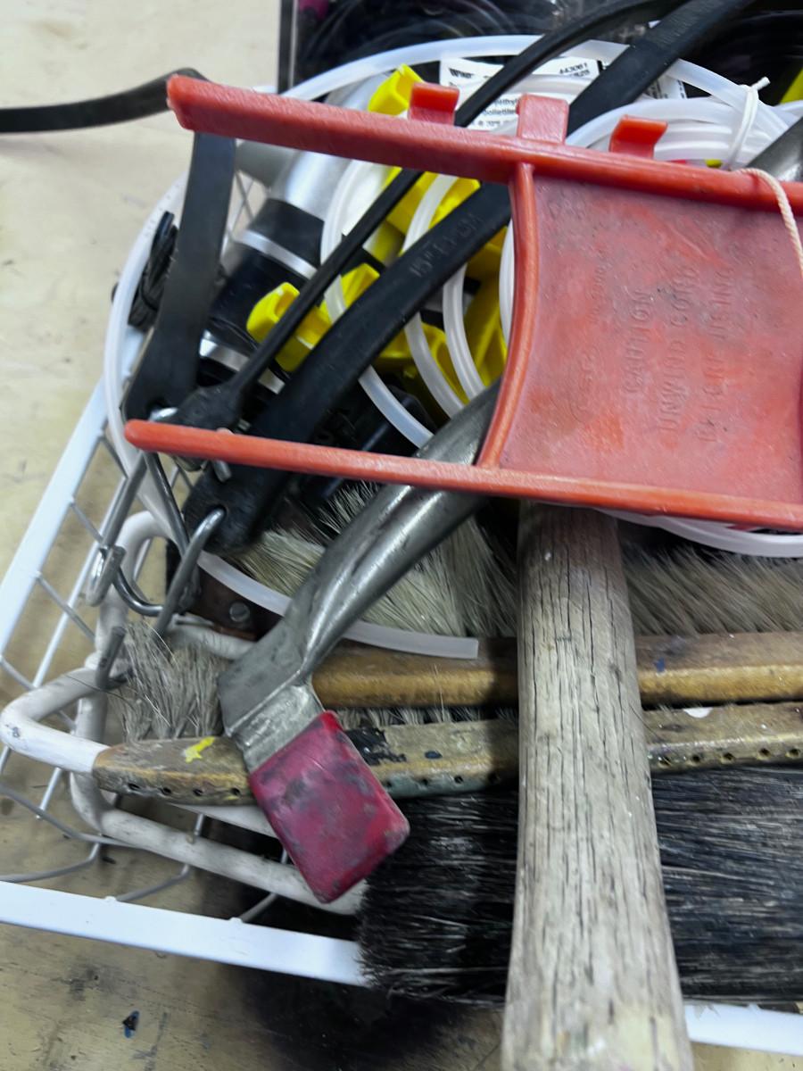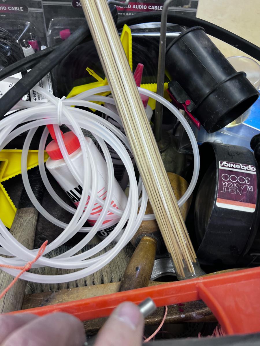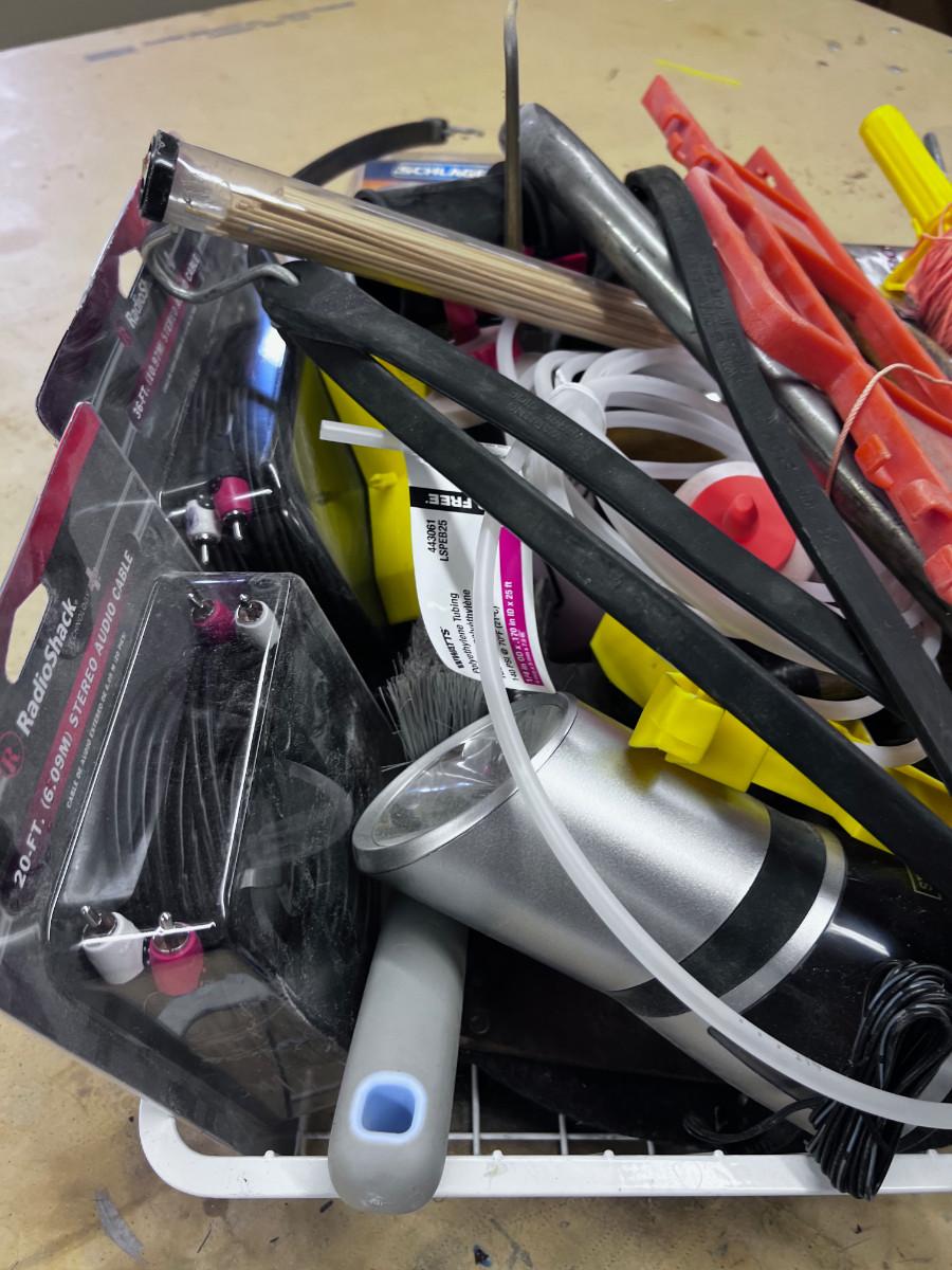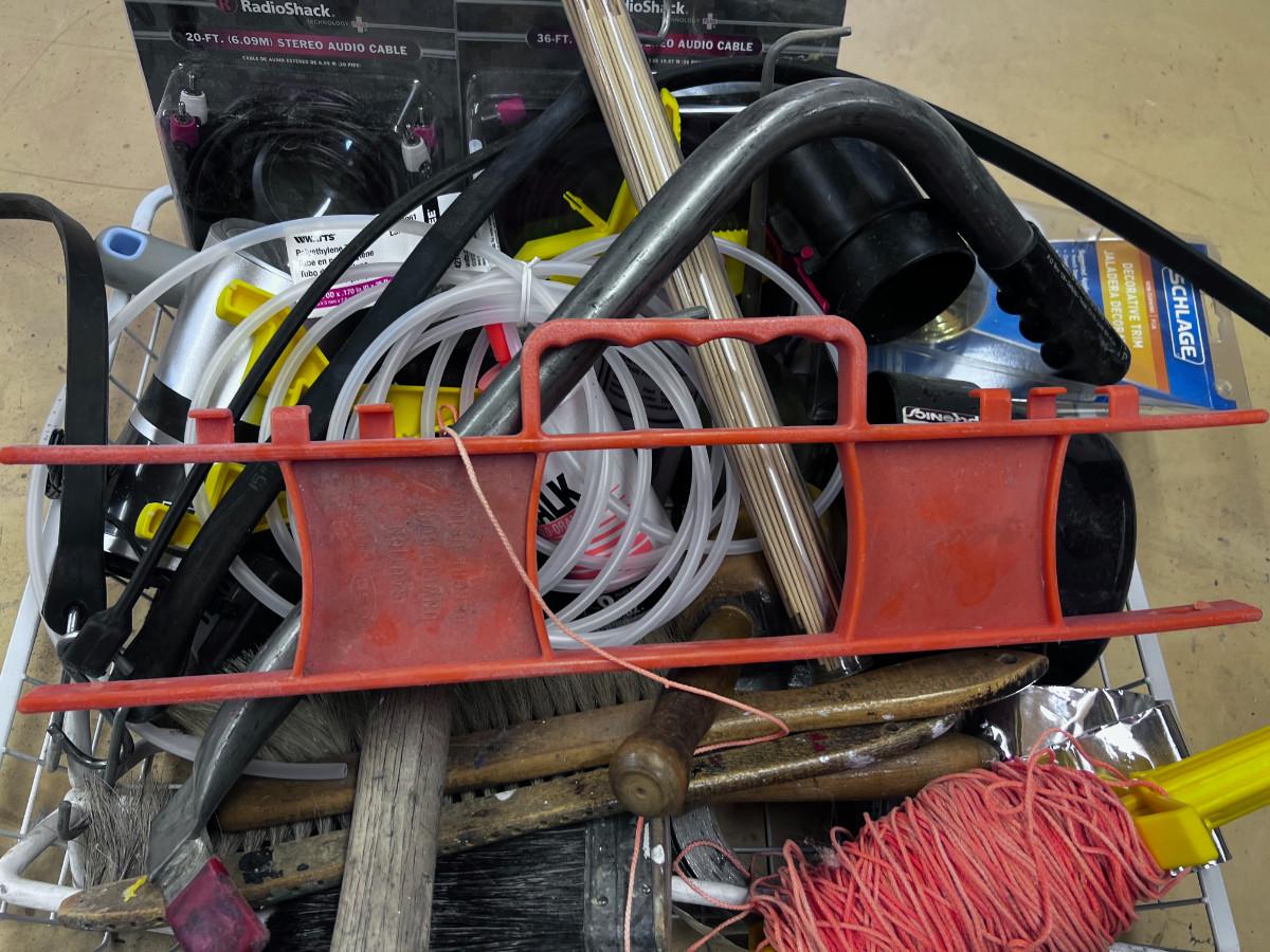 Tray FULL of STUFF: Wire, Pencil Sharpener, Bungy Cords etc.,
