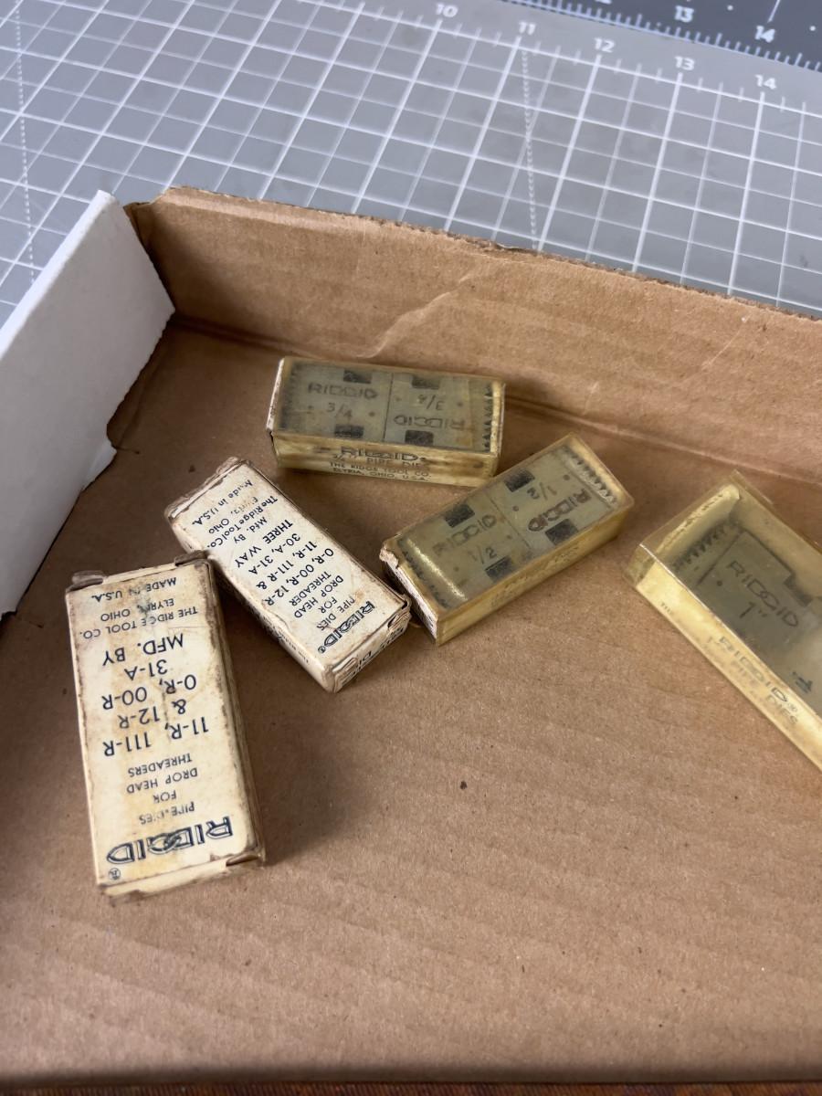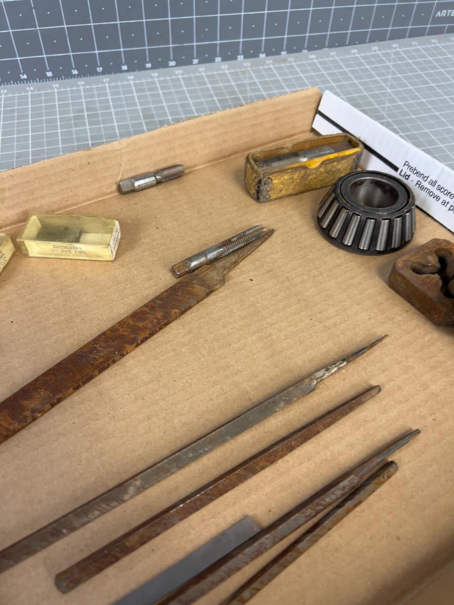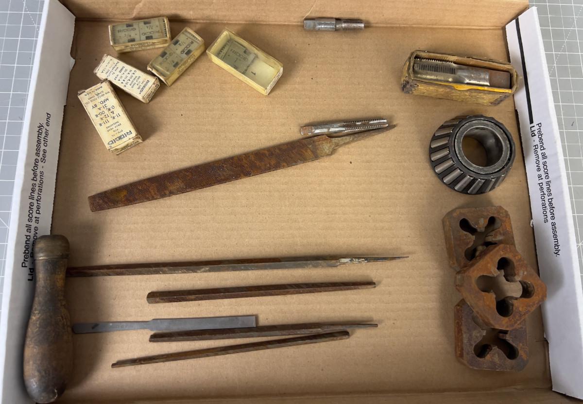 Tray full of Tools: File, Tape & Die, Threader Teeth