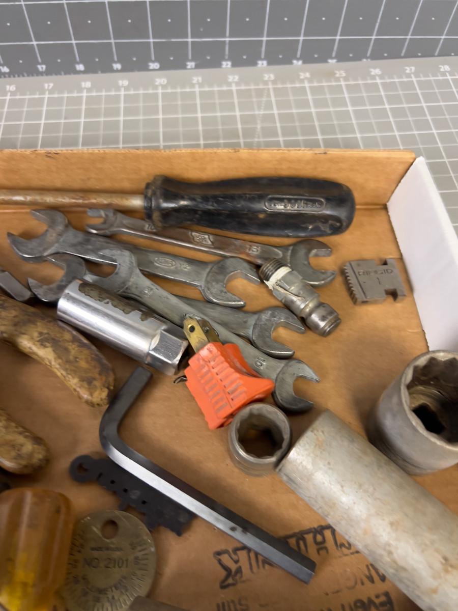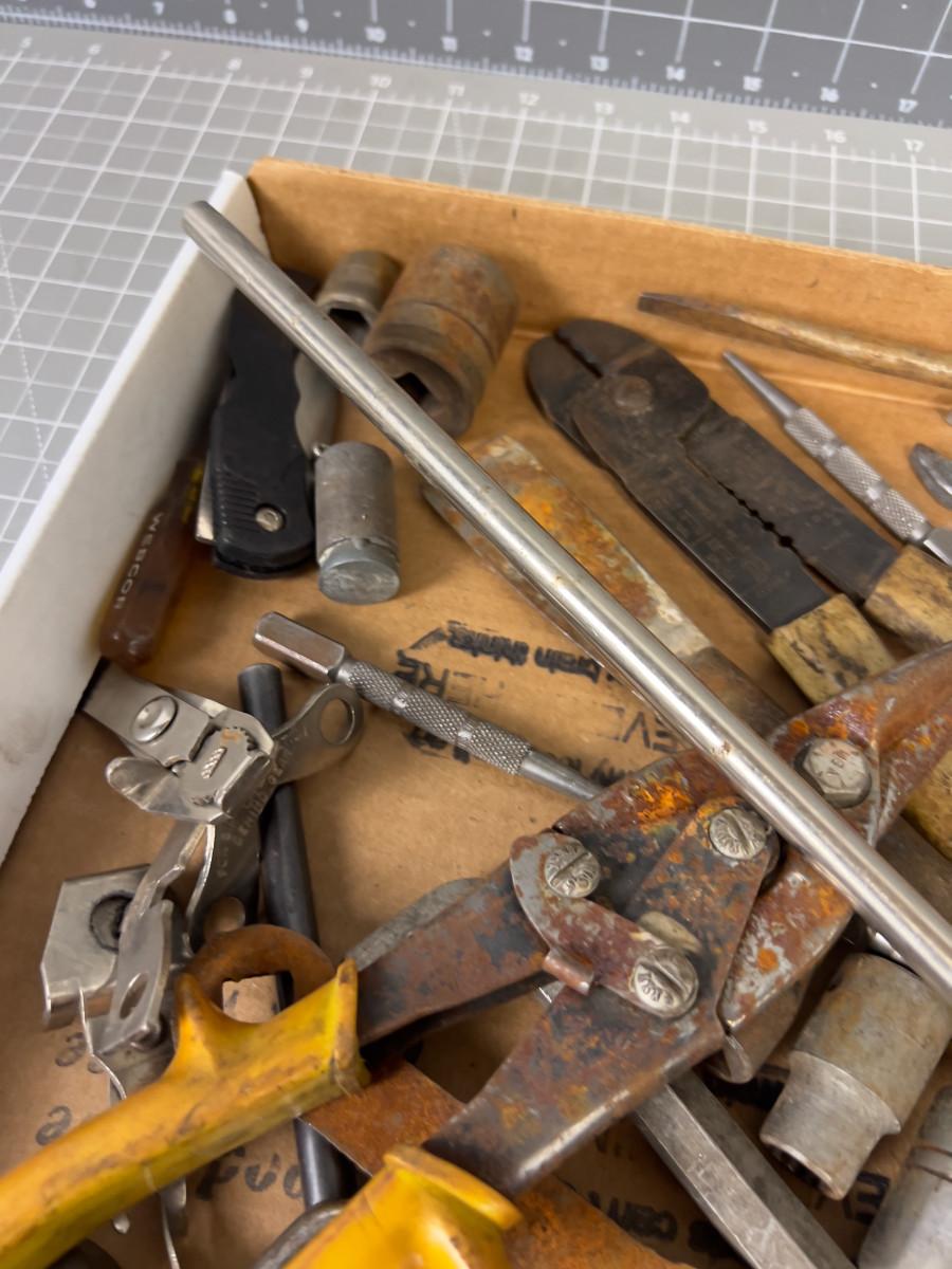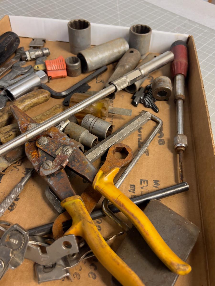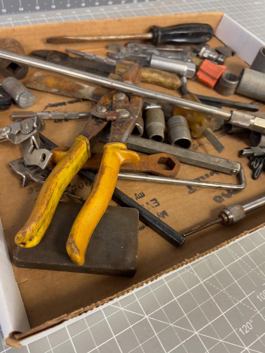 Tray full of Tools: Sockets, Wrenches, Tin Snips