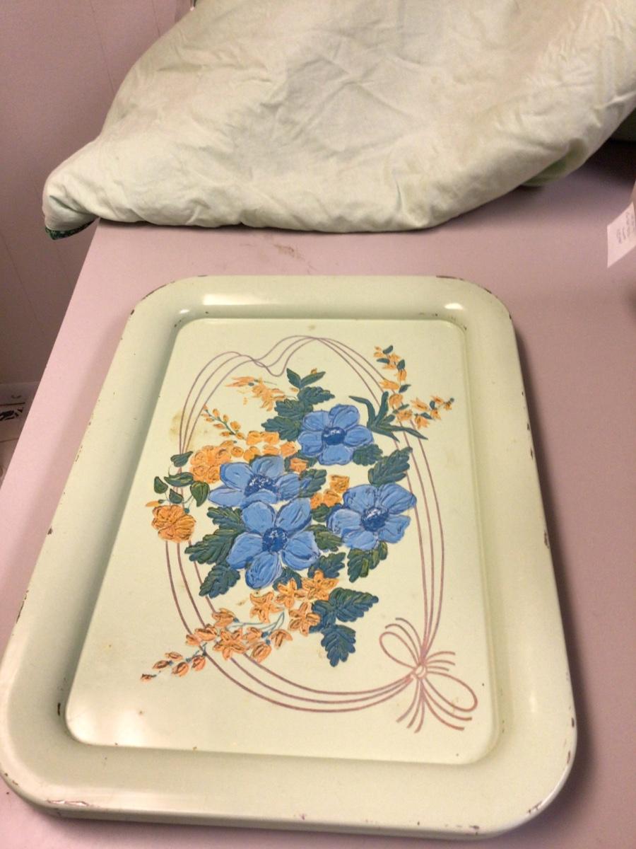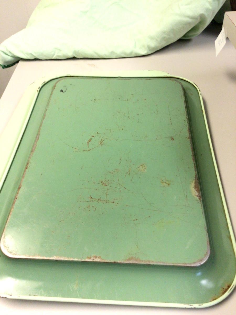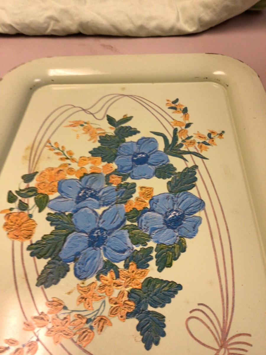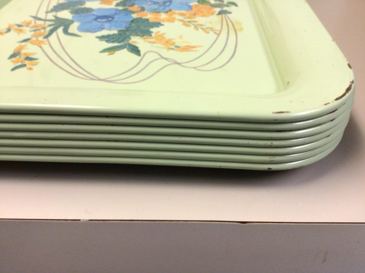Great mint green trays with blue and yellow flowers. Lot of 7 matching trays.