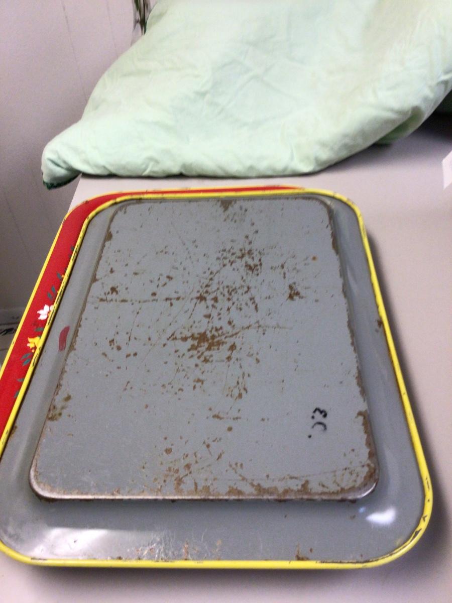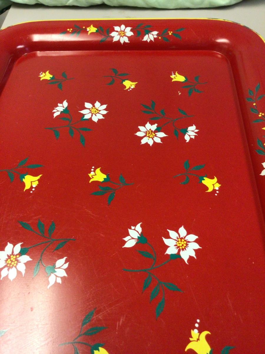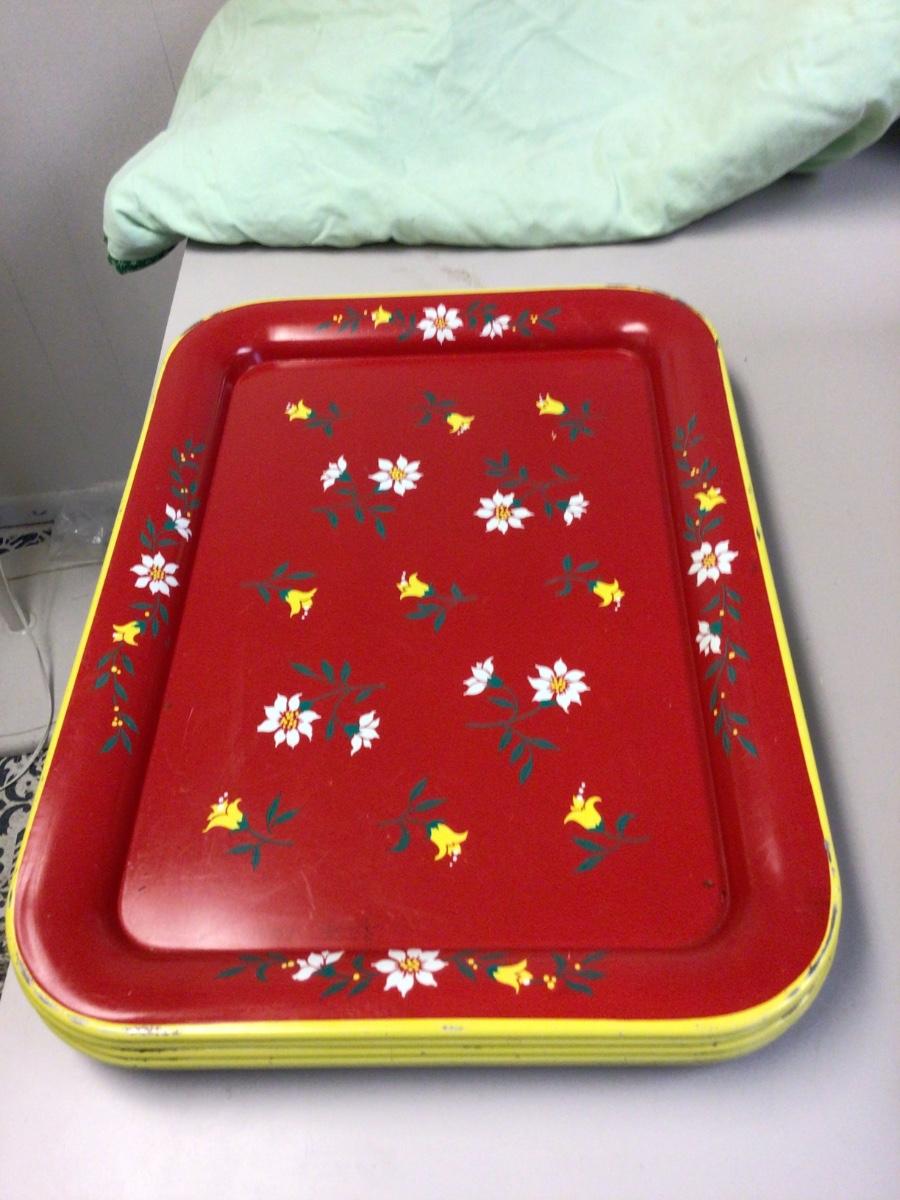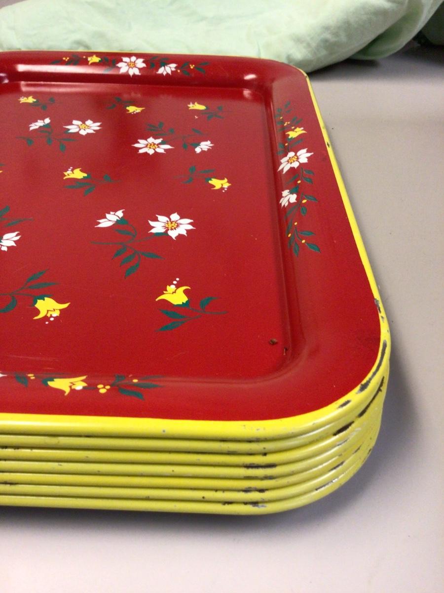 Red and yellow with yellow and white flowers. Set of 7 matching trays.