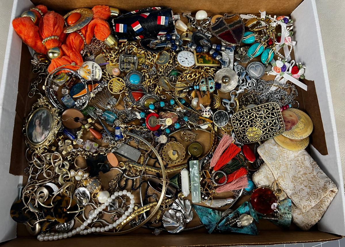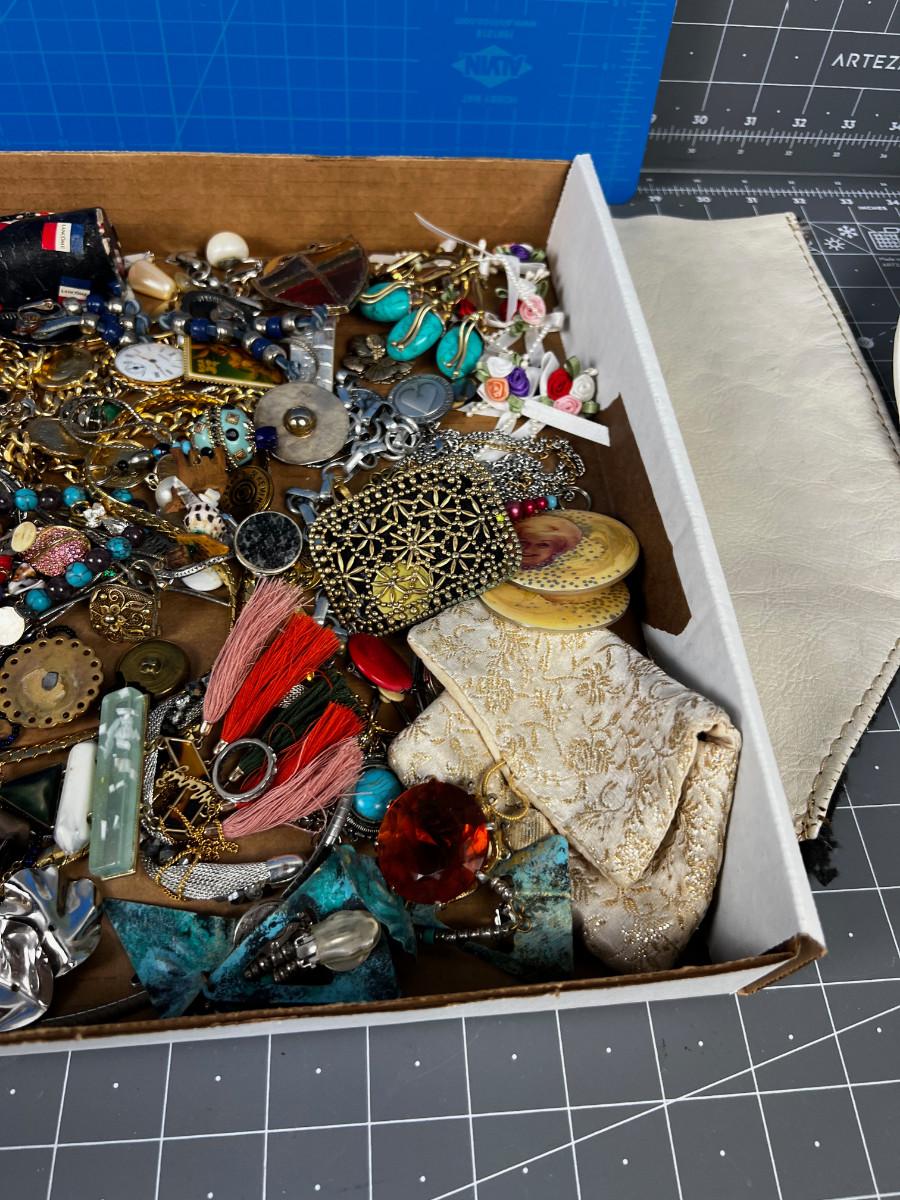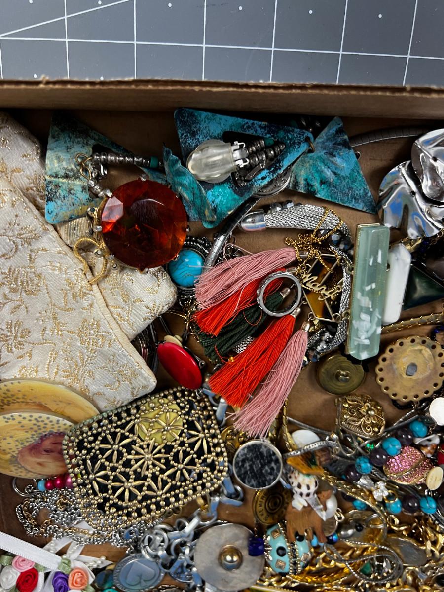 Tray lot of Vintage Jewelry Parts and Pieces to UPCYCLE!