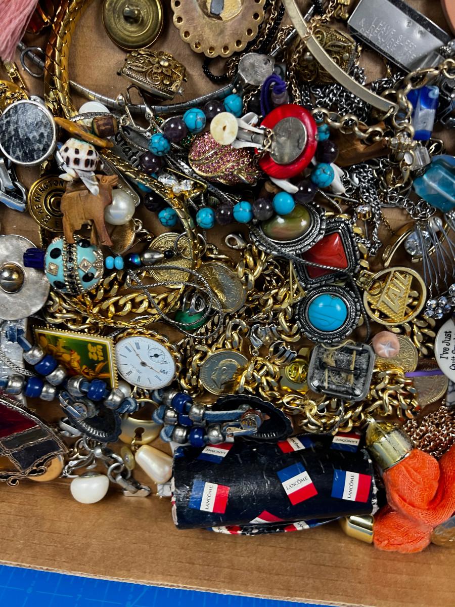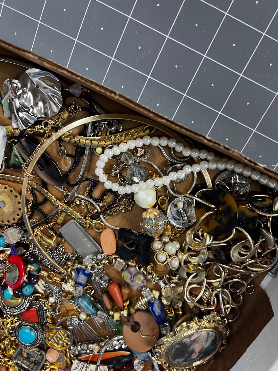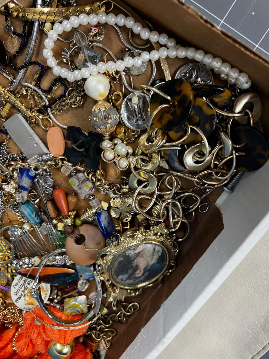 Tray lot of Vintage Jewelry Parts and Pieces to UPCYCLE!