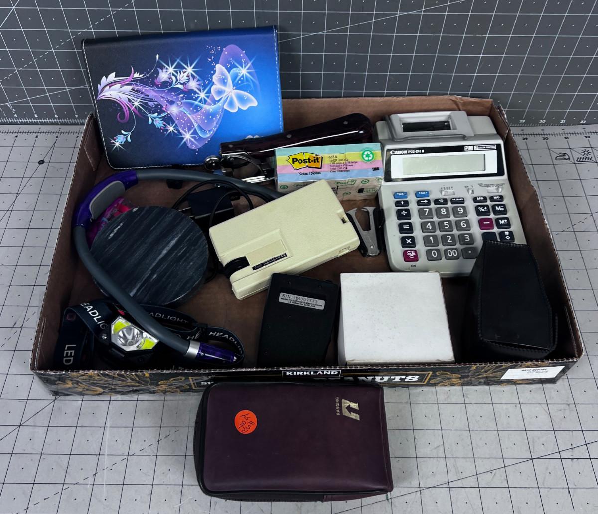 Tray Mixed Office Camera Stuff, Calculator Etc.
