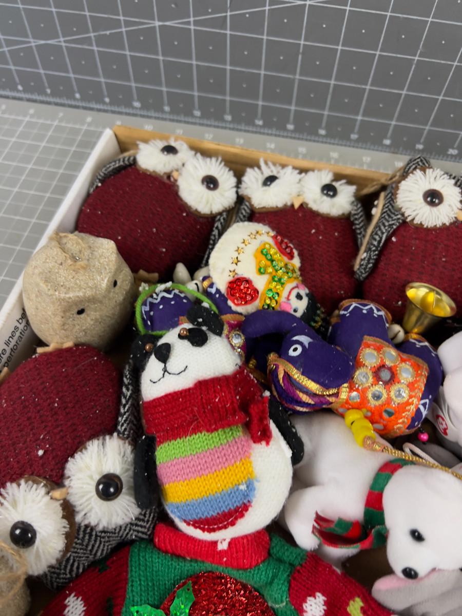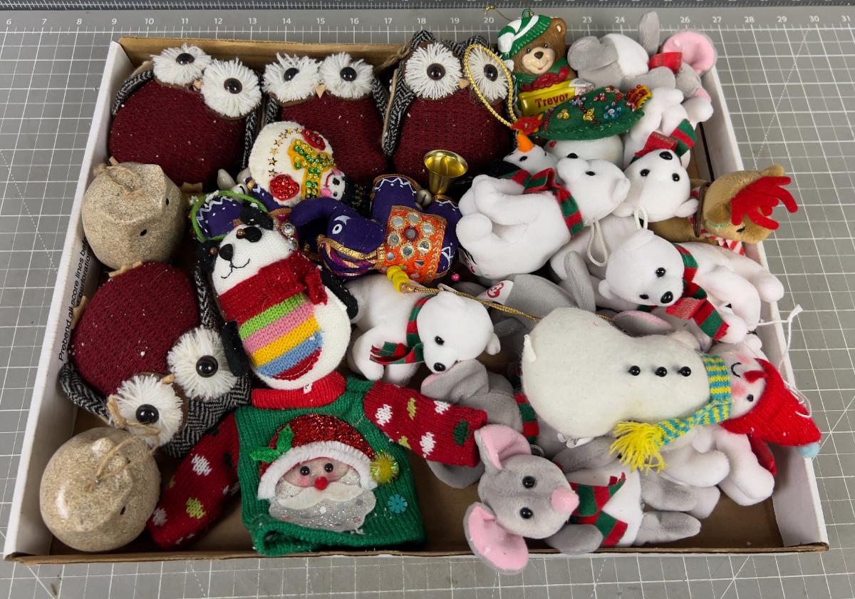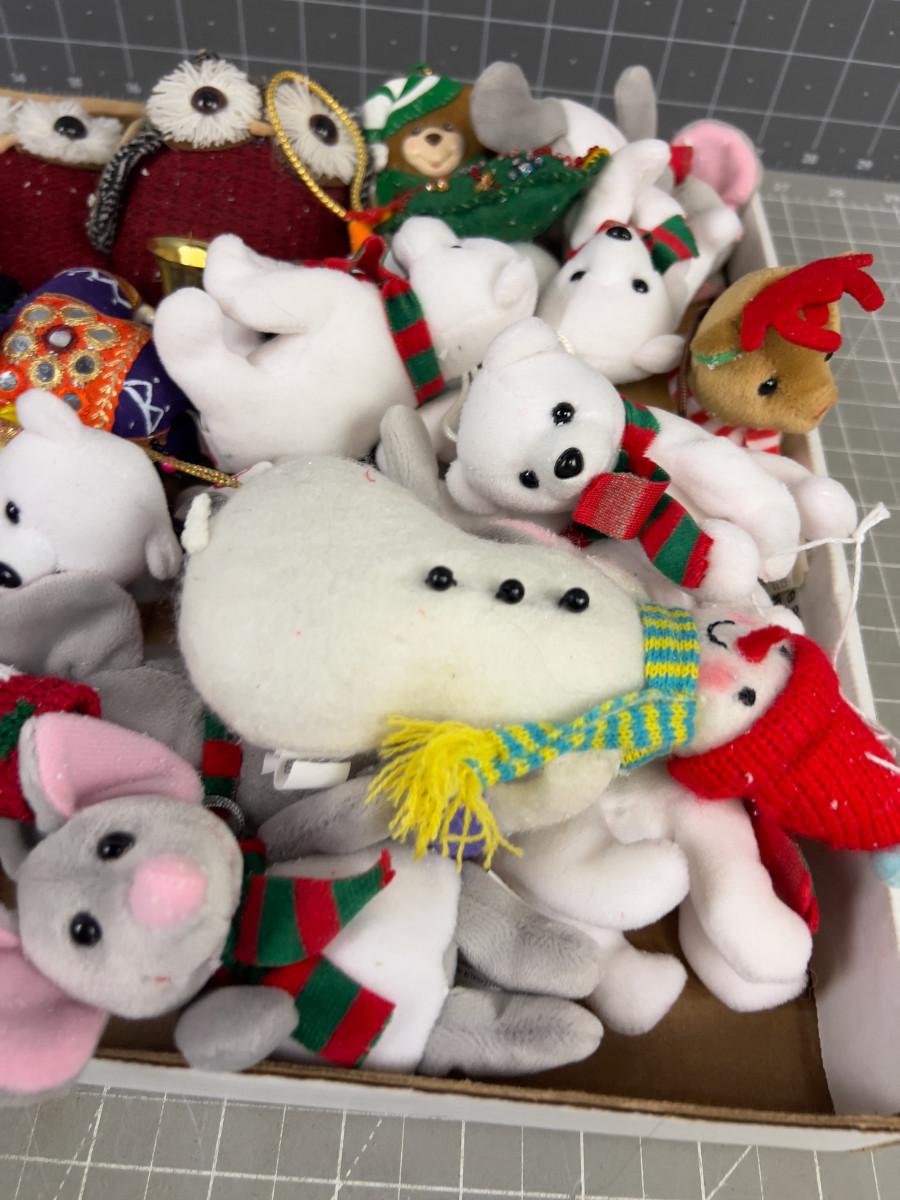 Tray of Bears, Animal Ornaments, Stuffies for the Tree