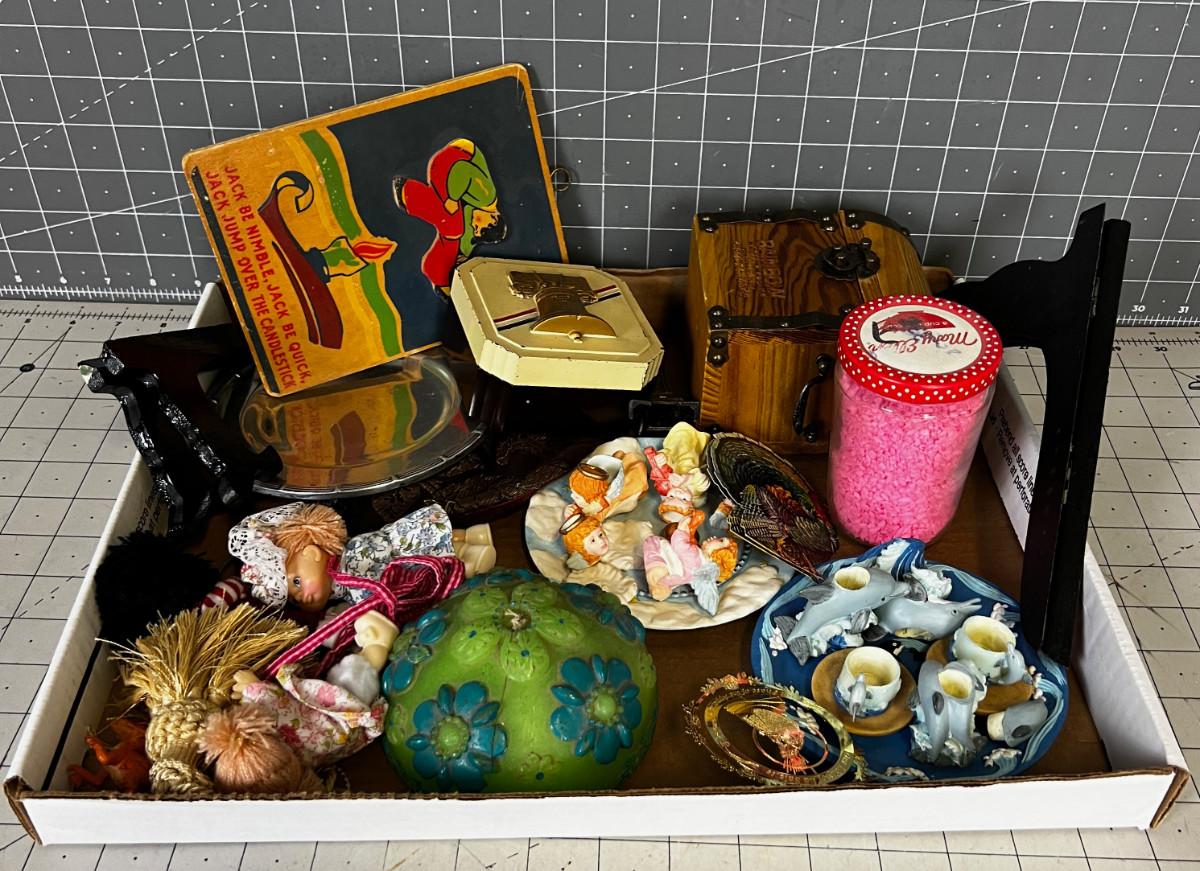 Tray of Boxes, Plaque Of Jack Be Nibble, Xmas Ornaments