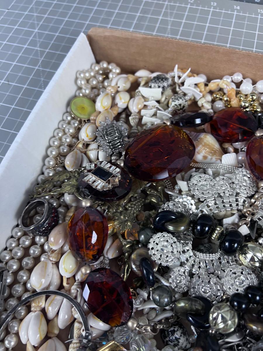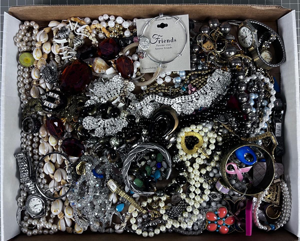 Tray of Costume Jewelry; Lots of Beads and Rhinestones