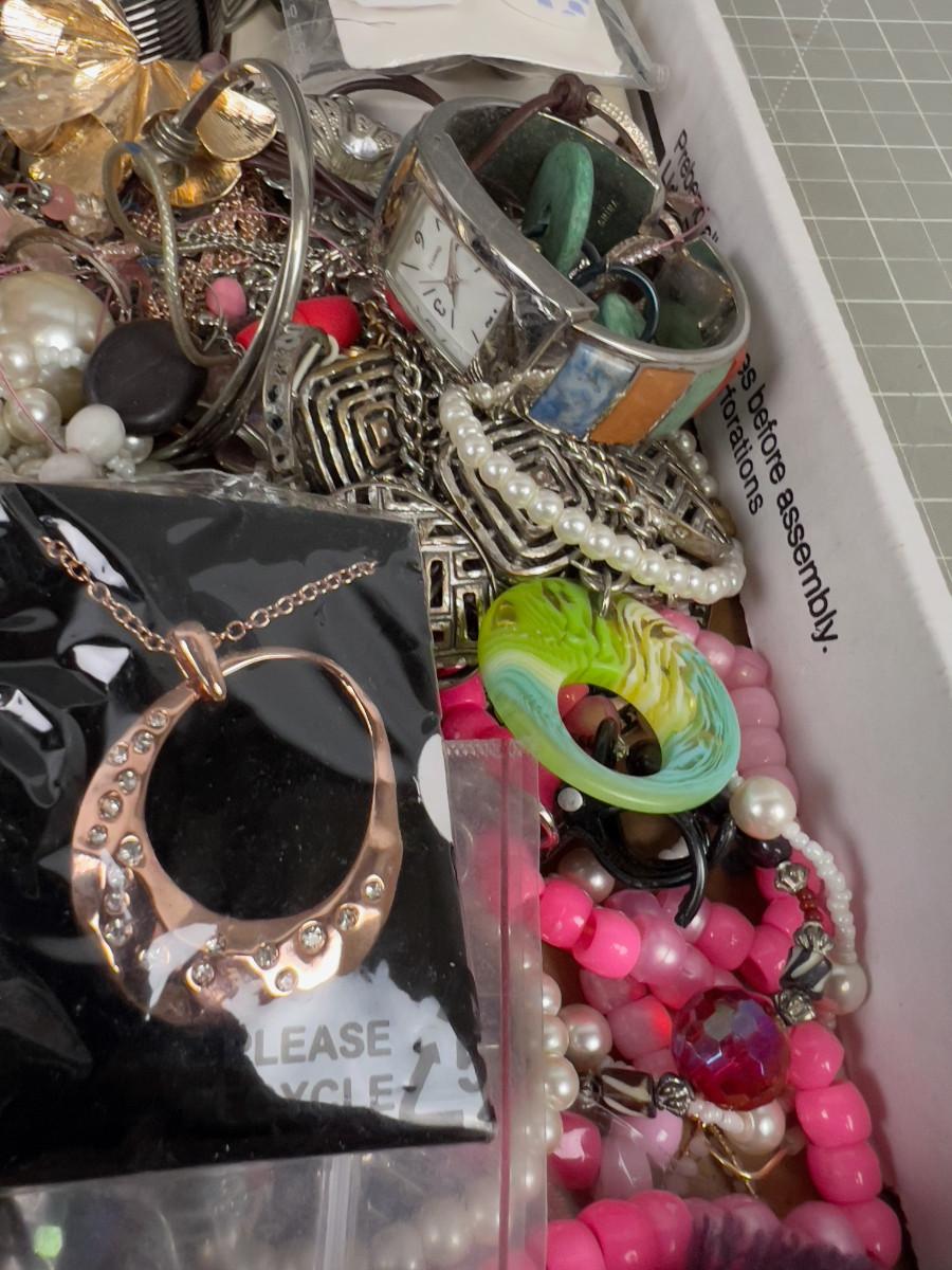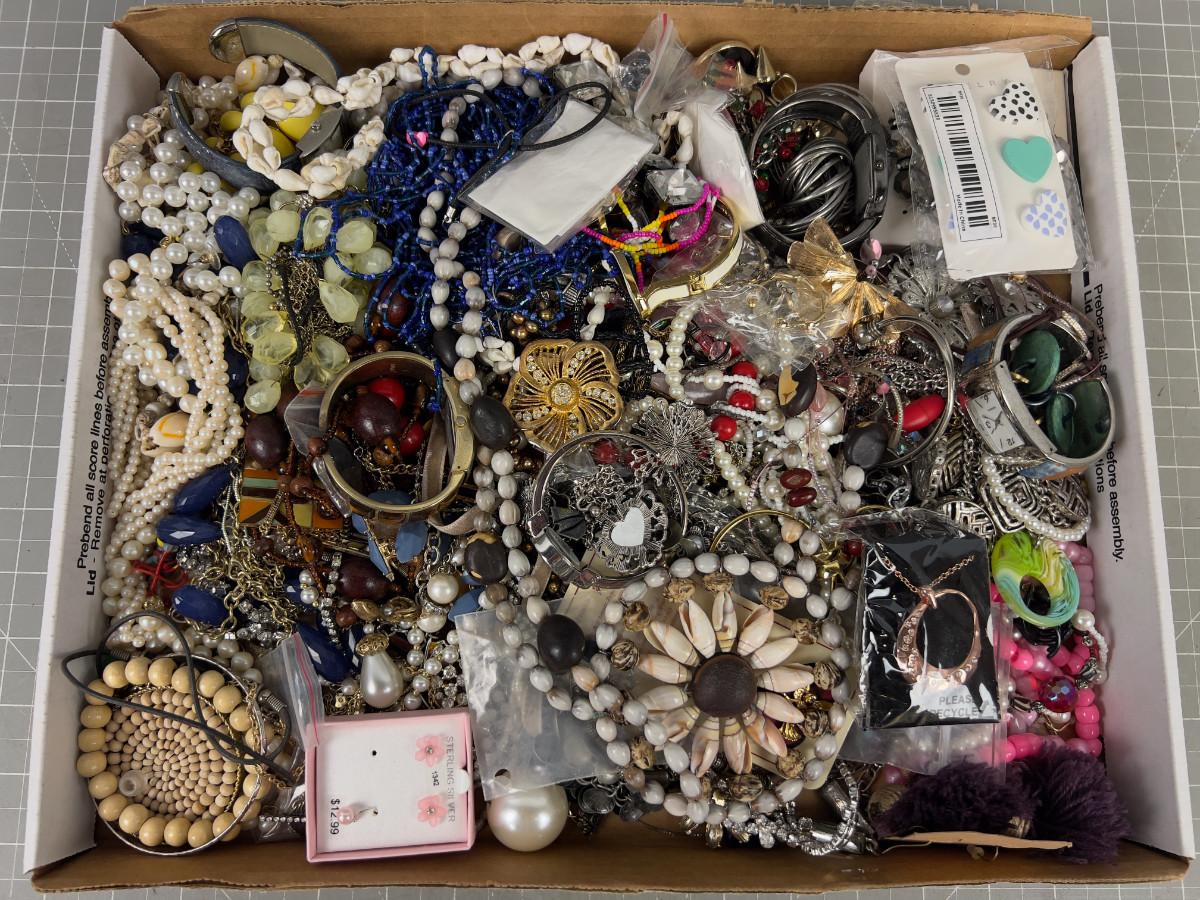Tray of Costume Jewelry- Lots of Necklaces and Watches