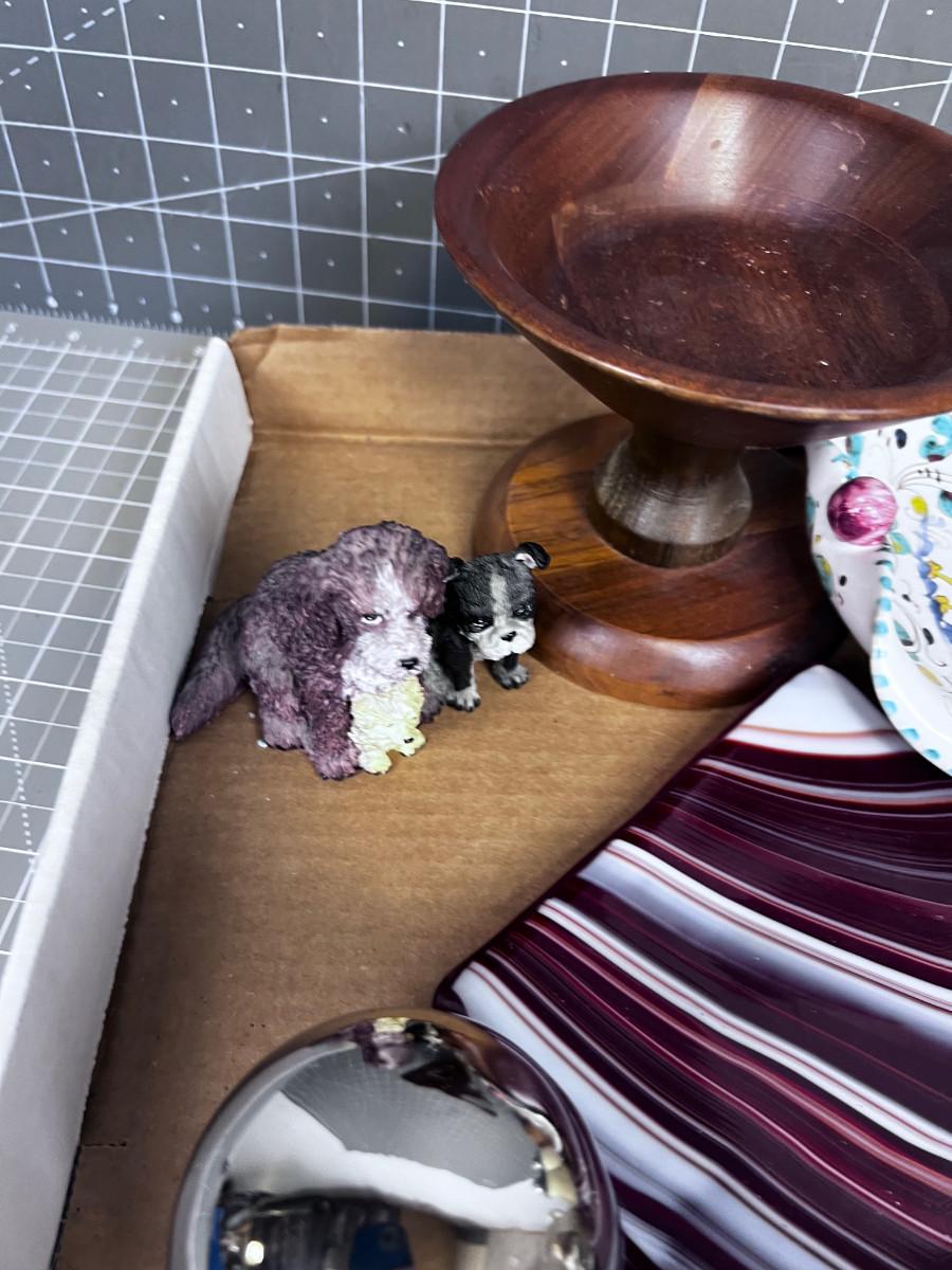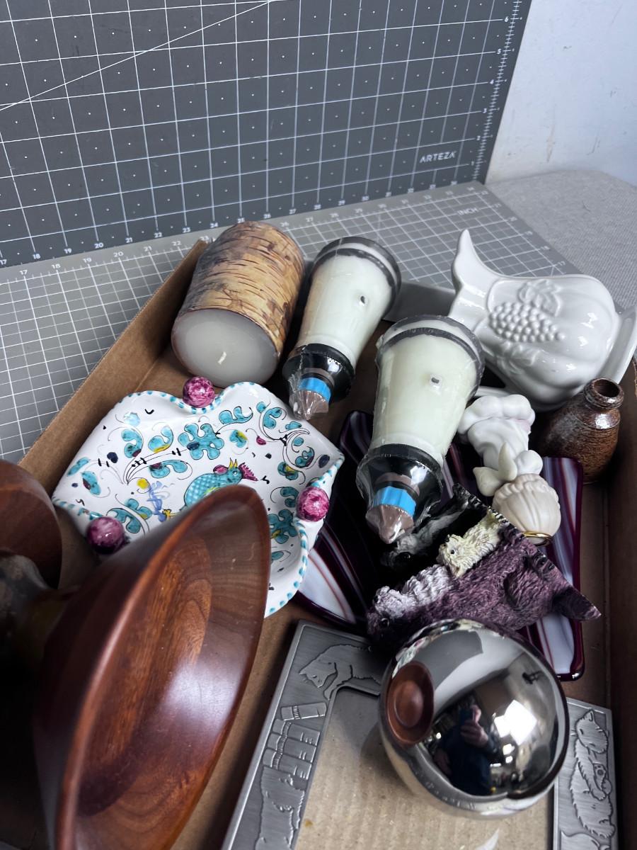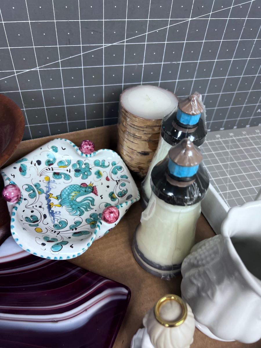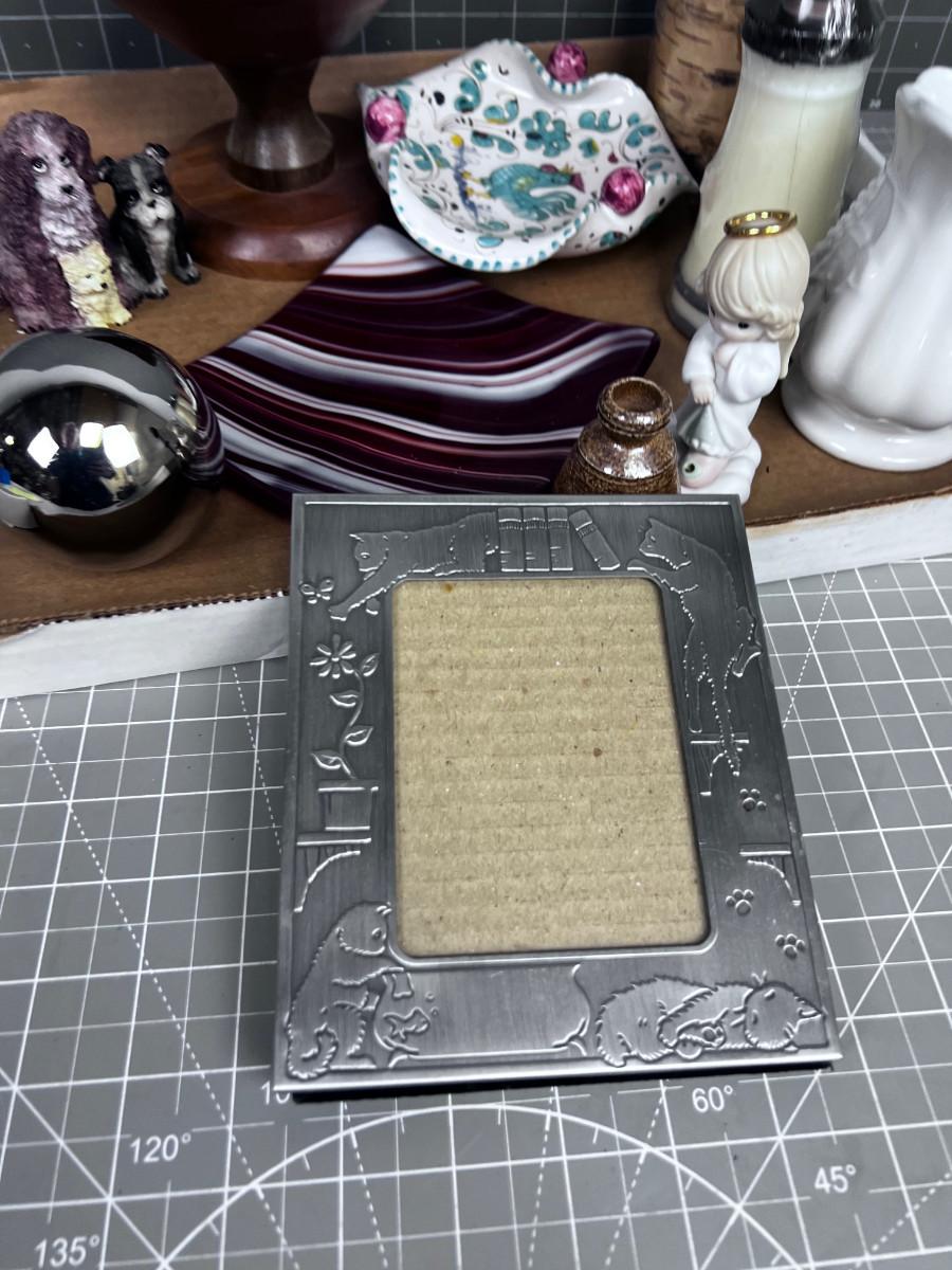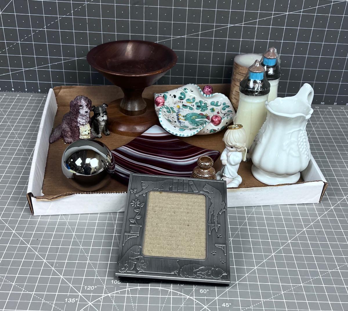 Tray of Decorative Items; Miniatures, Frames, sm. Pitcher
