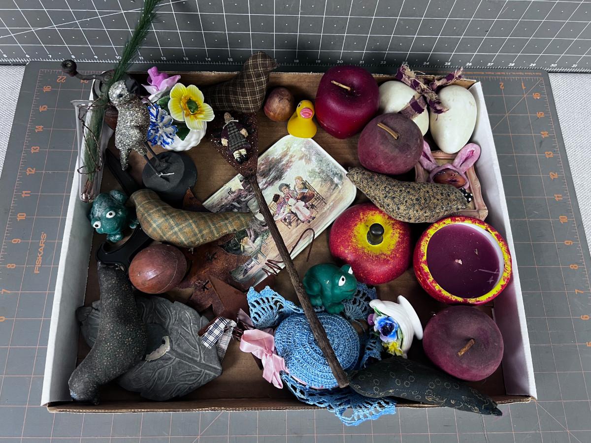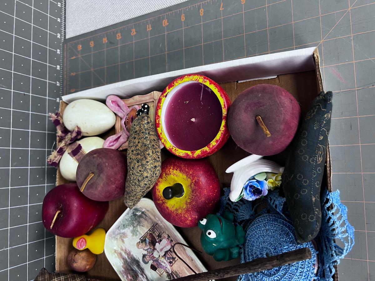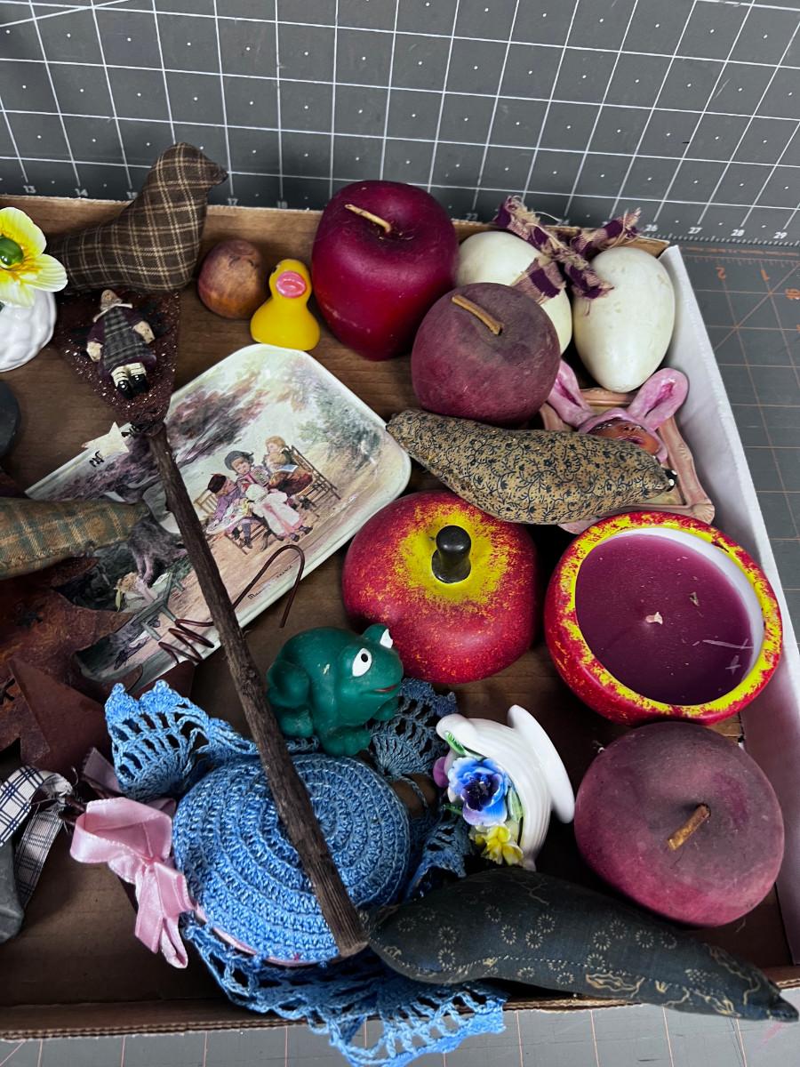 TRAY of Do Da's: Candle, Flower, Apple, Frog