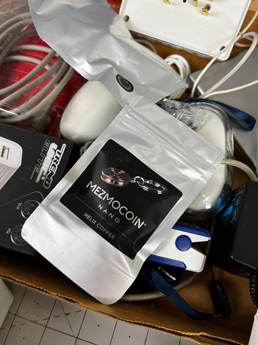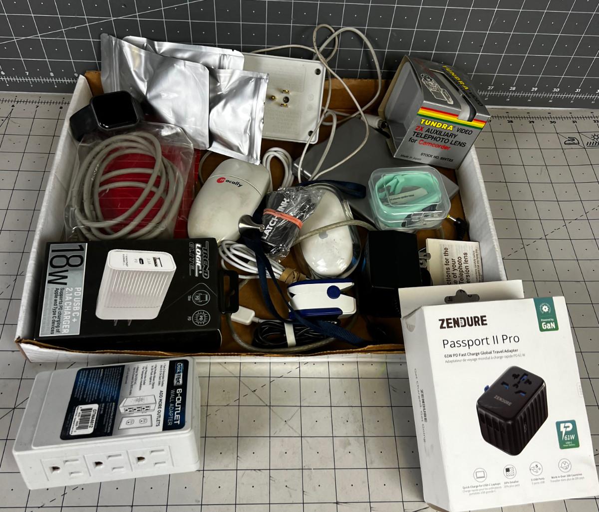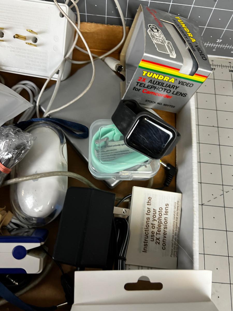 Tray of Electronics; Oximeter, Cables Computer Mouse Watch.
