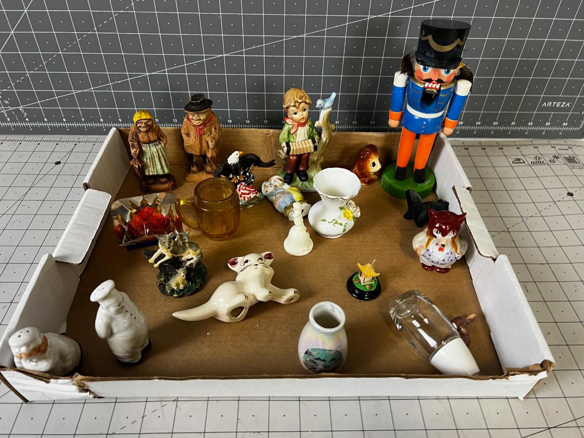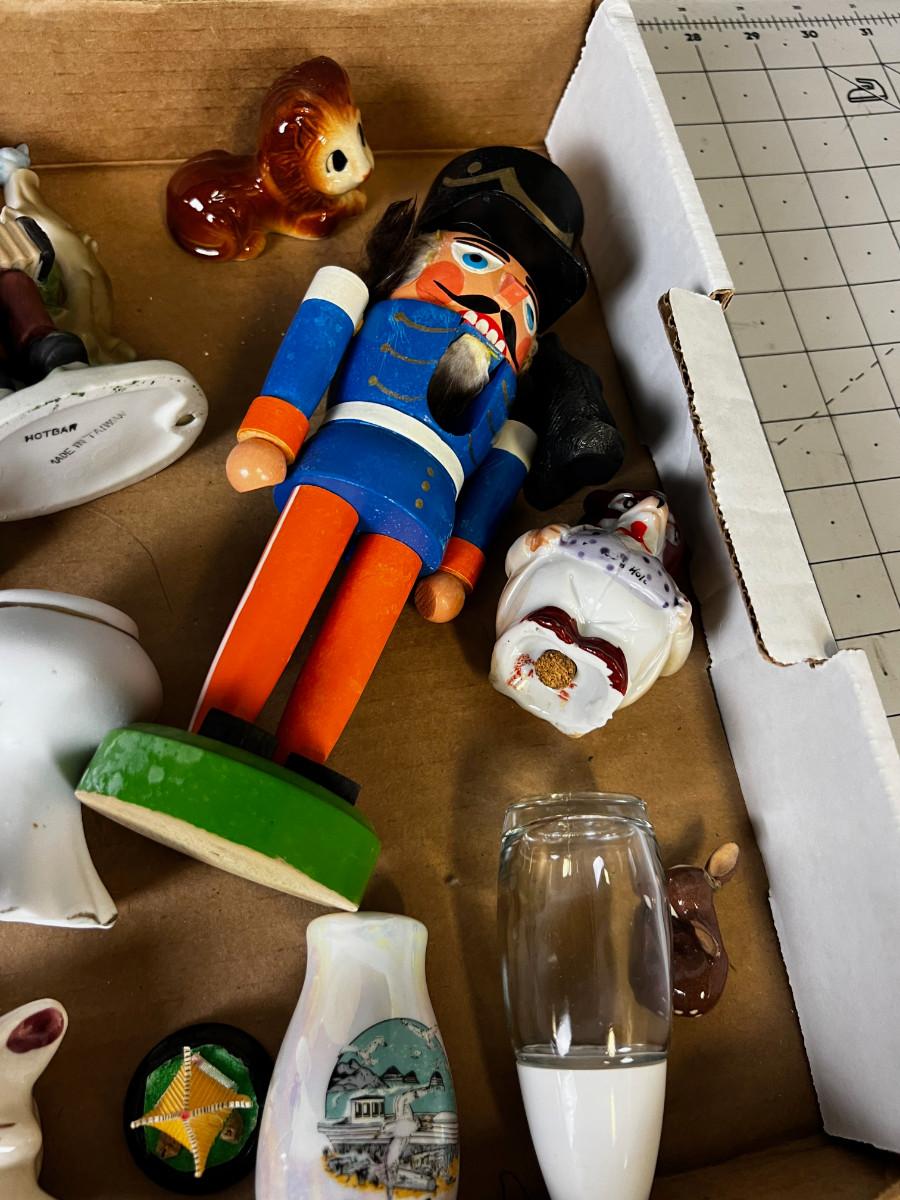 Tray of Miniature Figurines: Toothpick hold, Nutcracker etc.