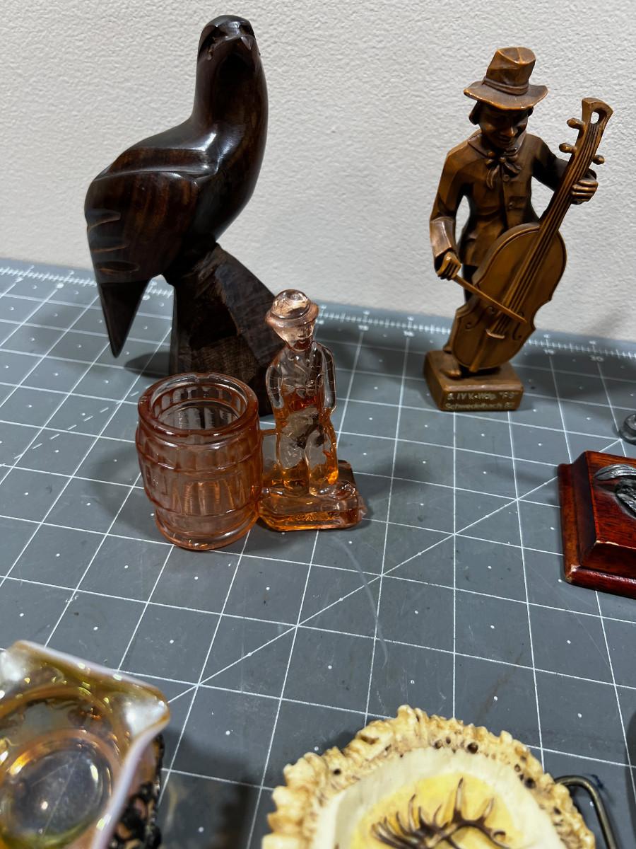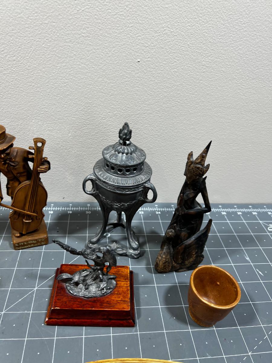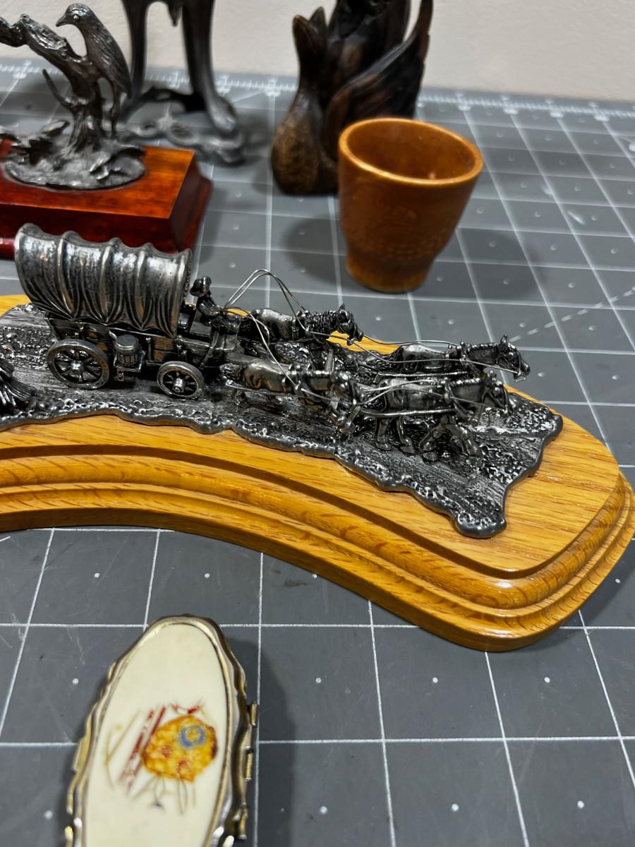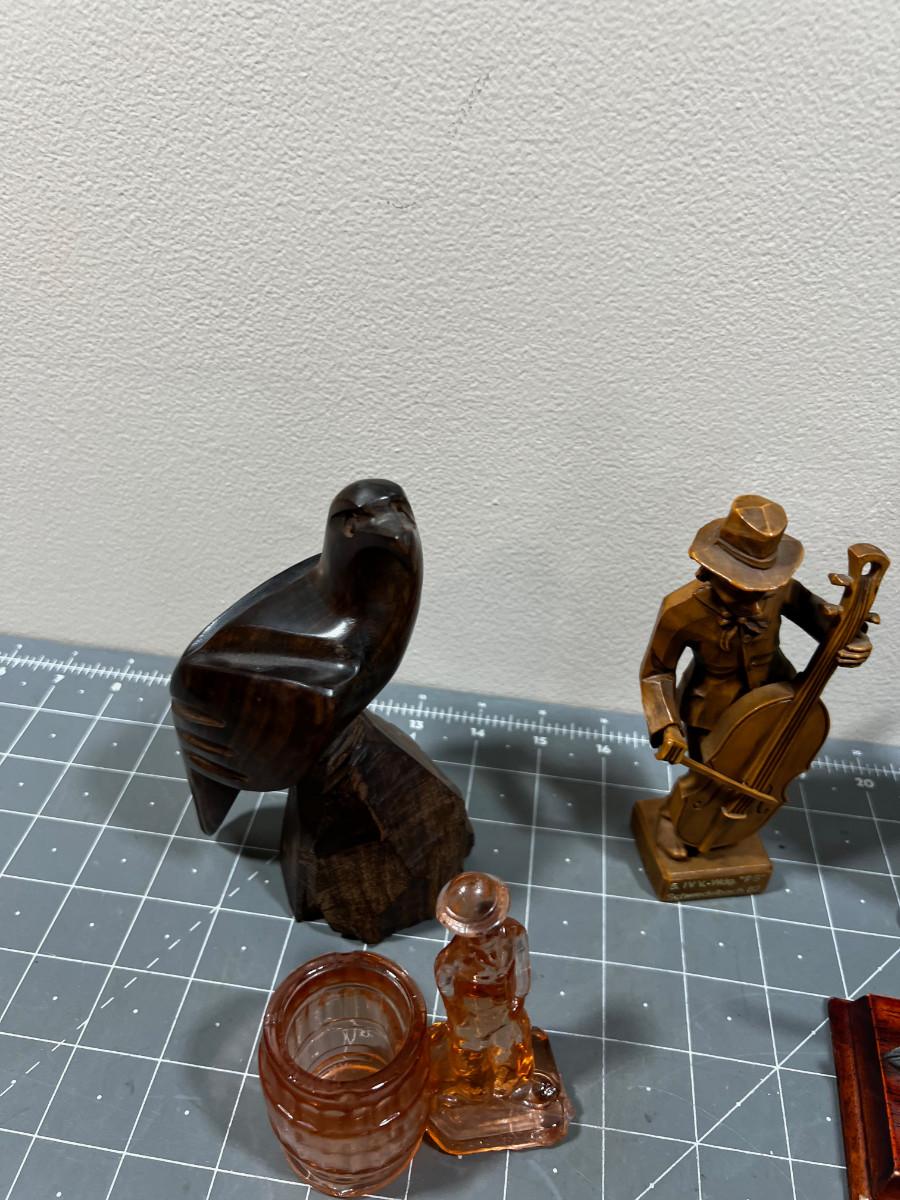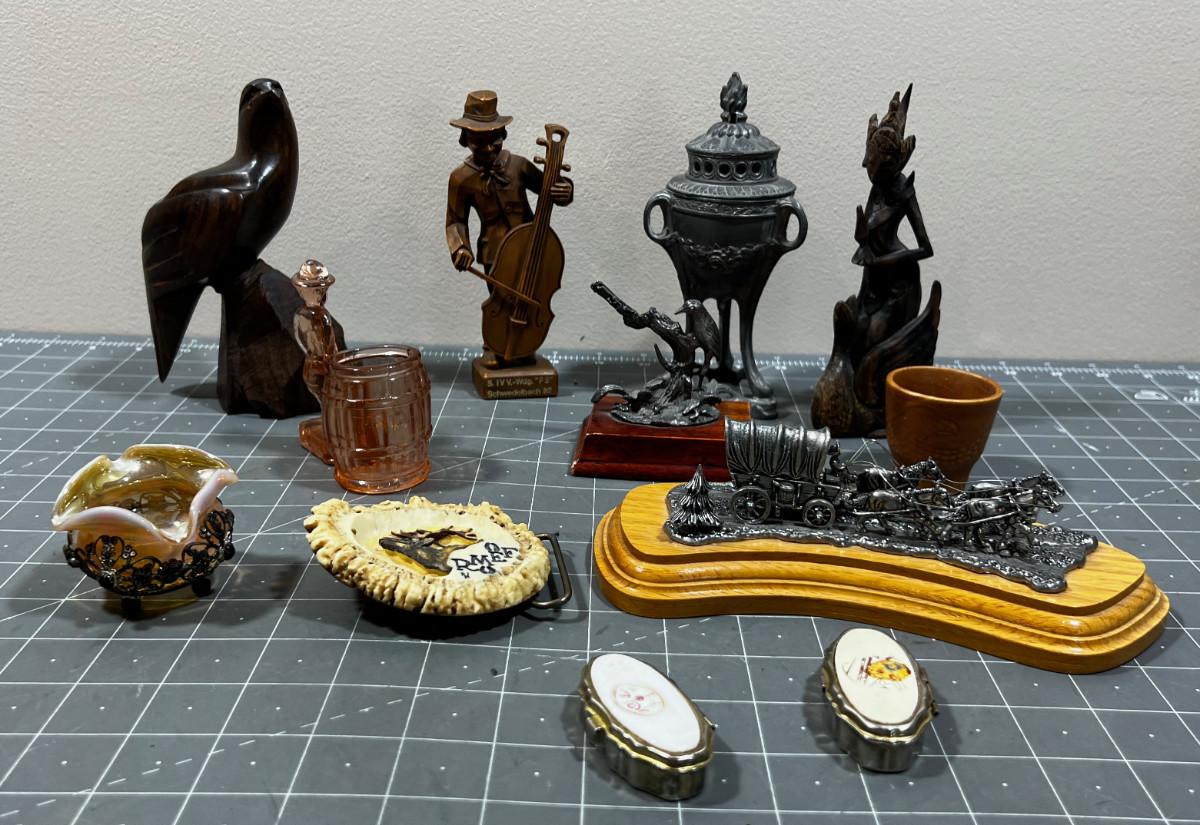 Carved Wood, Wagon, Pink Tooth pick Holder, Incense Burner. USED and still usable!