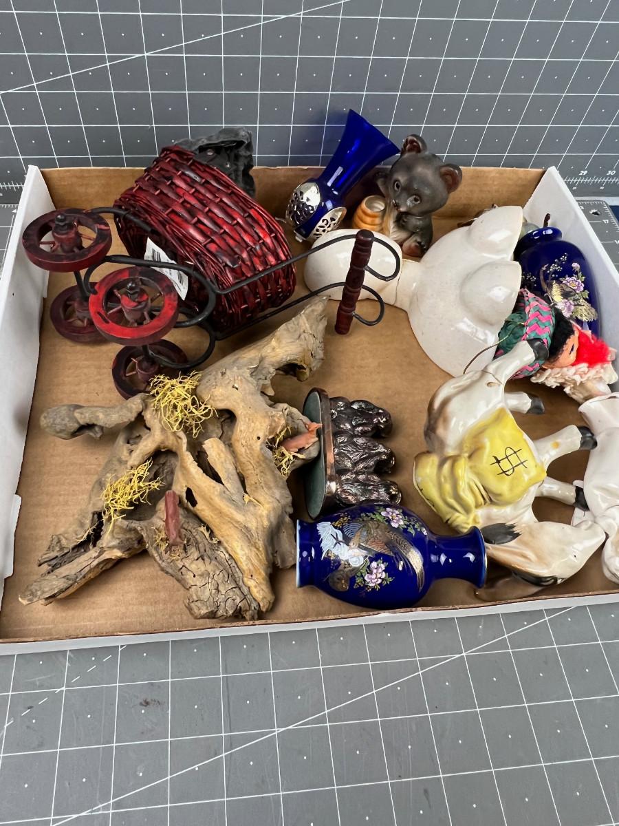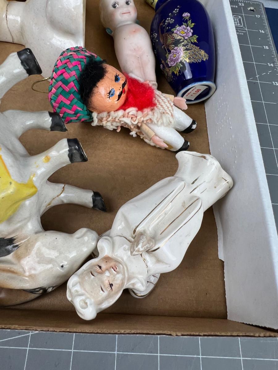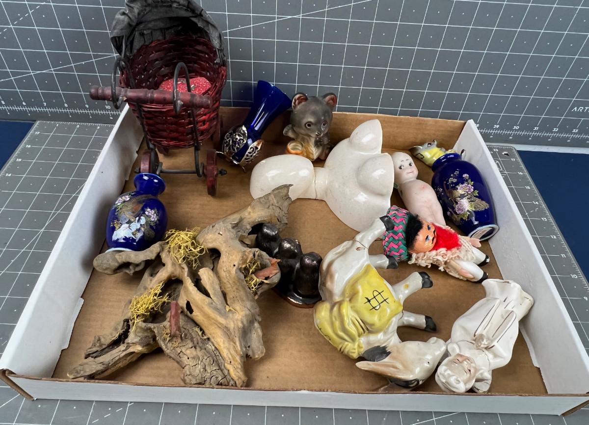 Tray of Miniatures; Vases, Monkeys and Stroller