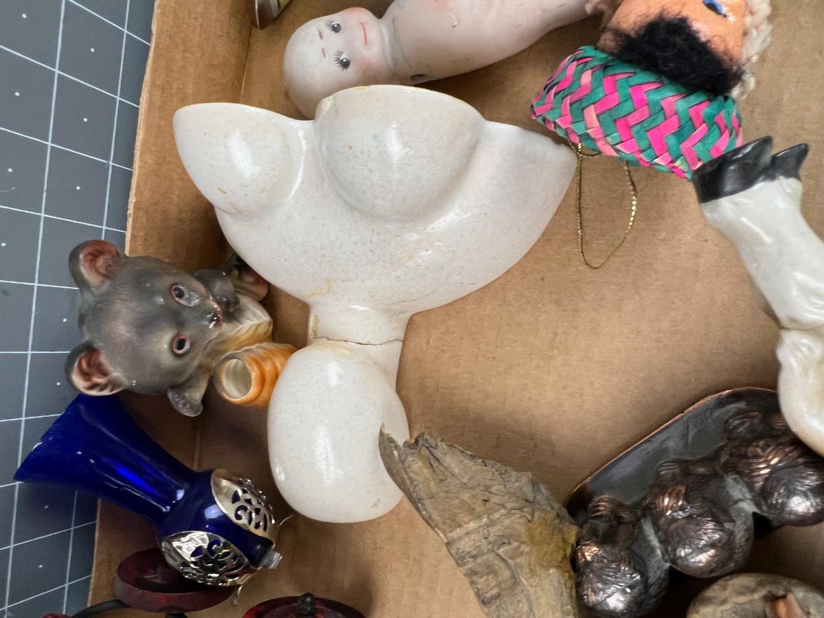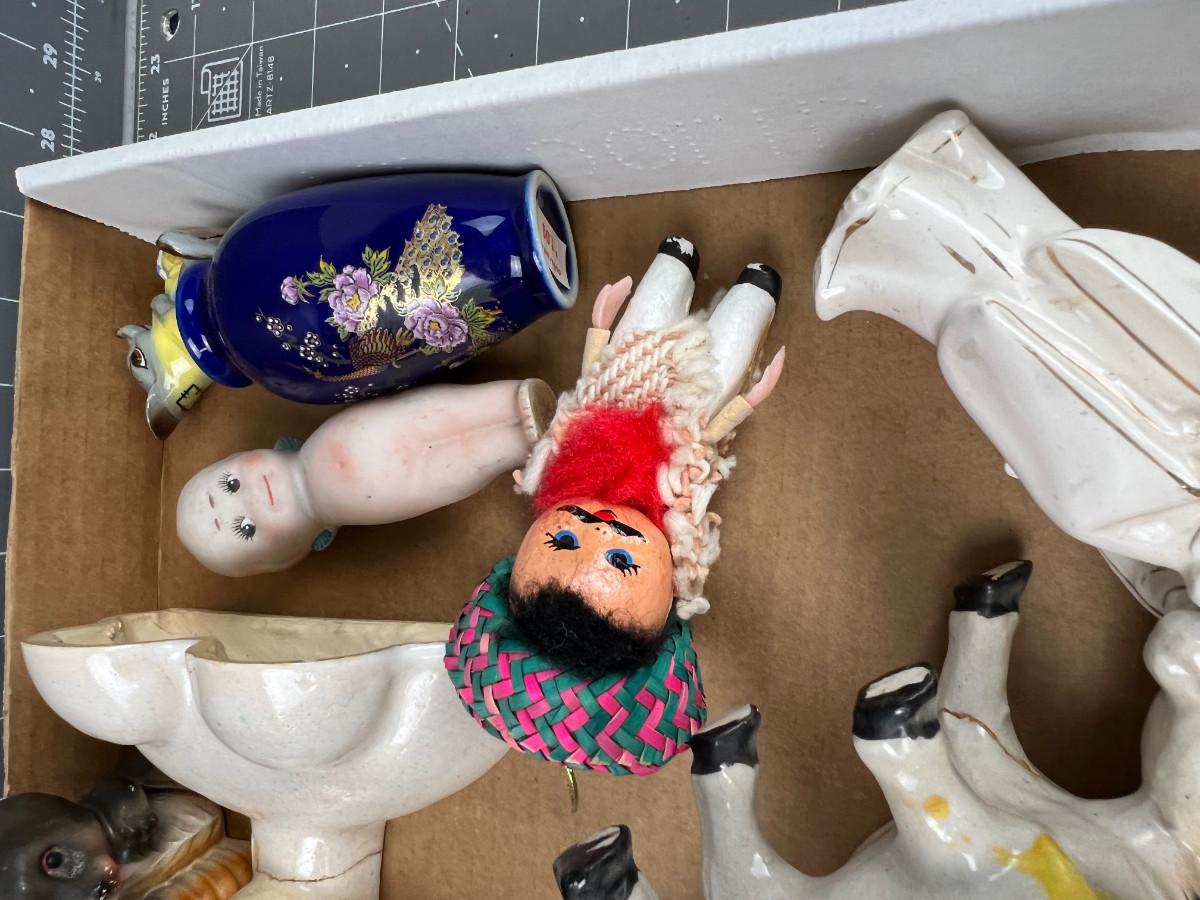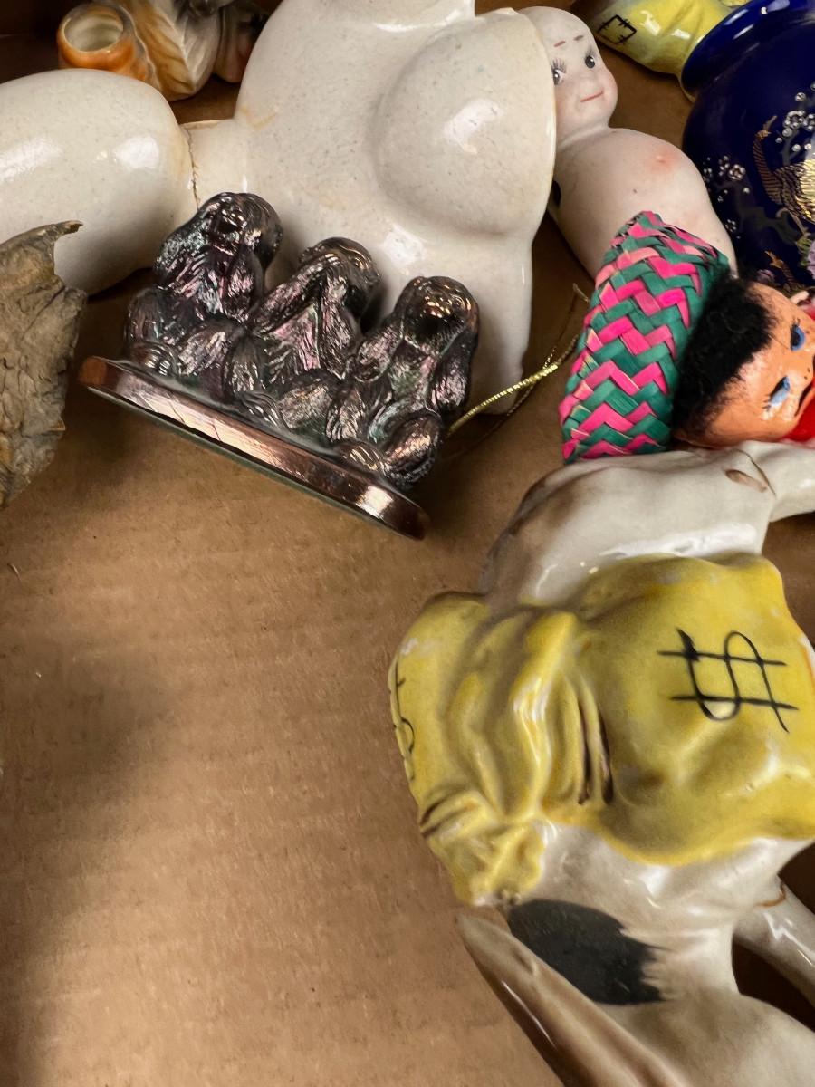 Tray of Miniatures; Vases, Monkeys and Stroller