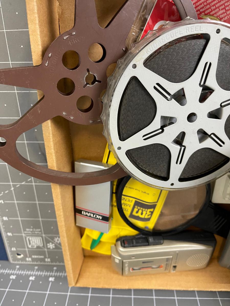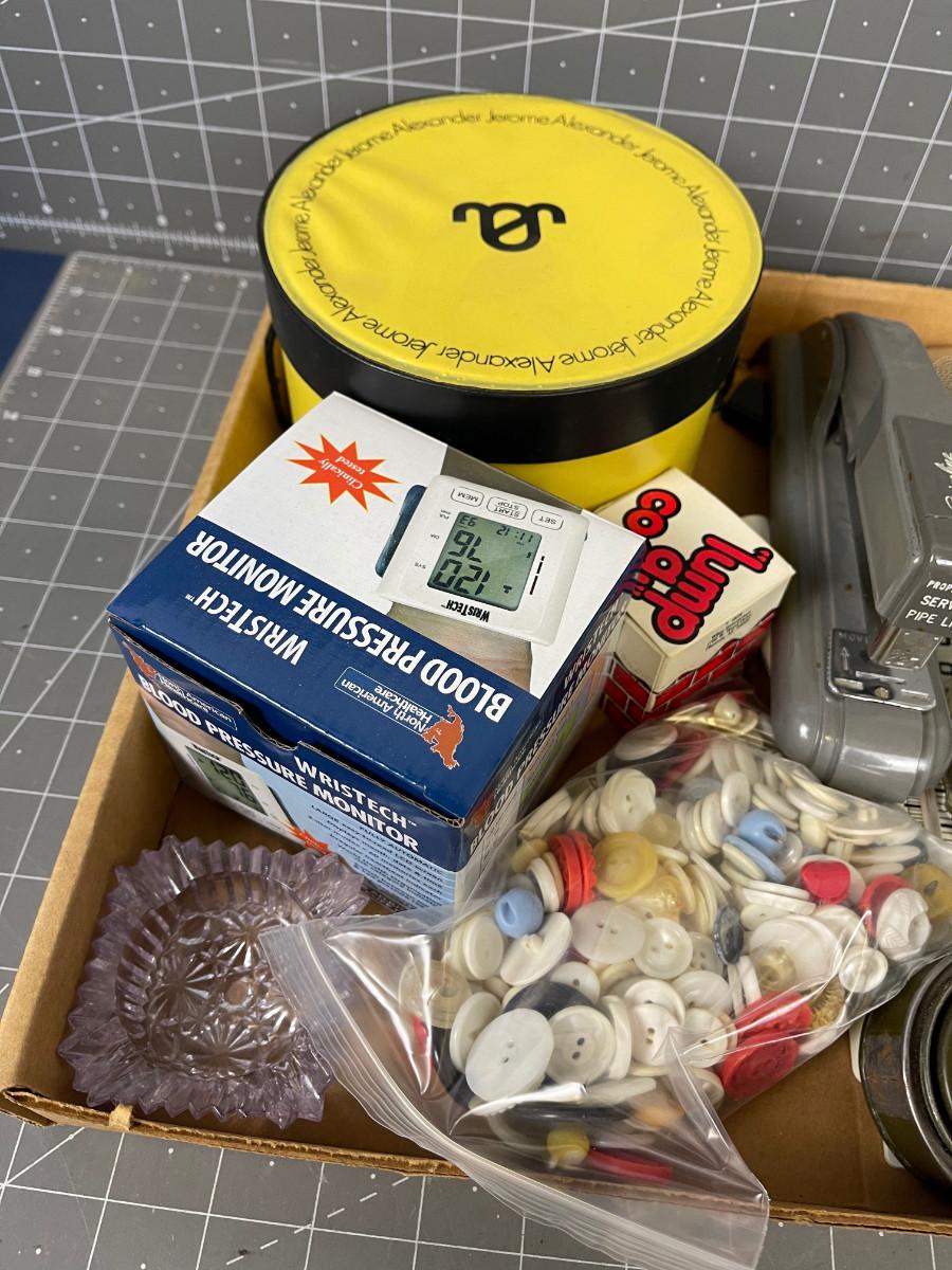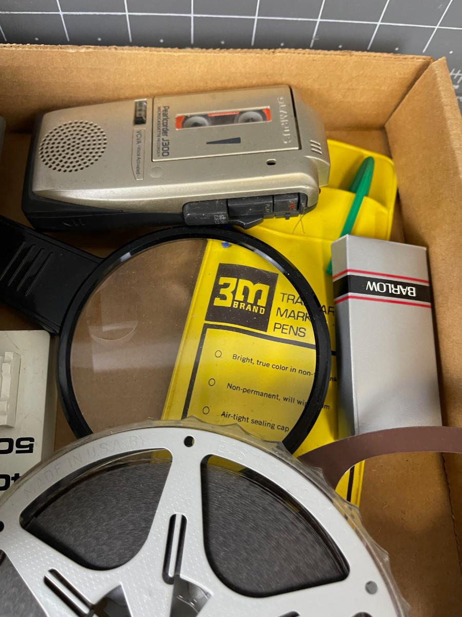 Tray of Misc.: Stapler, Tape Recorder, Buttons