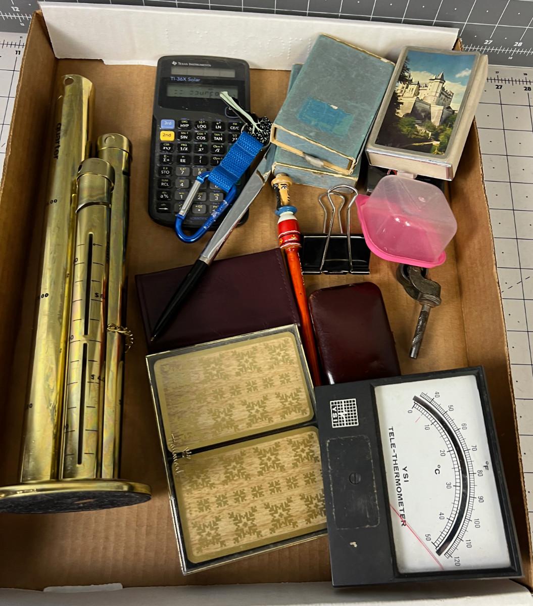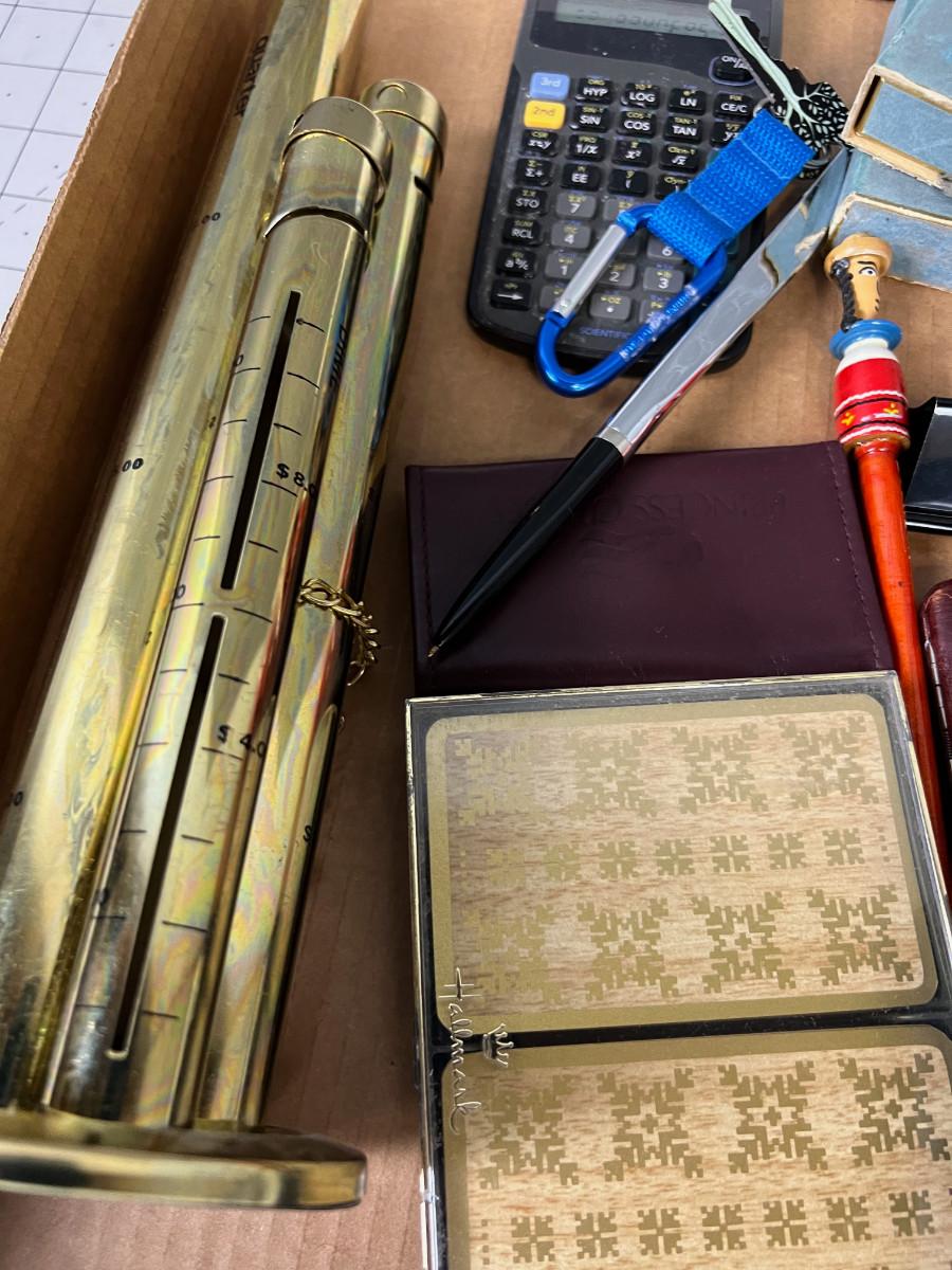 Tray of Office Drawer Clean Out: Pens, Coin Counter etc.