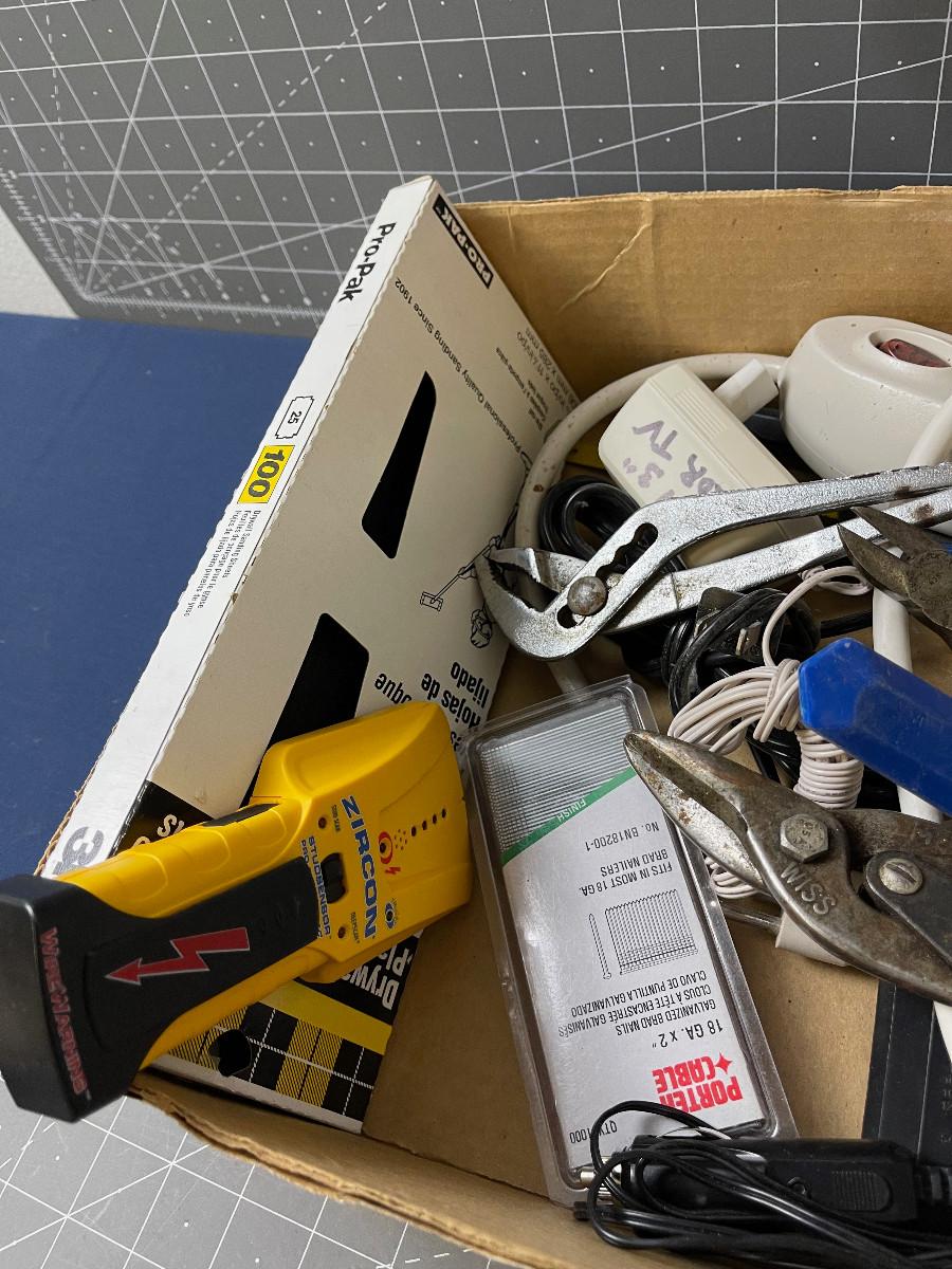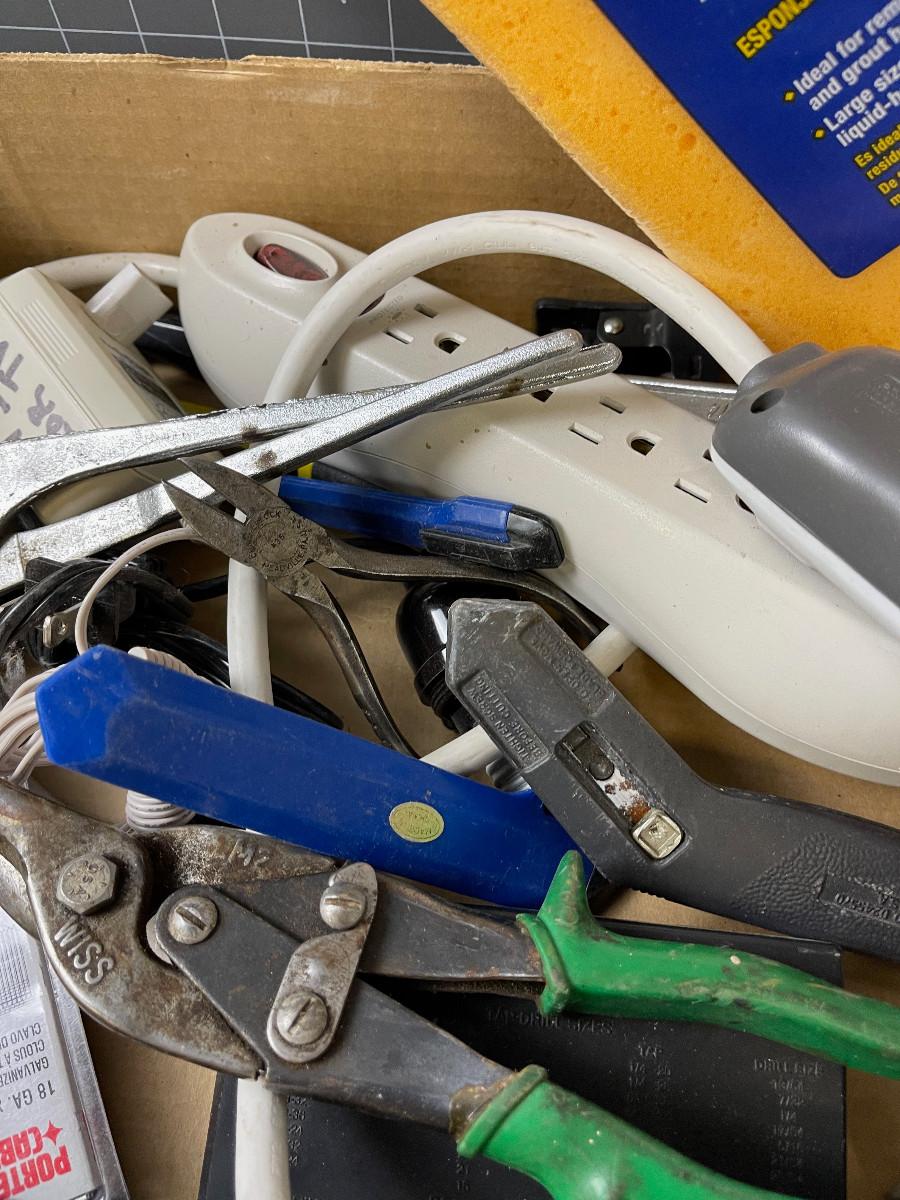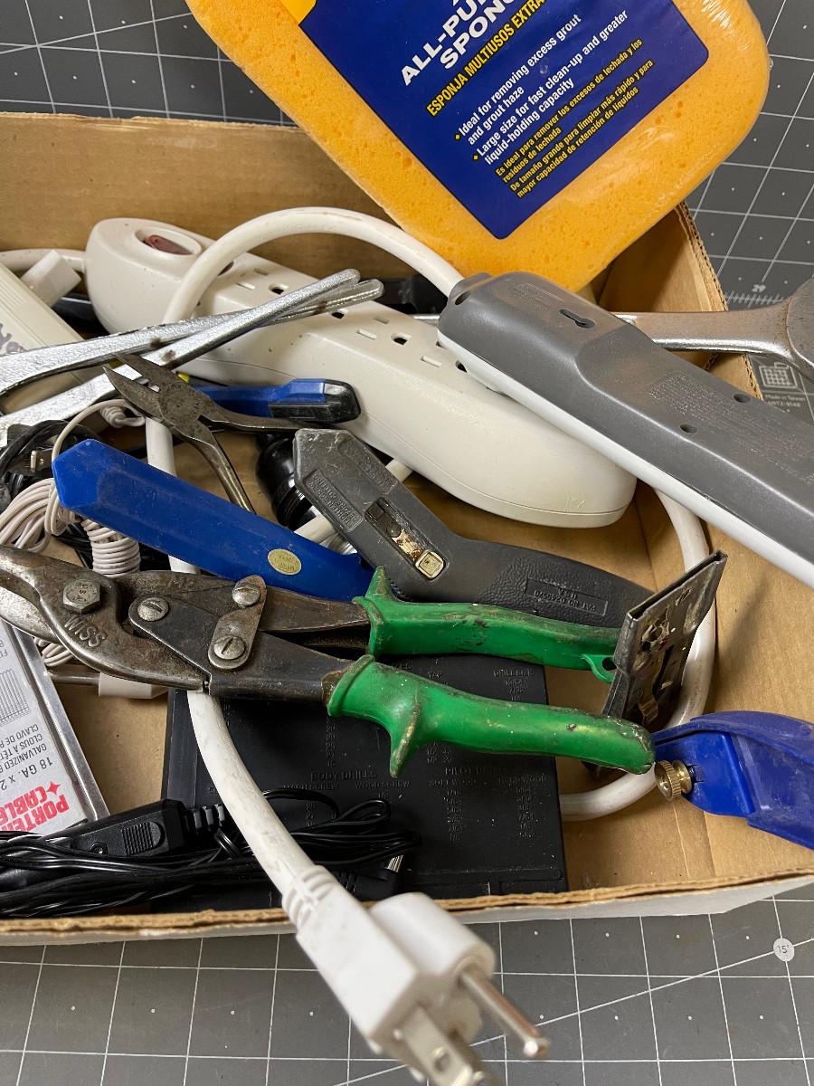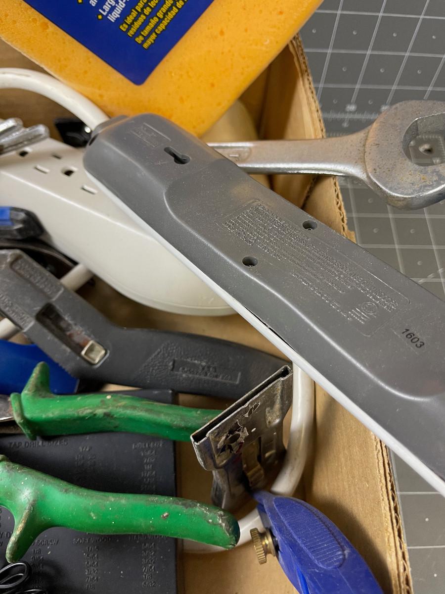 Tray of Plug Bars and Tools: Tin Snip, Wrench, etc.