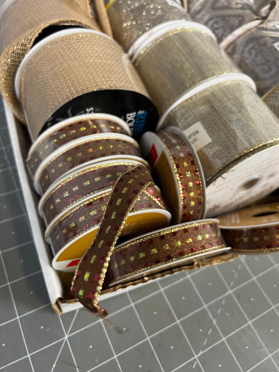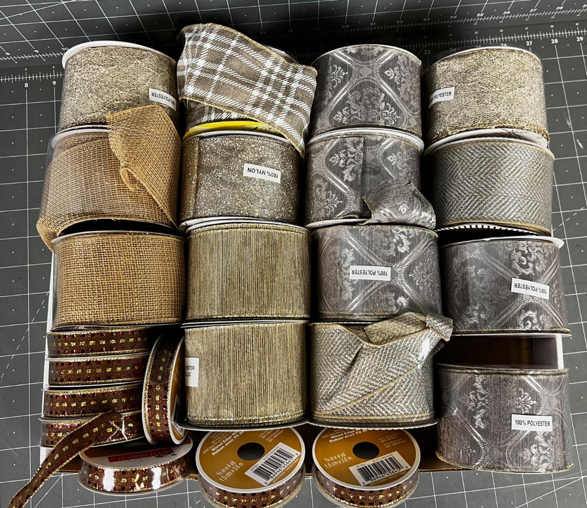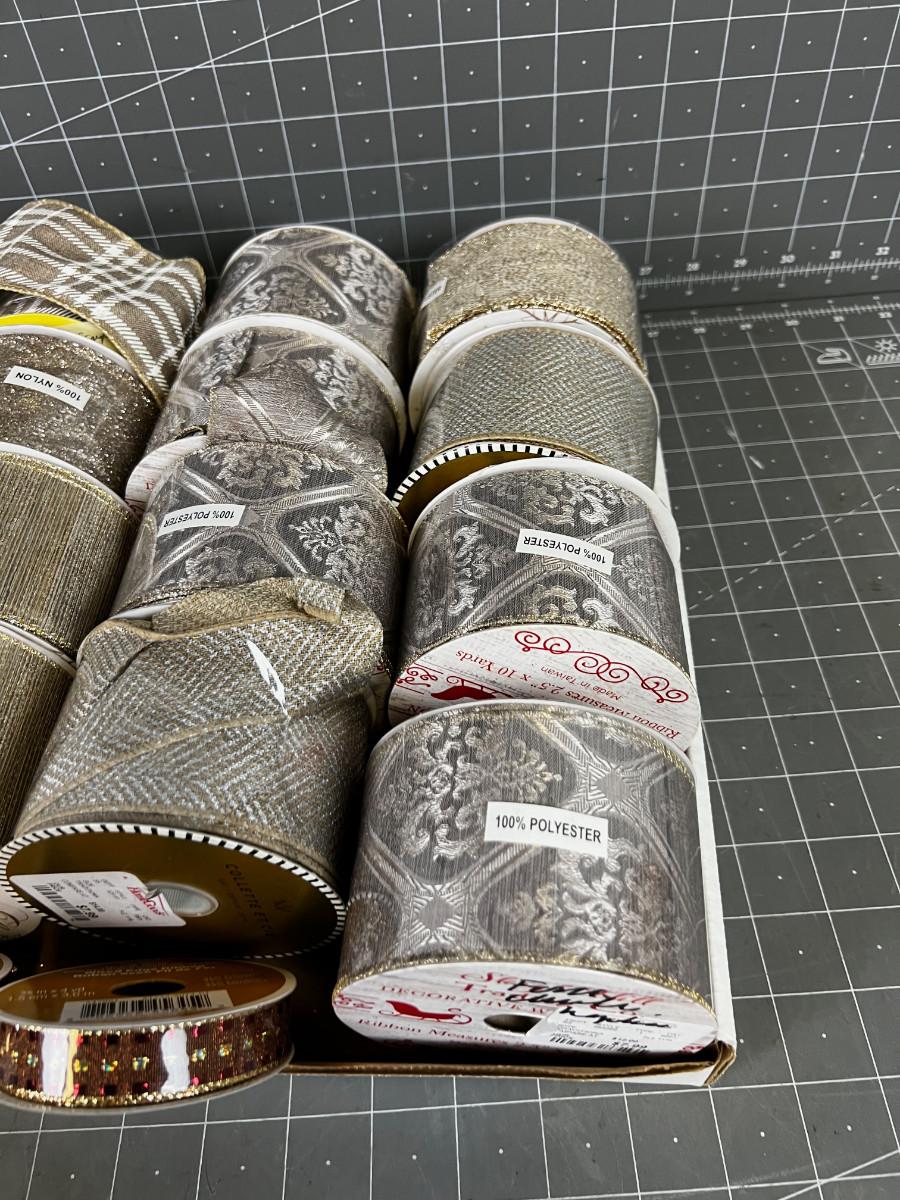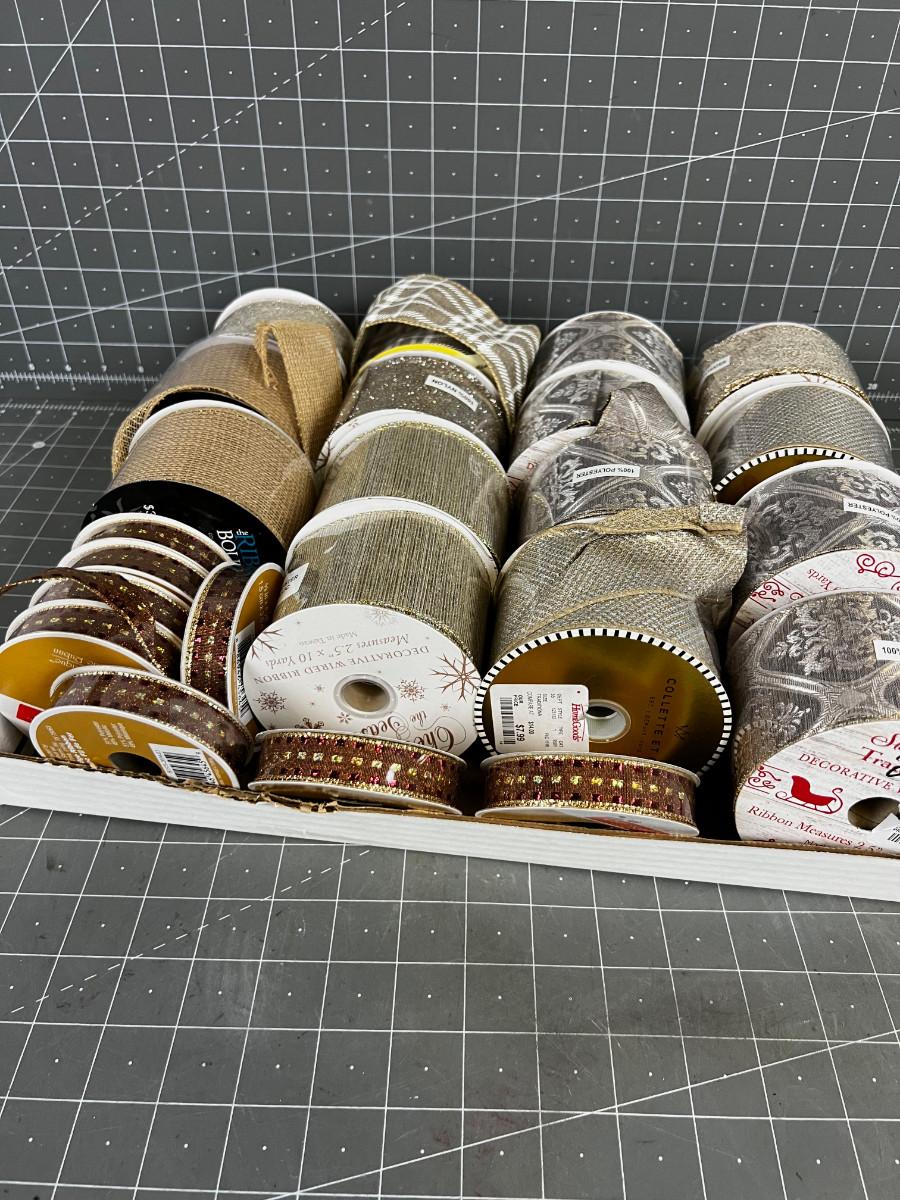 Tray of Ribbon for Wrap NEW: Silver, Gold & Red