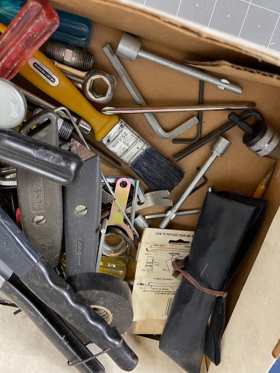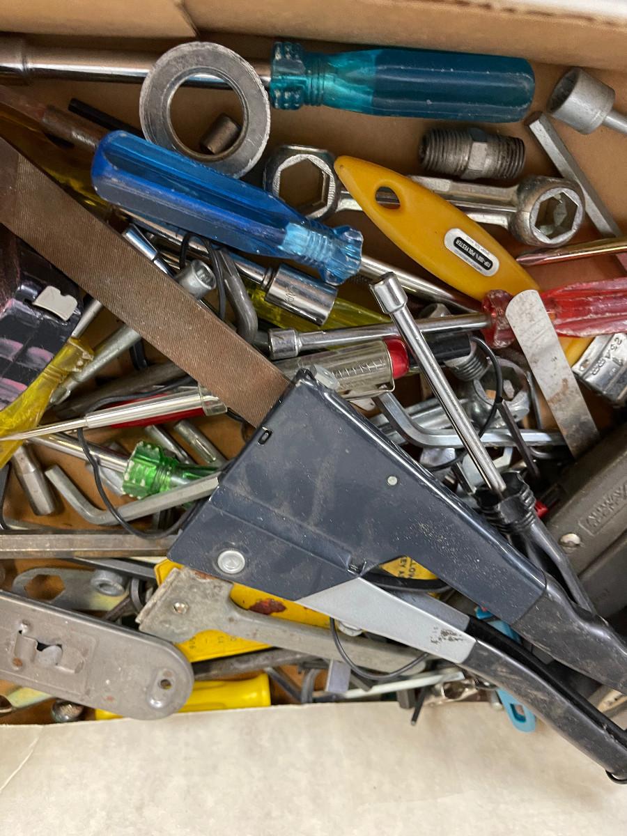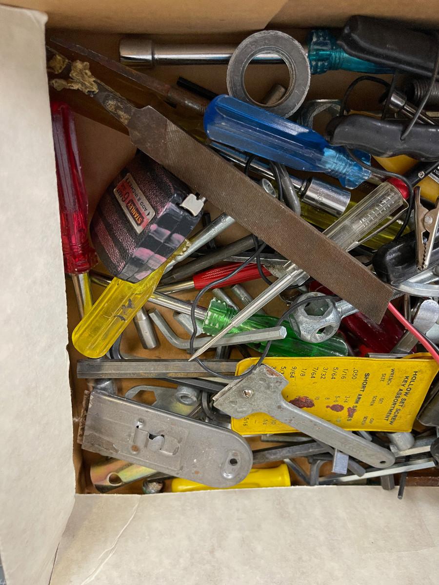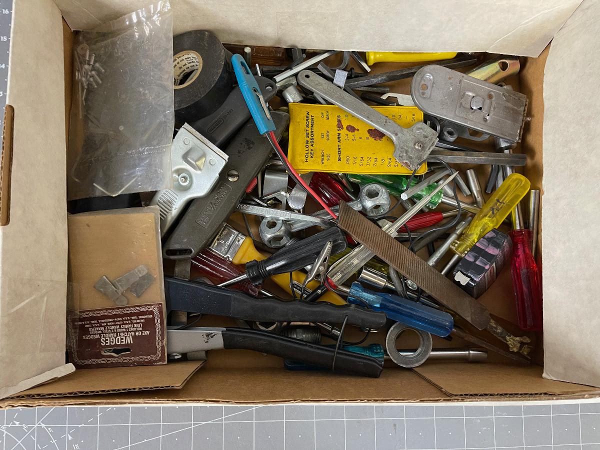 Tray of Tools; Allen wrenches, rivet gun, knives