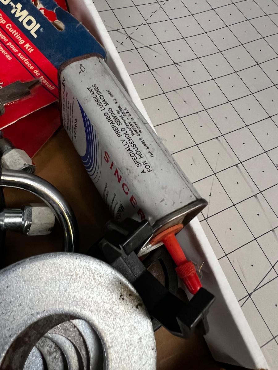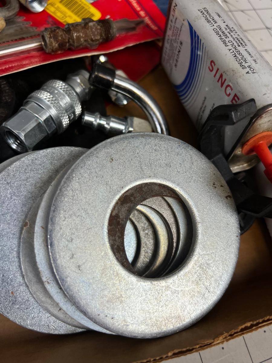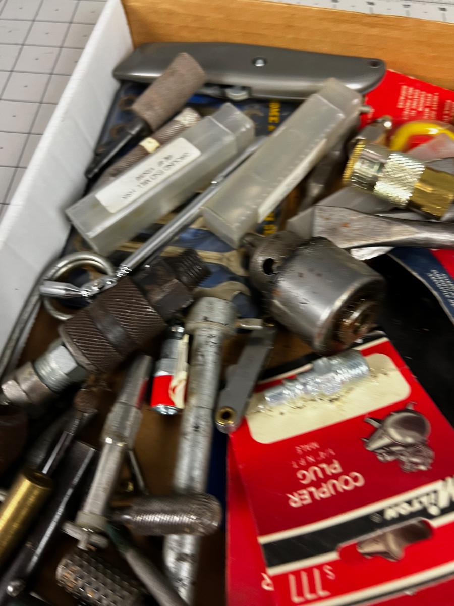 Tray of Tools and Bits: Saw Blade, Punches, Air Chuck