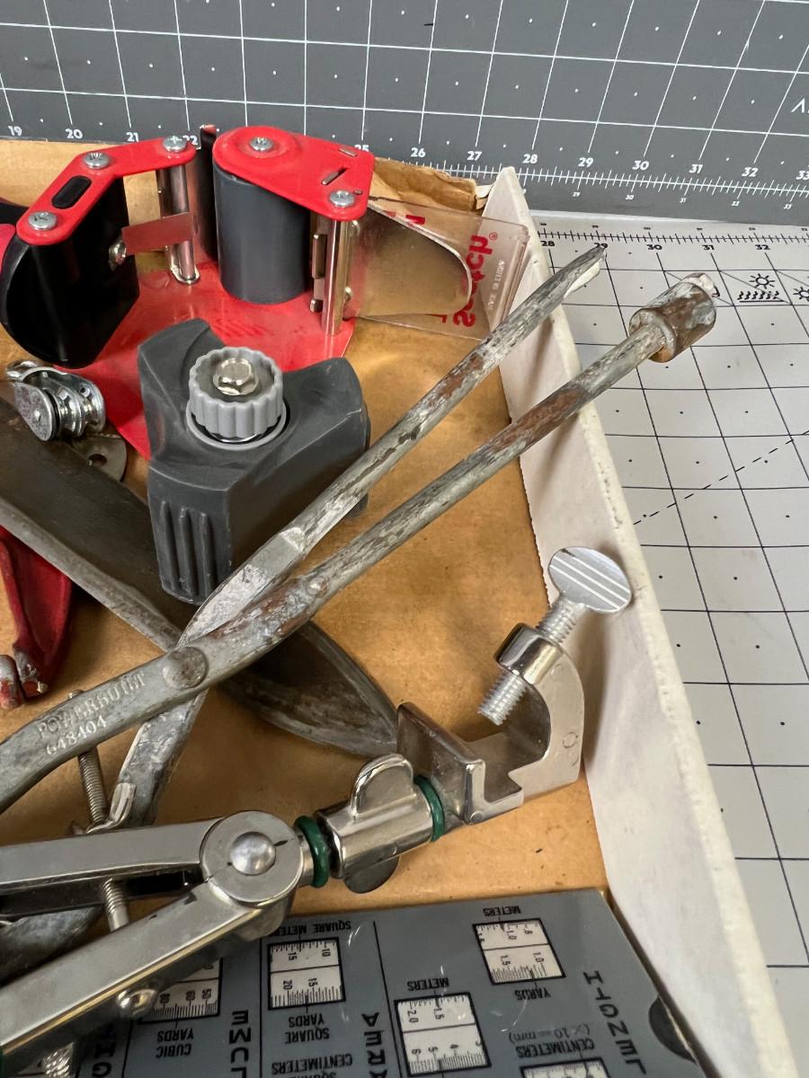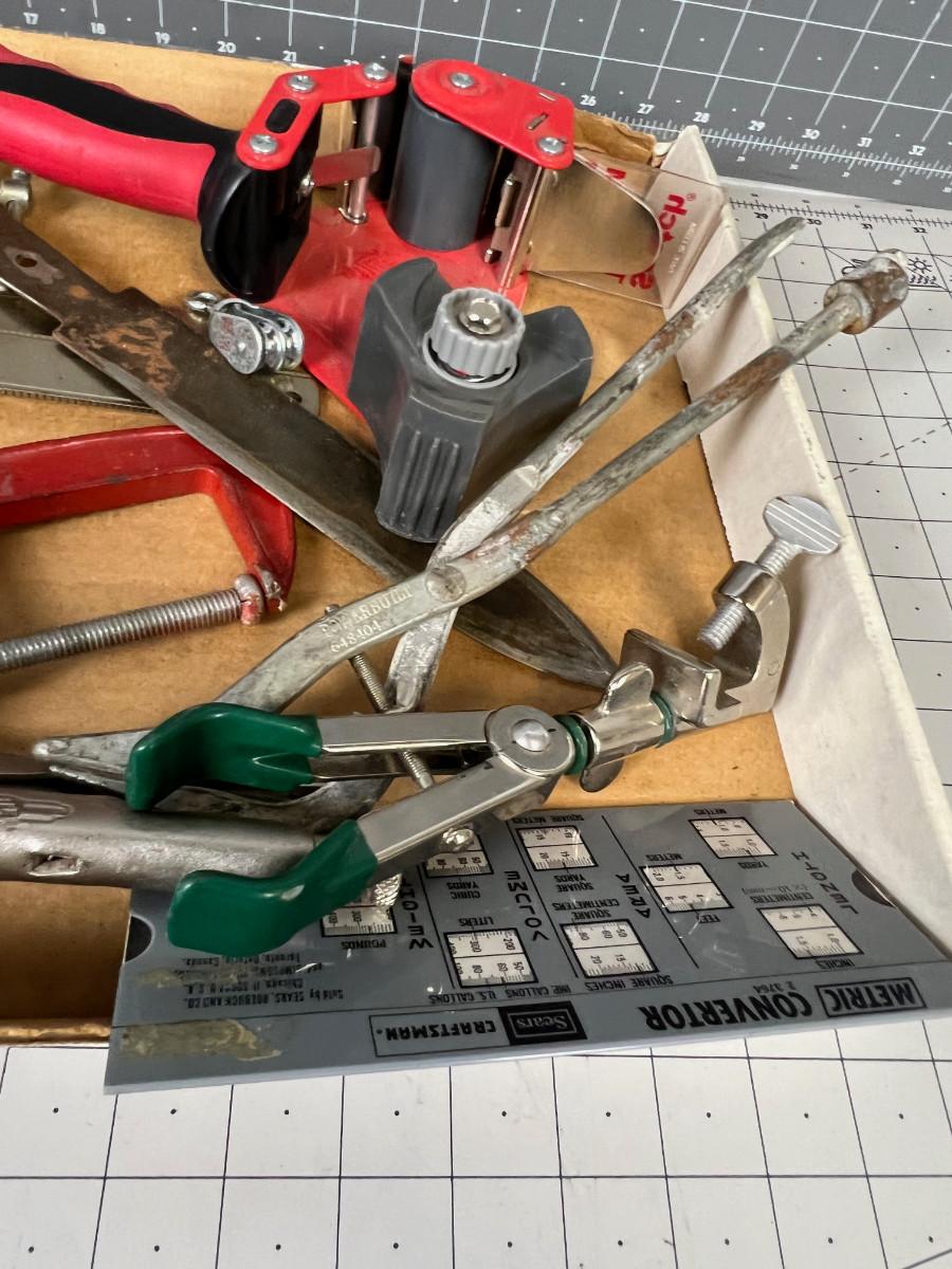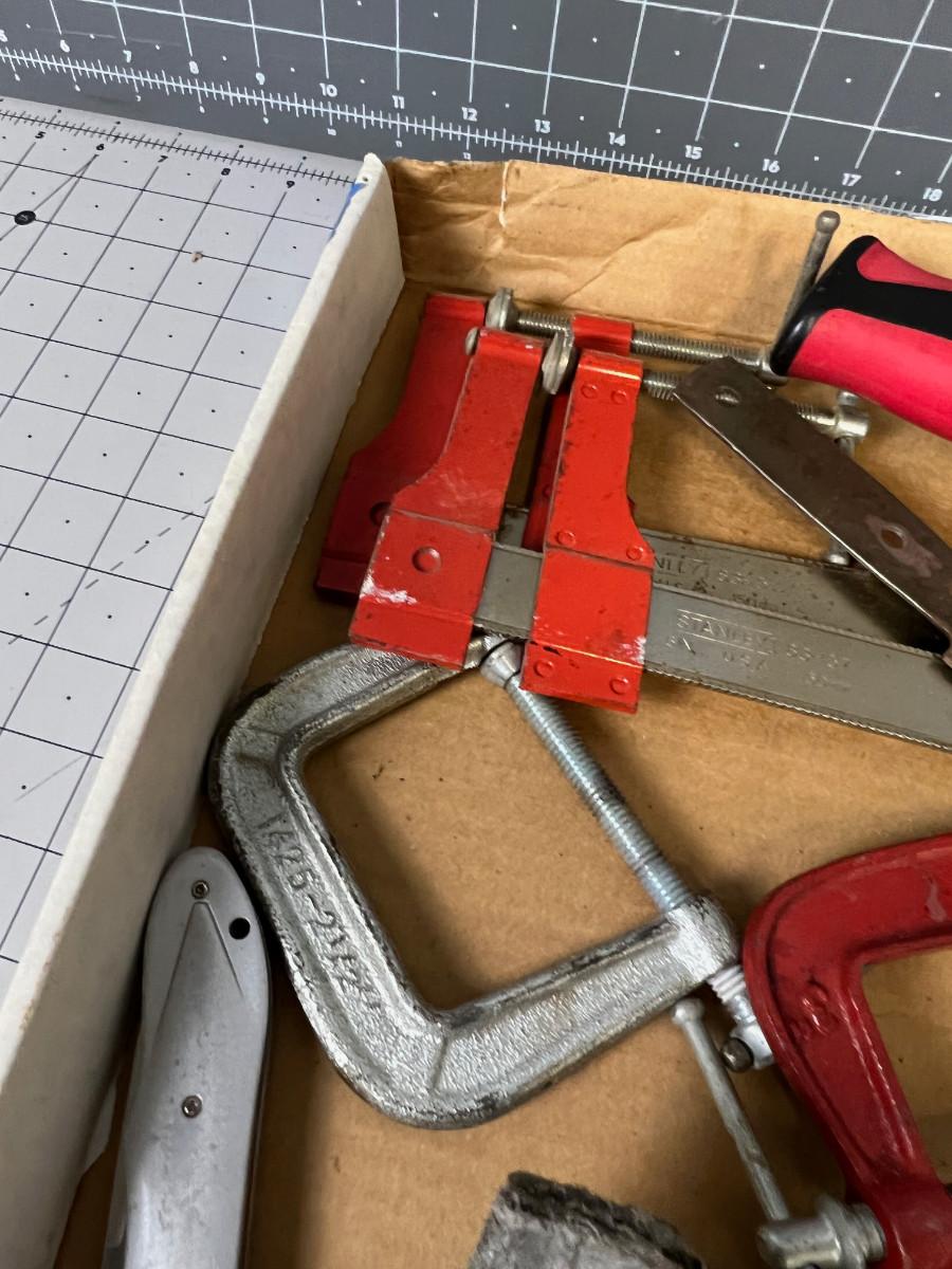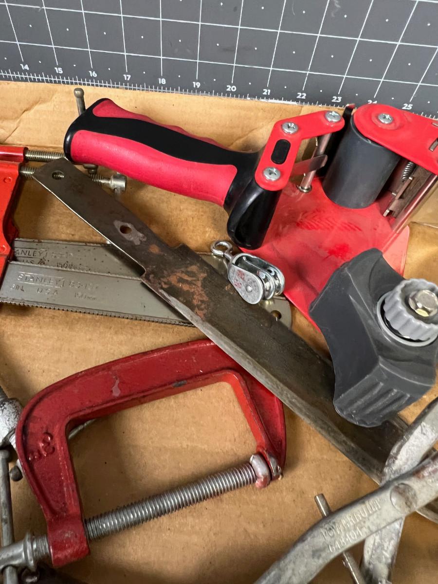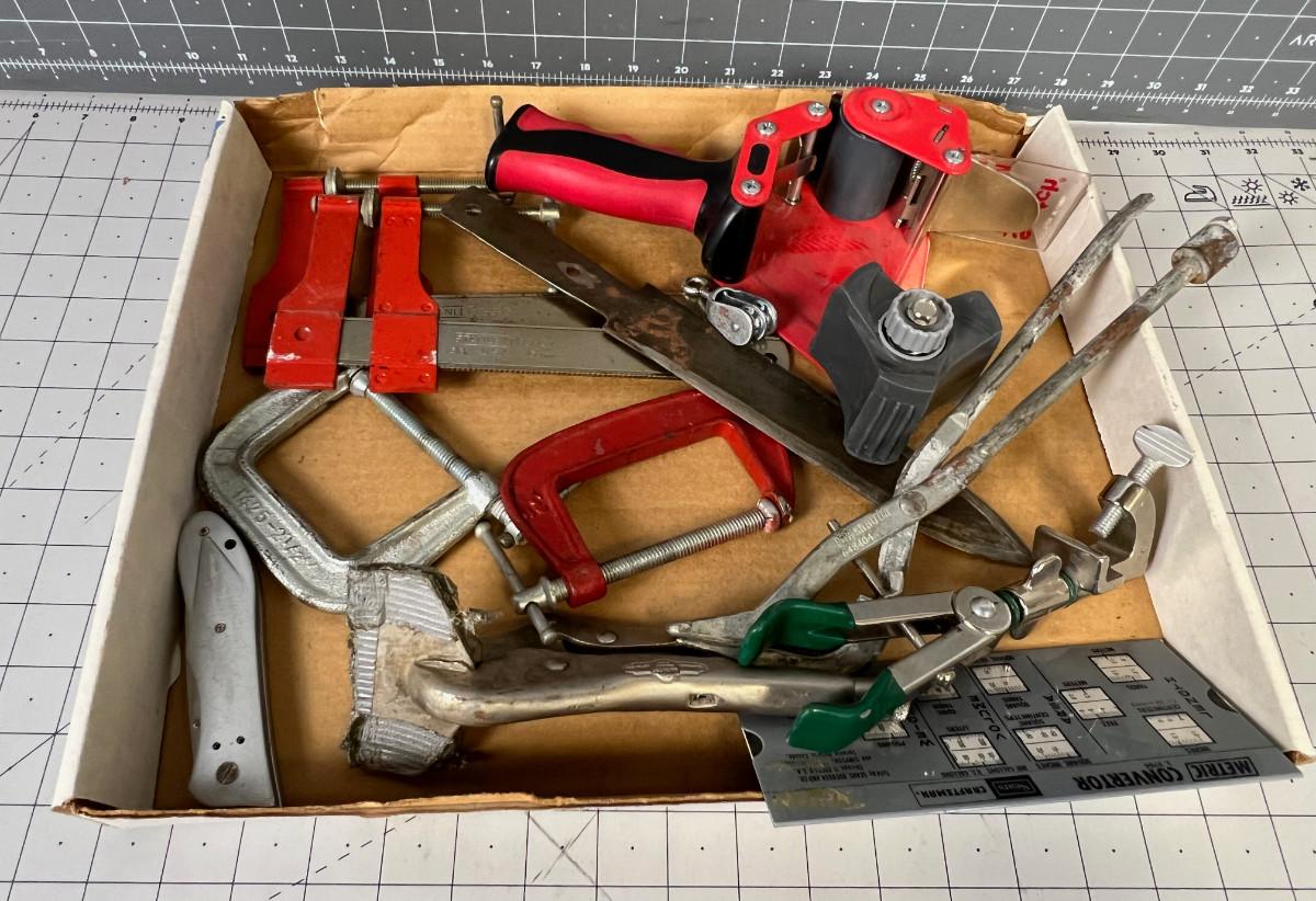 Tray of Tools Clamps Knife etc.