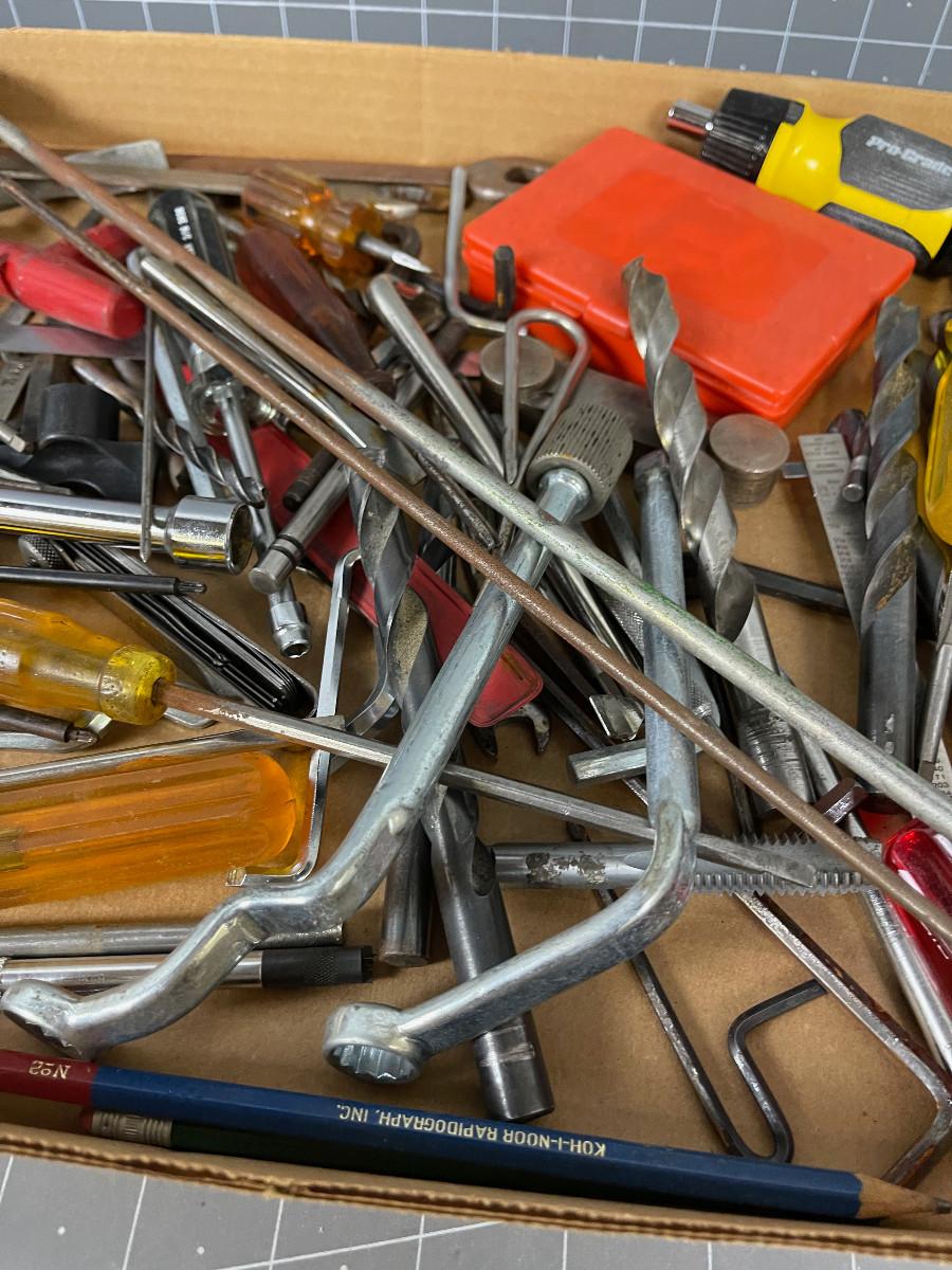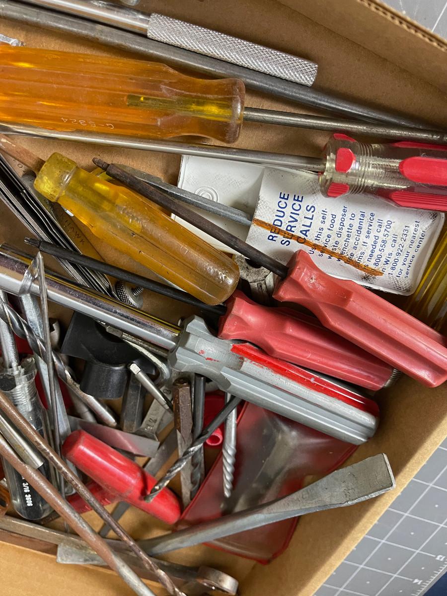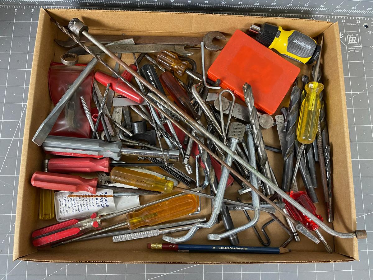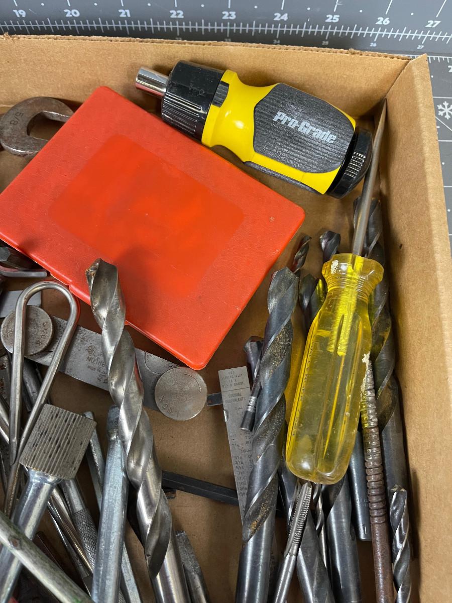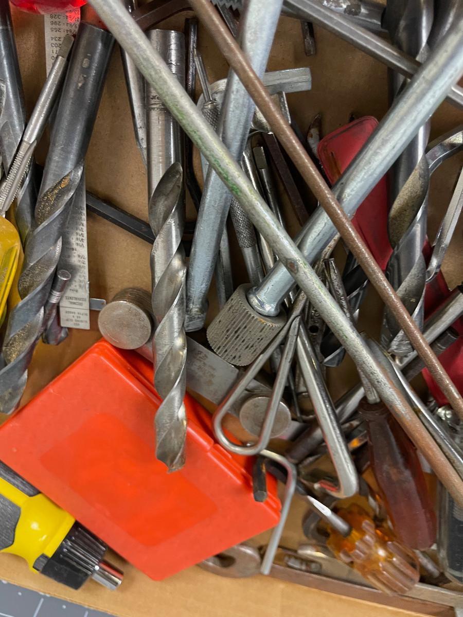 Tray of Tools, Drill bit, Feeler gauge, etc.