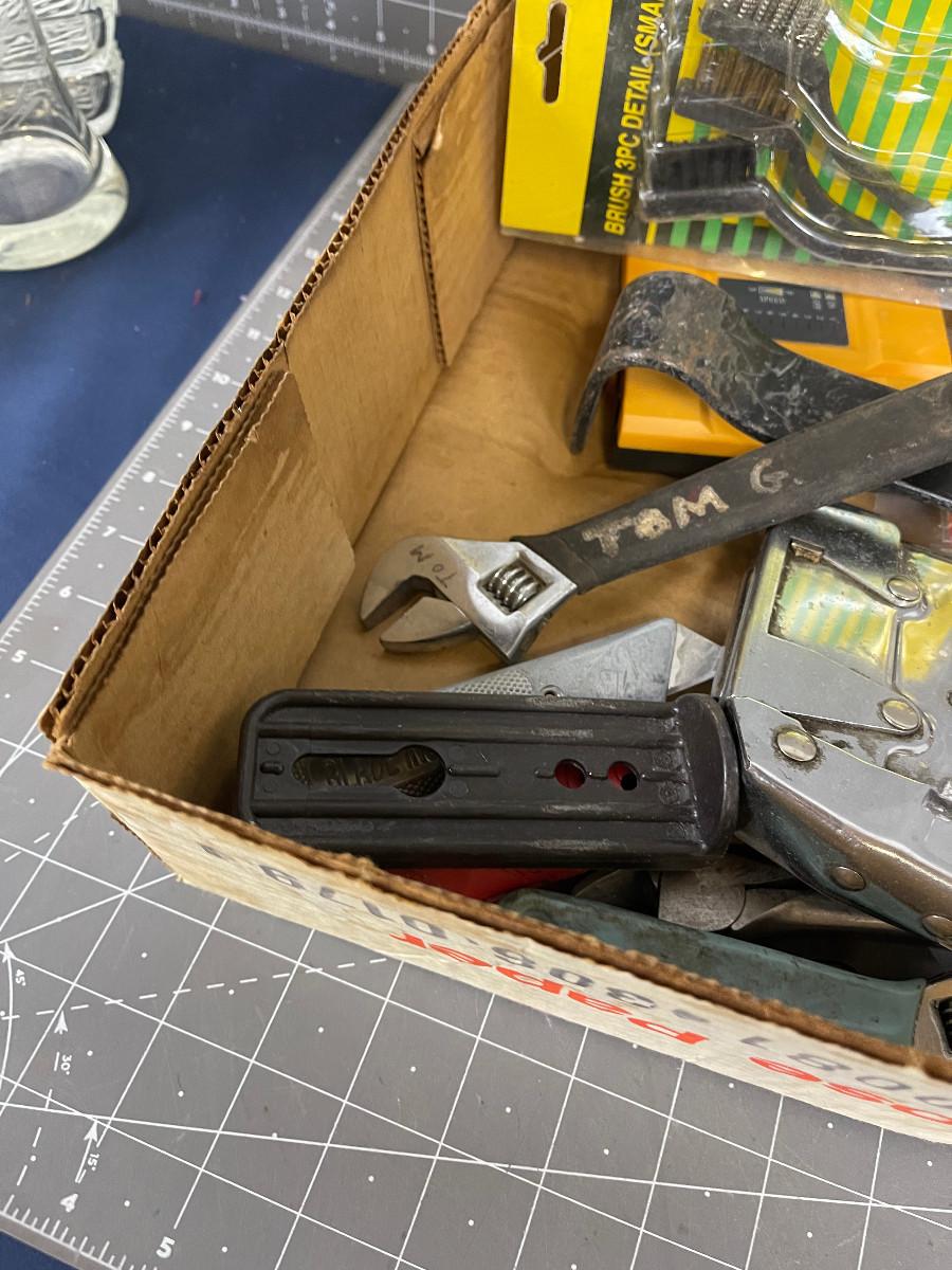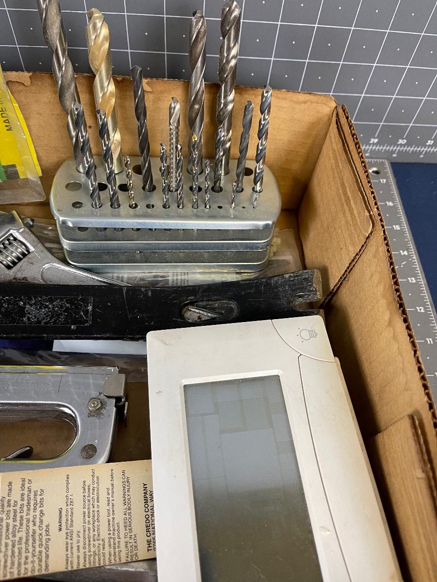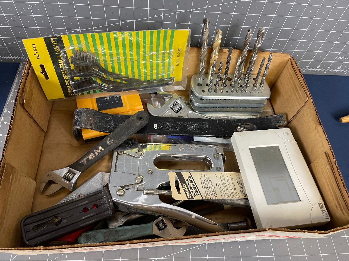 Tray of Tools, Drill bit, wonder Bar, etc.