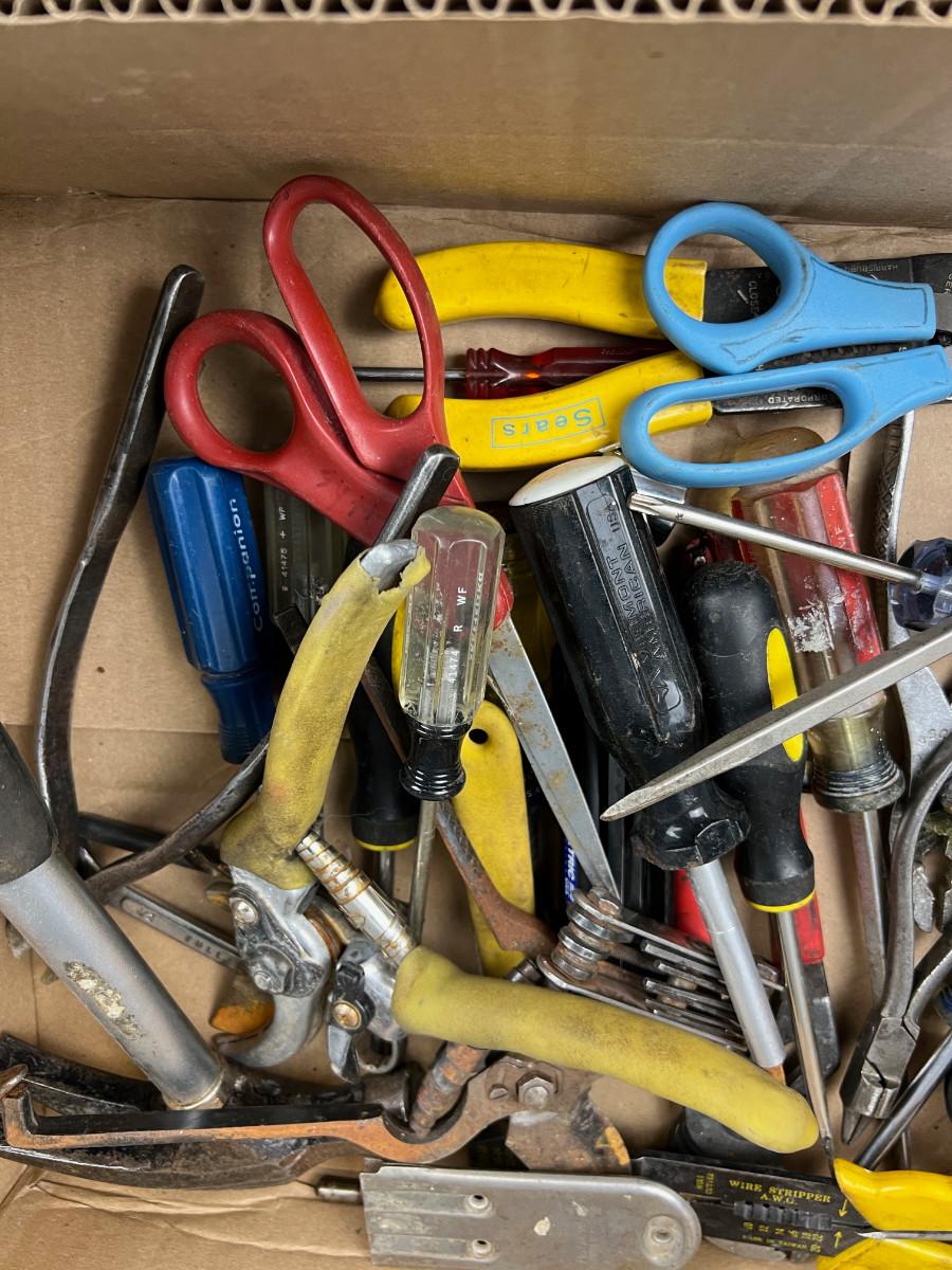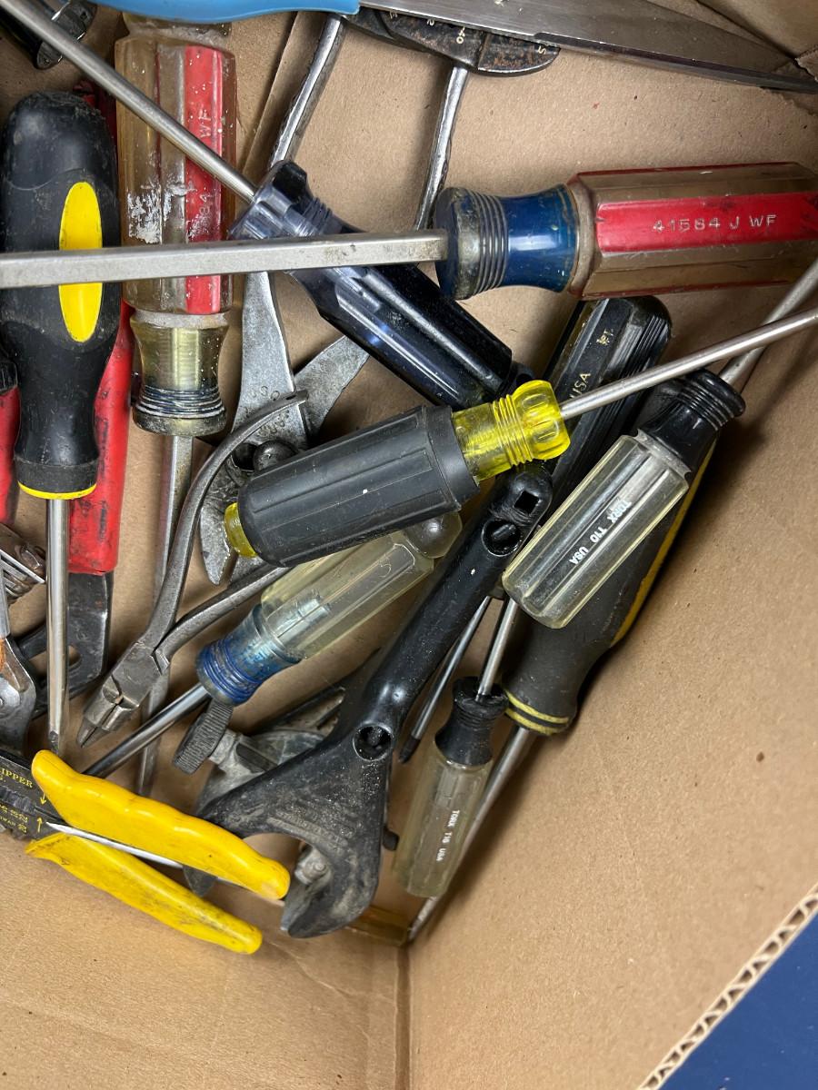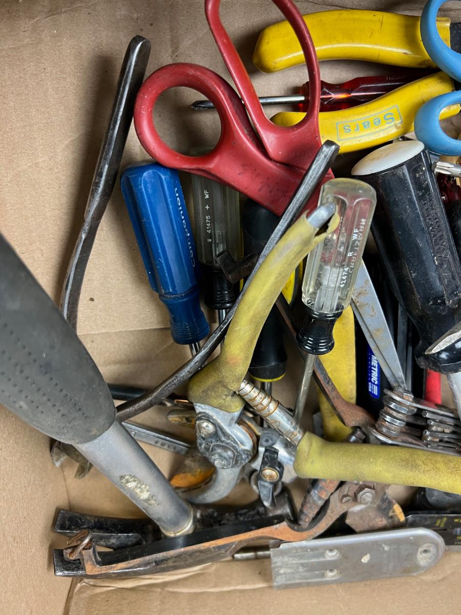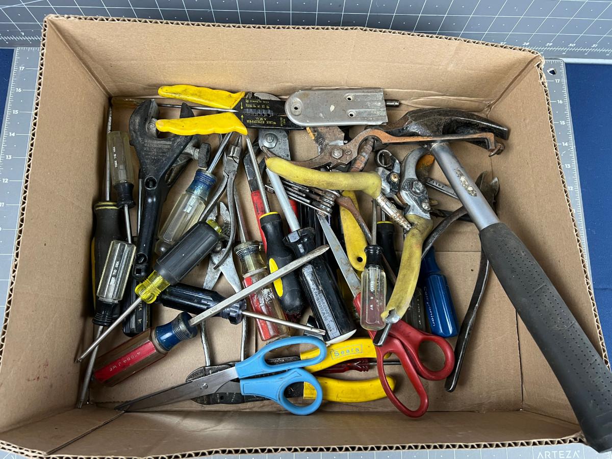 Tray of Tools: Hammer, channel Lock and screwdrivers