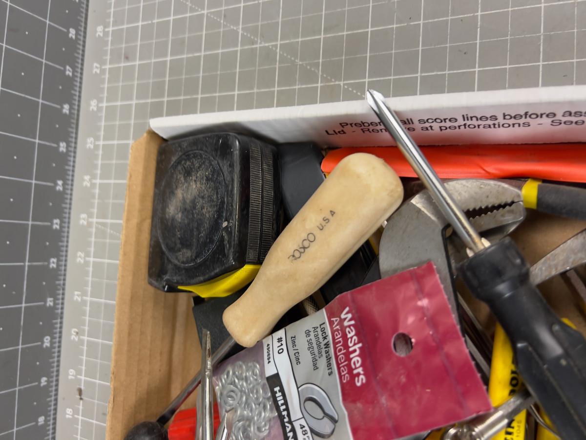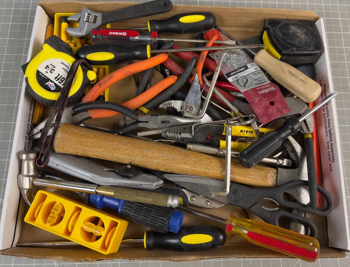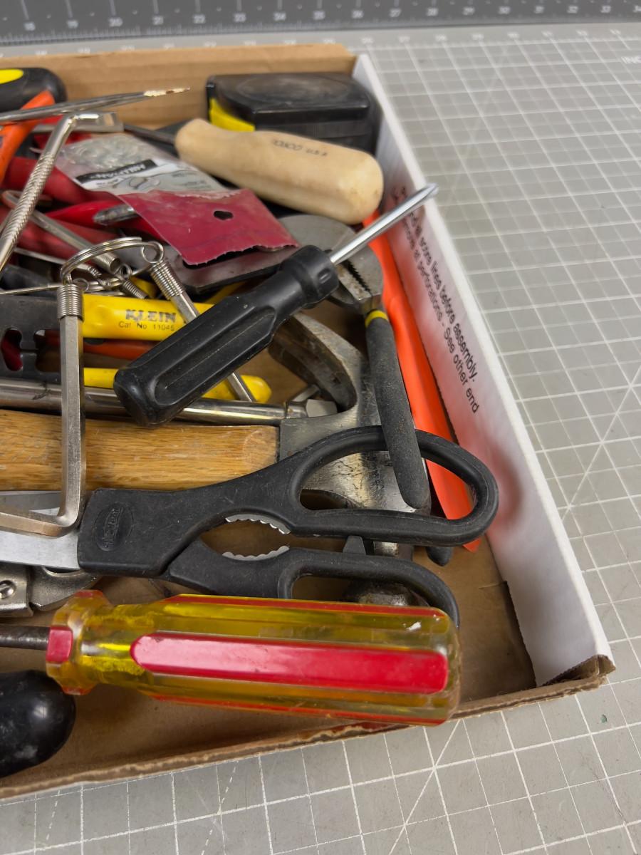 Tray of Tools: Hammer, Screwdrivers, Tape Measure Channel Locks etc.