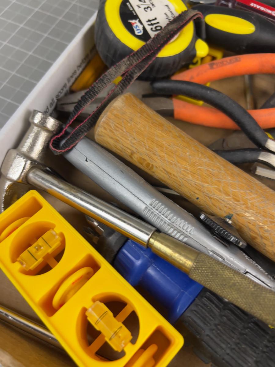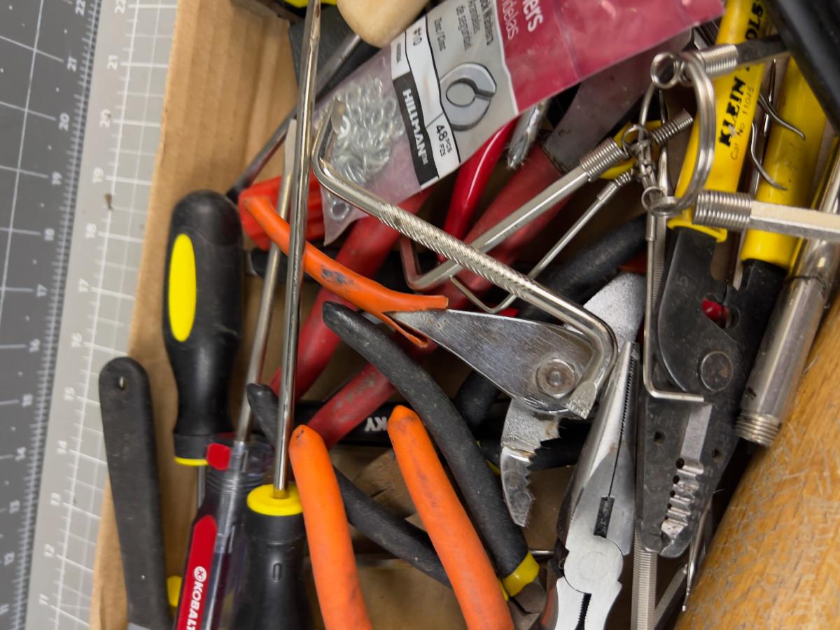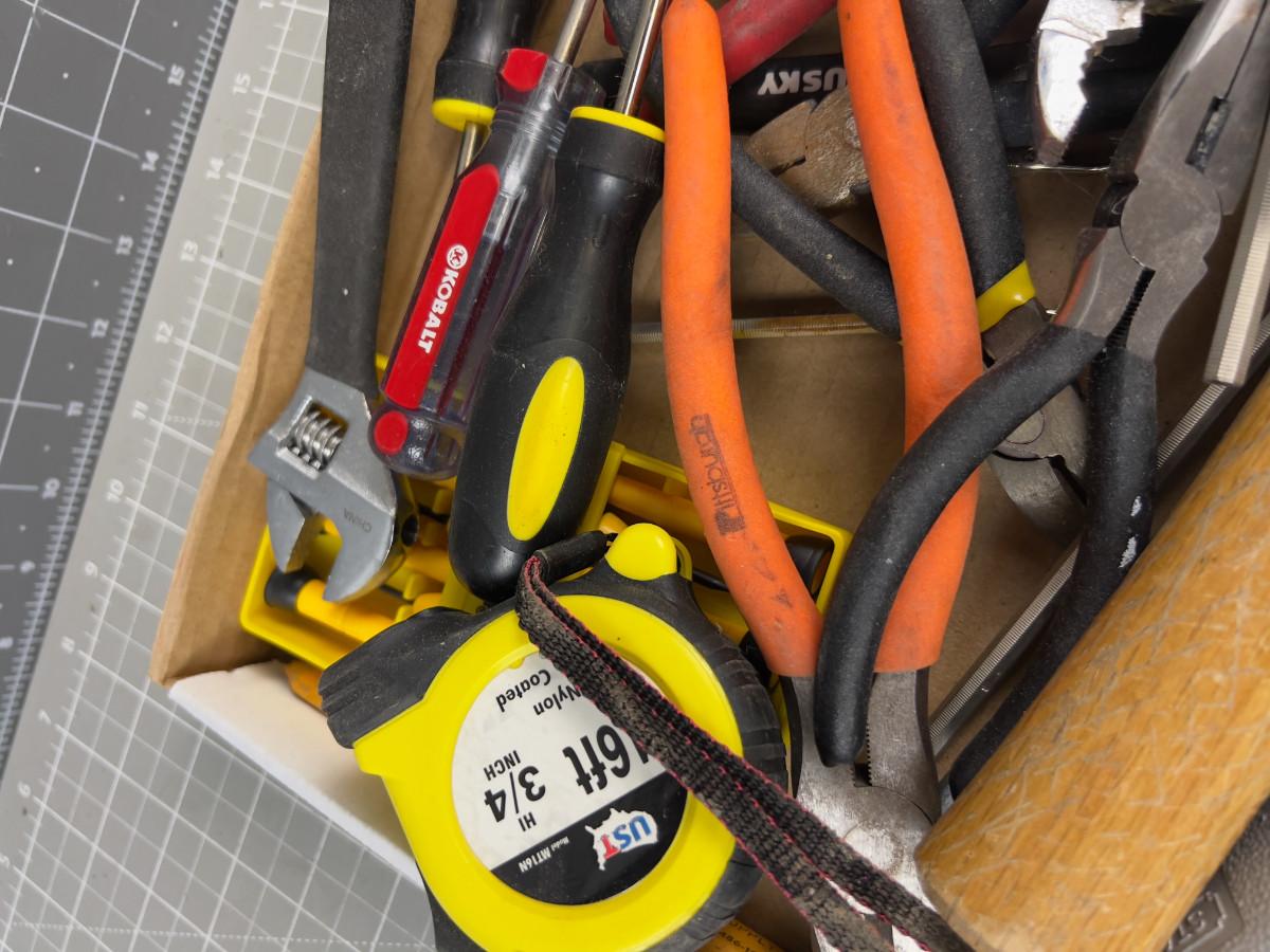 Tray of Tools: Hammer, Screwdrivers, Tape Measure Channel Locks etc.