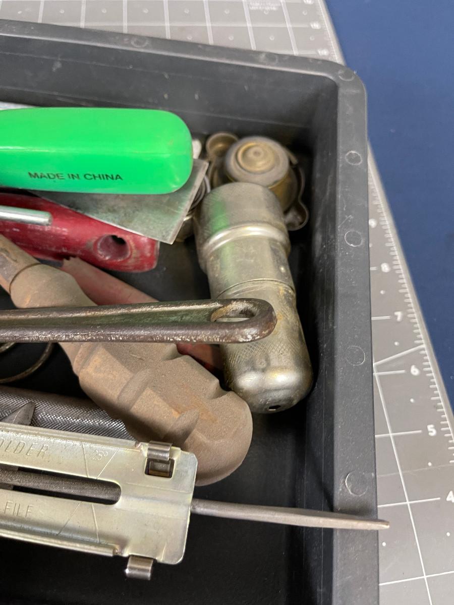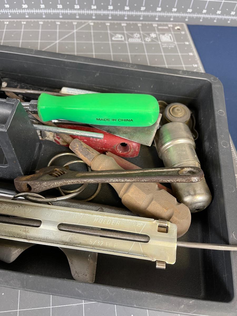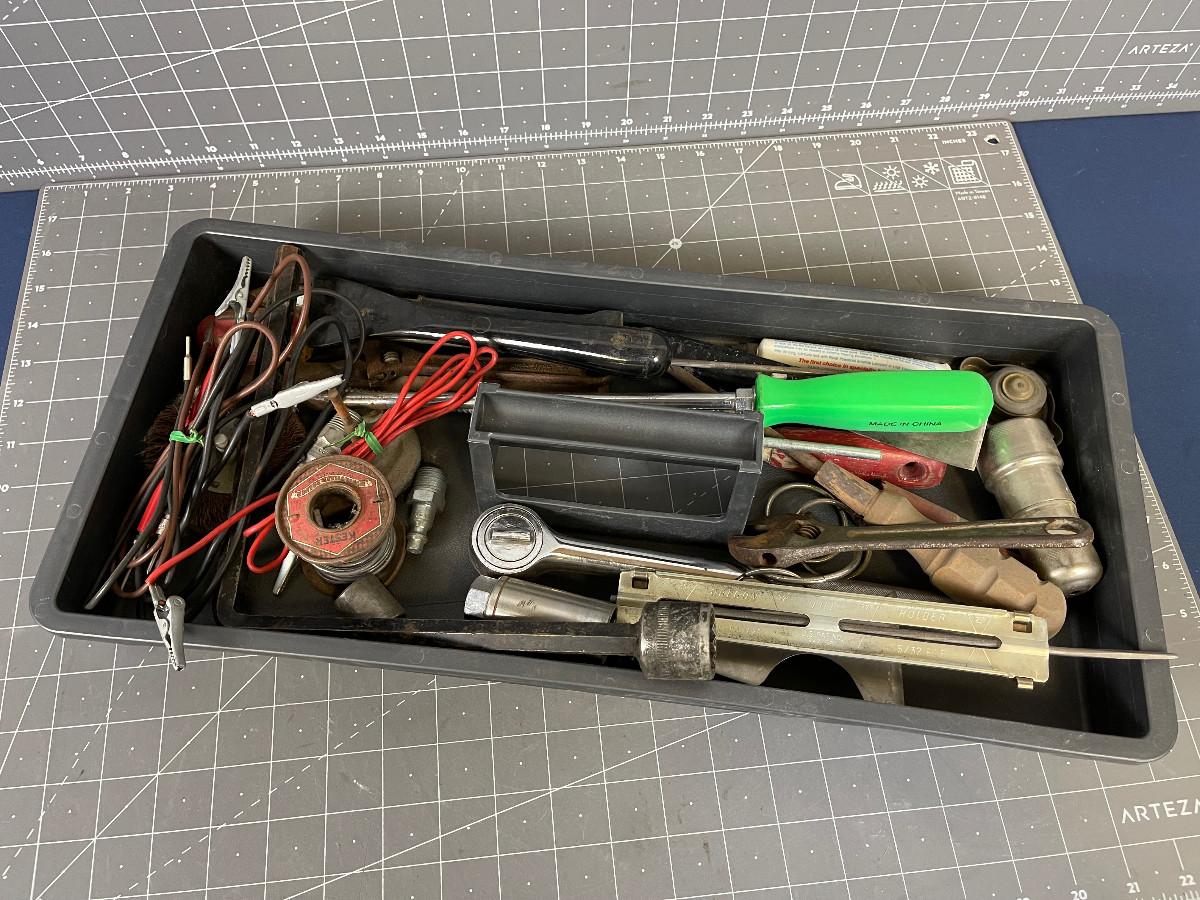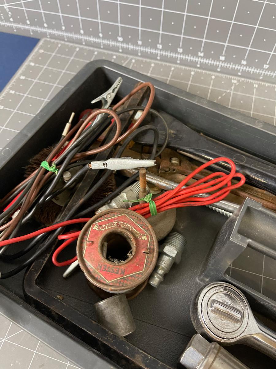 Tray of Tools; Sparkplug Clean, Socket Wrench