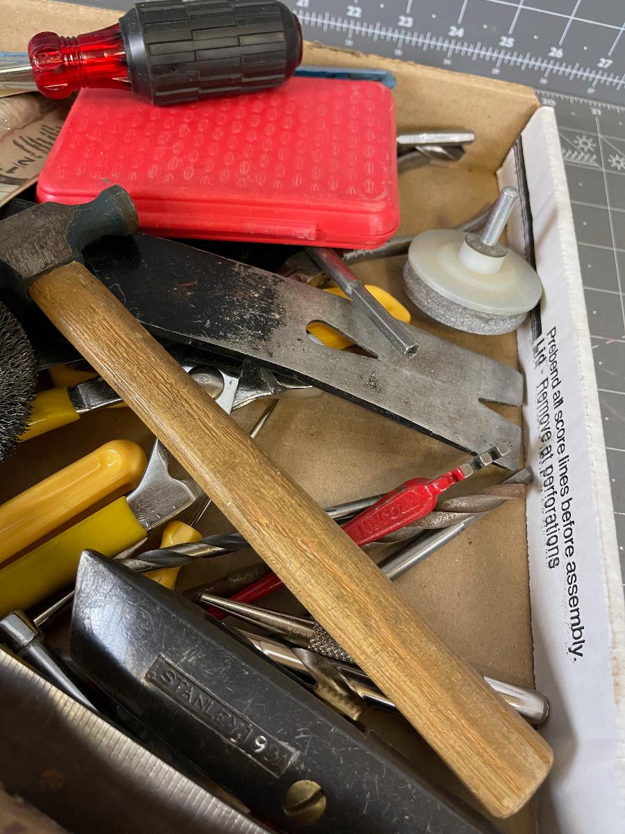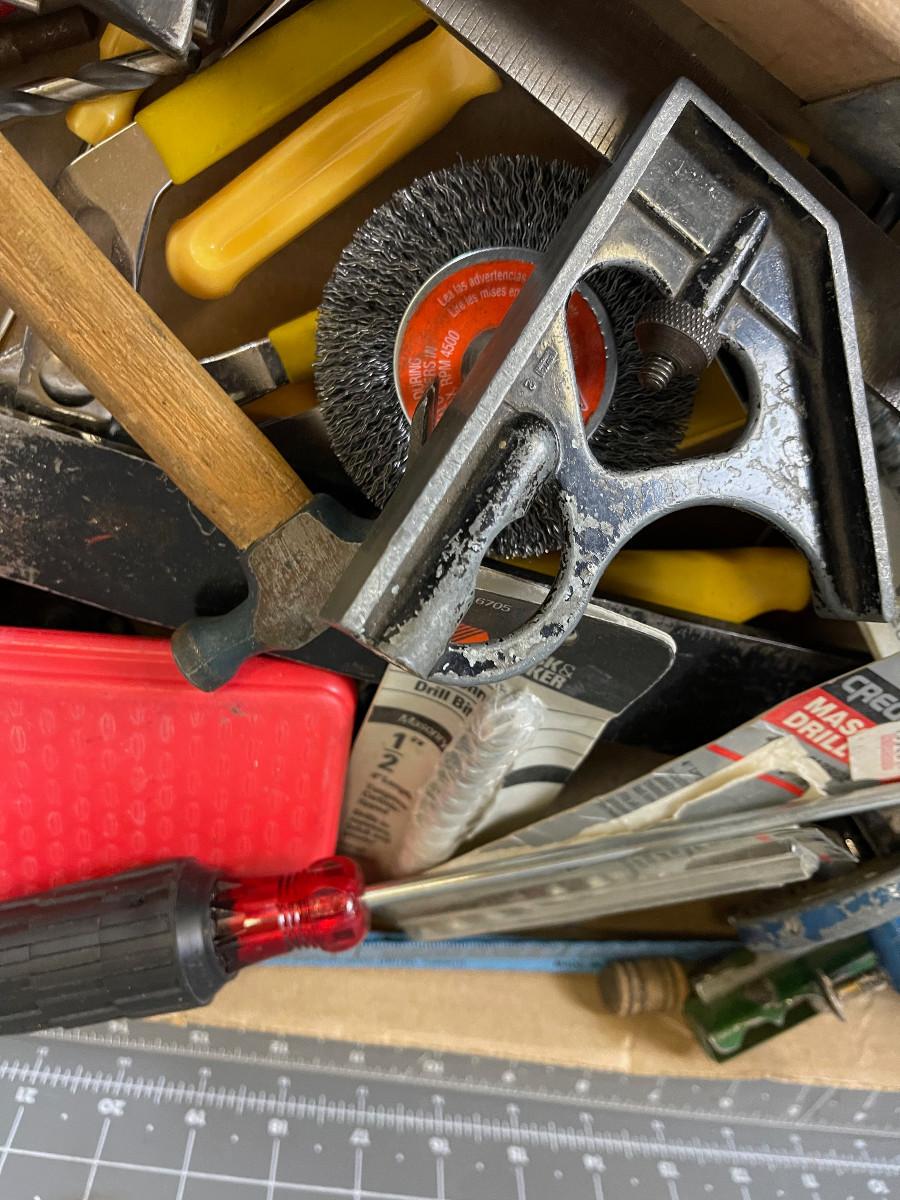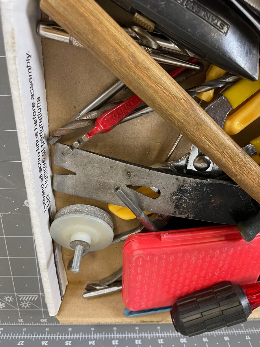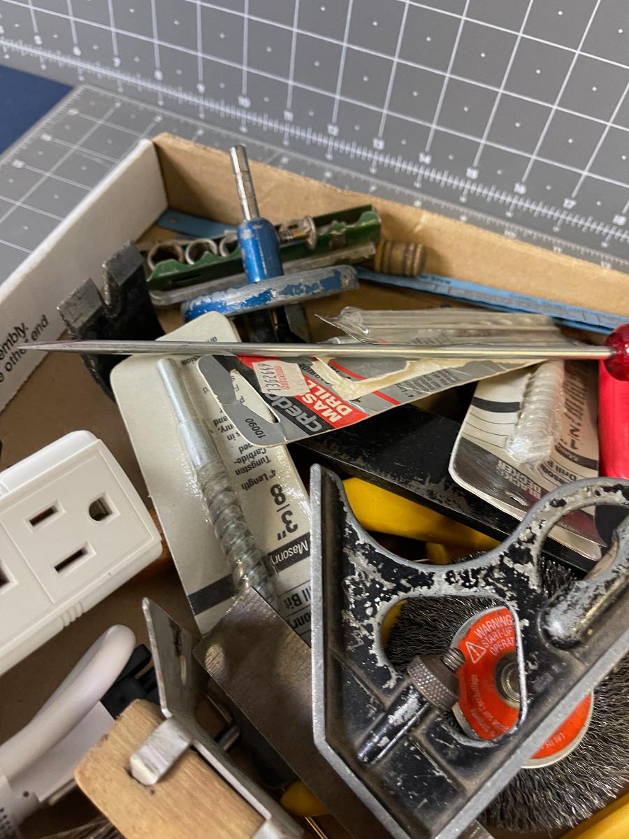 Tray of Tools: Wonder bar, Drill bit, screw Driver
