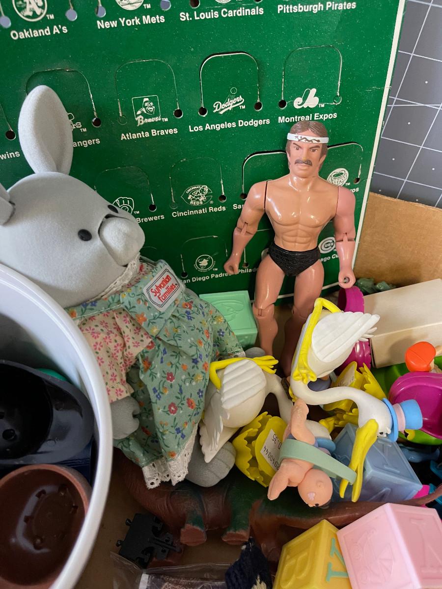 Tray of Toys: Deer, Blocks, Dinosaur etc.