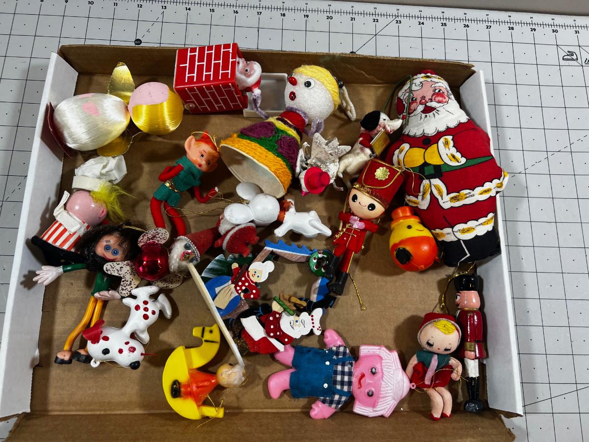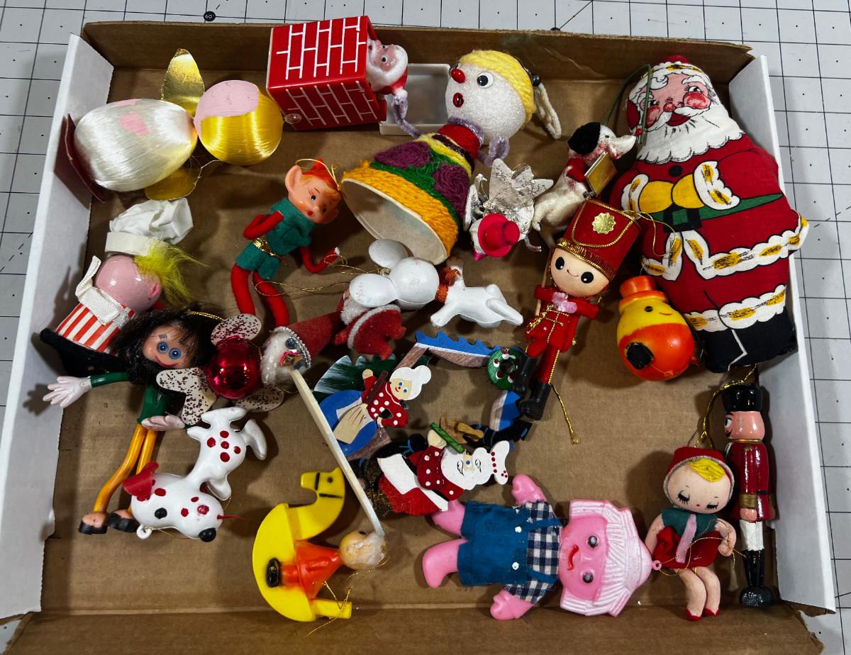 Tray of Vintage X-mas Ornaments from 60's & 70's