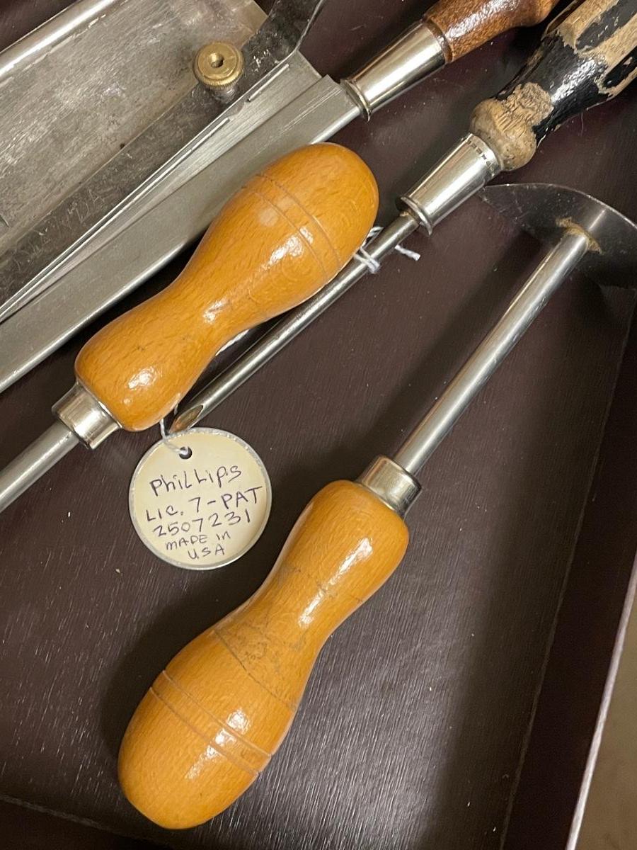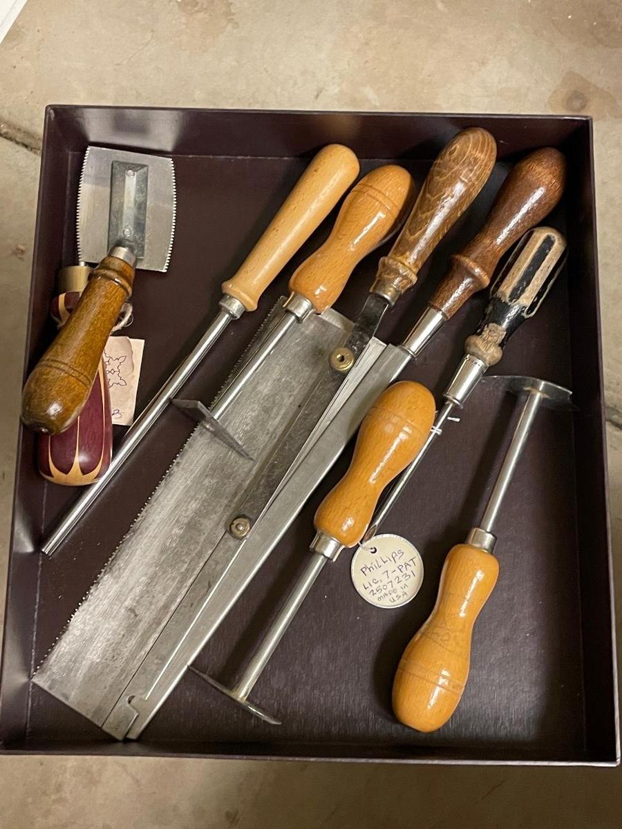 all unique hand tools mainly for woodworking we believe & also Vintage Phillips wood handled screw driver & other unknown hand tools