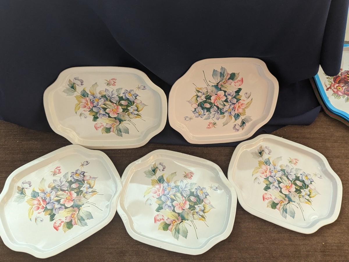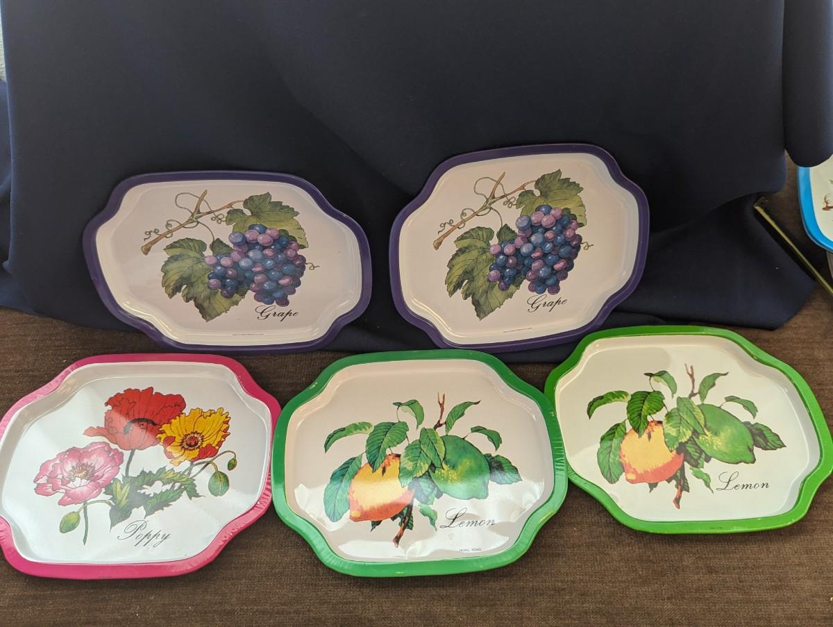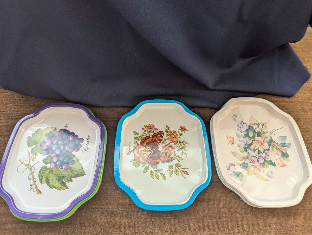 A great assortment of small metal trays, can be used for snacks or decorations.