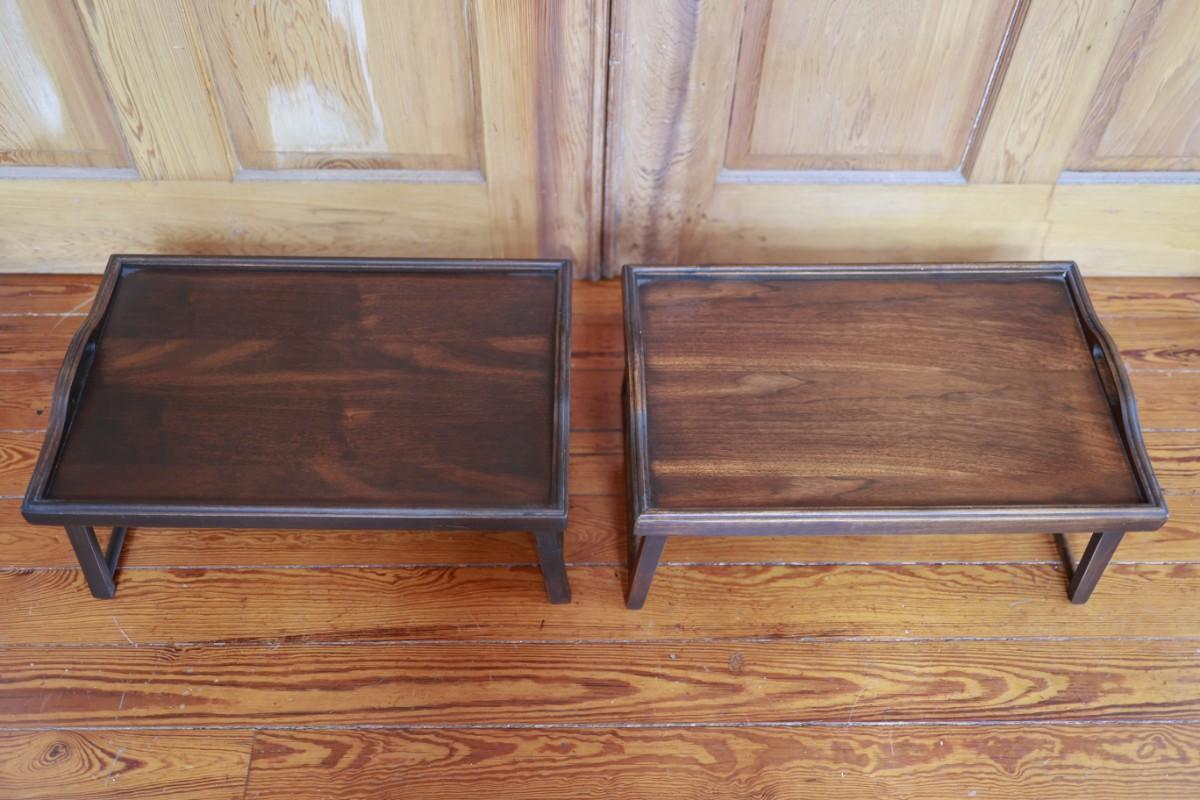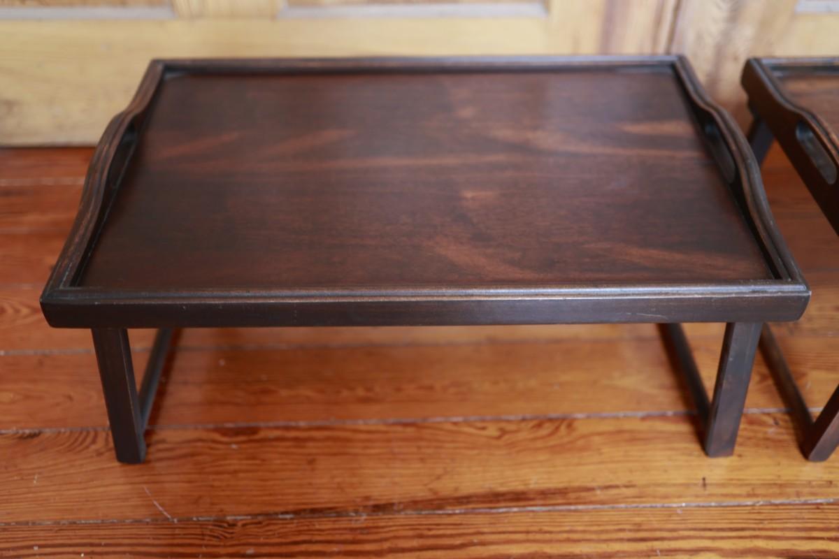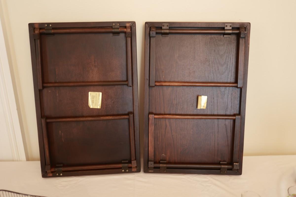 Pair of vintage wooden folding bed trays by Bluff City Furniture Manufacturing (Memphis, TN).