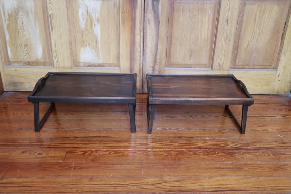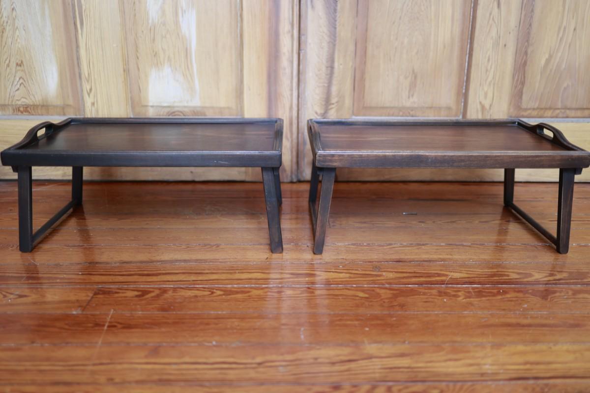 Both are sturdy and functional, with folding legs for easy storage. Ideal for serving or laptop use in bed or on the couch.