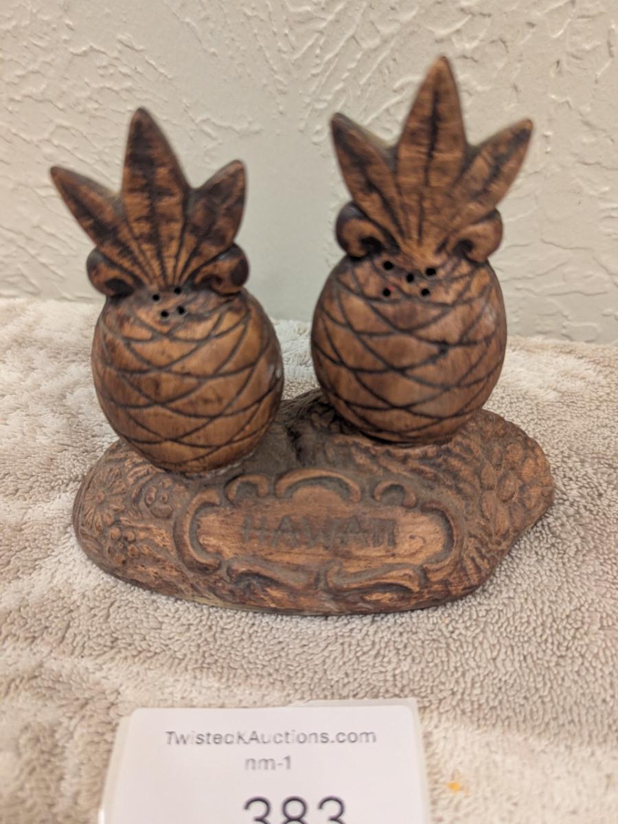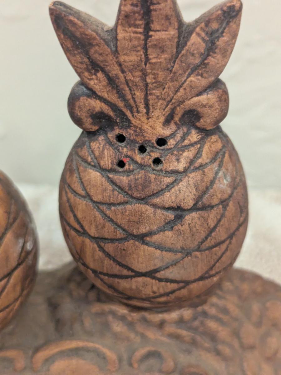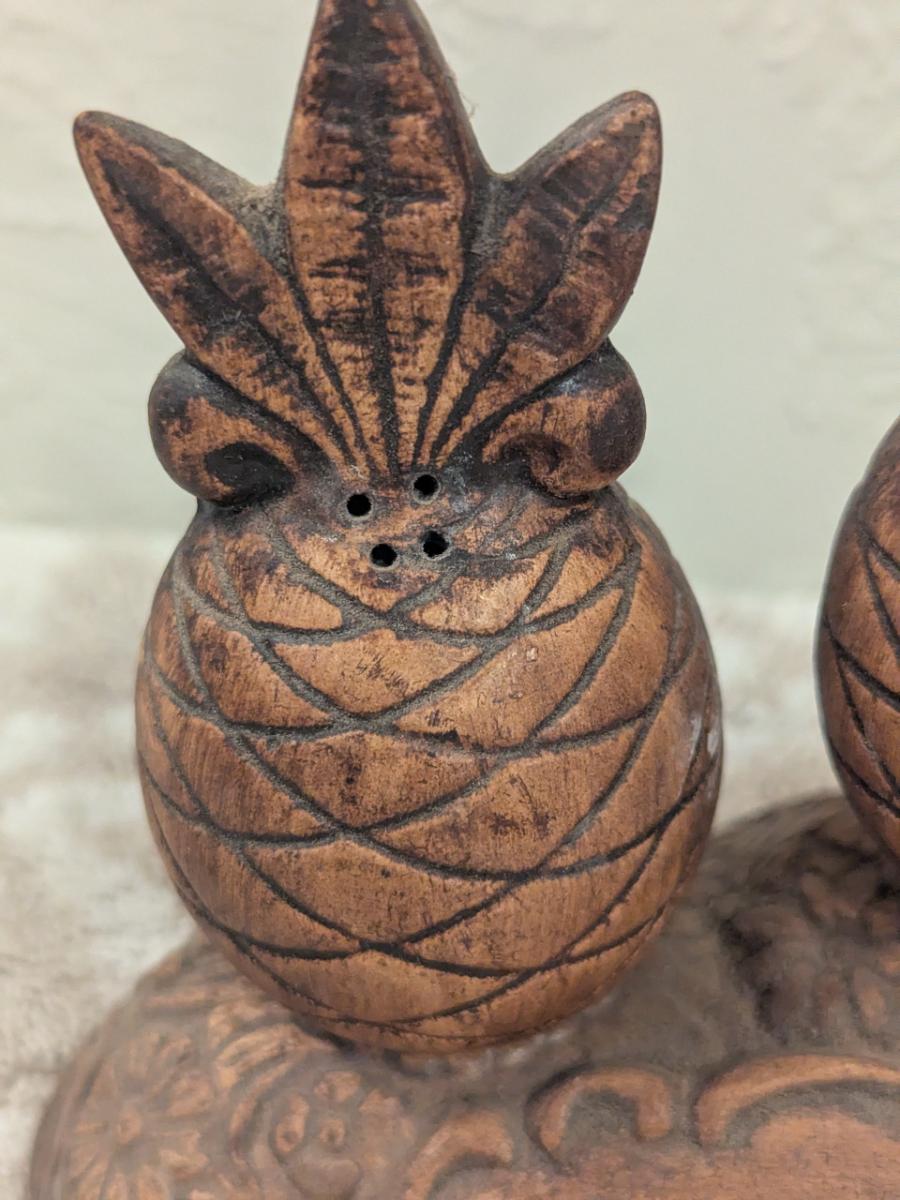 Treasure craft Hawaii ceramic pineapple salt and pepper shakers with base