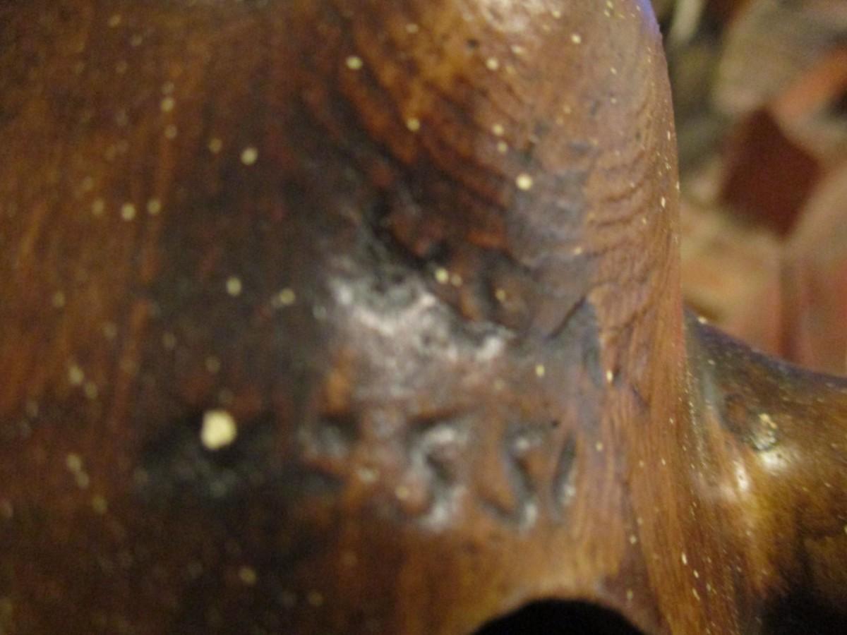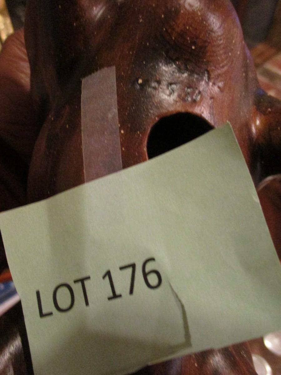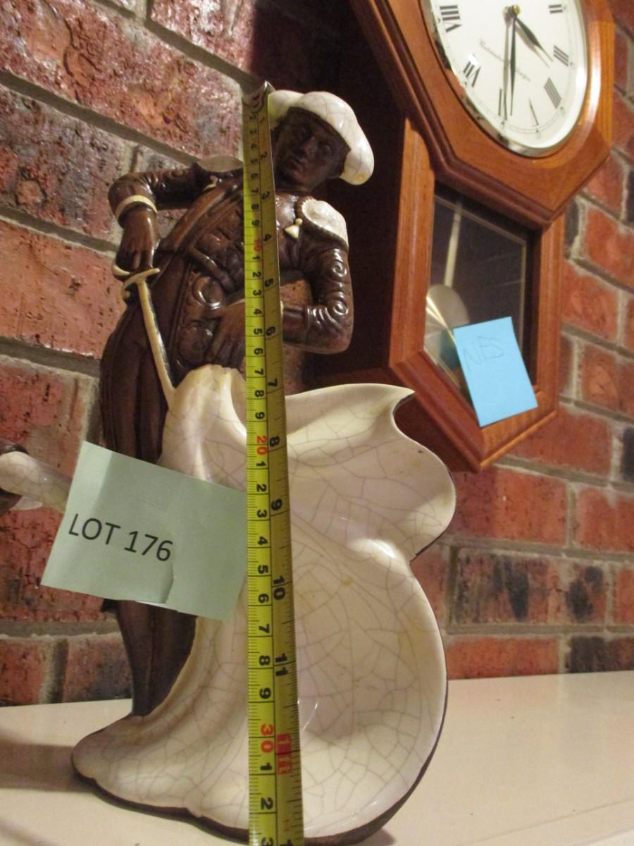 Wood carved bull and matador with ceramic sash. Vintage 1970's.