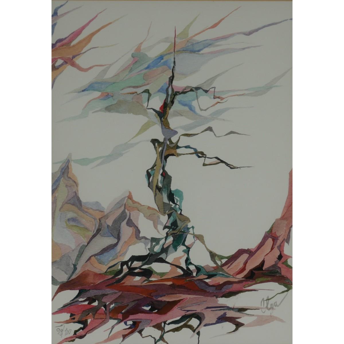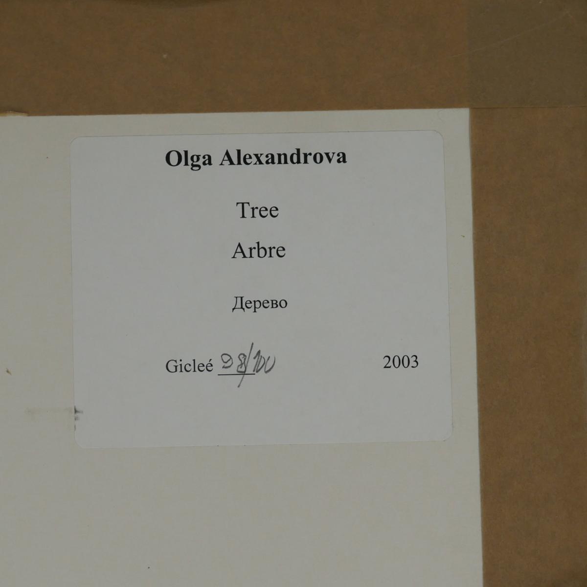 "Tree" by Olga Alexandrova limited edition watercolor giclée, numered 98/100, dated 2003. Framed and matted. Art is in excellent condition! Art measures L 10" x H 14". Frame measures L 17" x H 21" x D 0.75". Weight is 3 lb 12 oz. (A37)