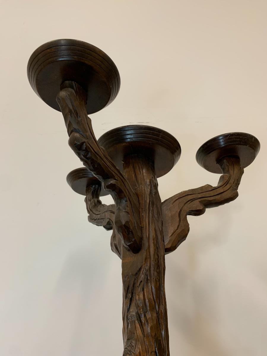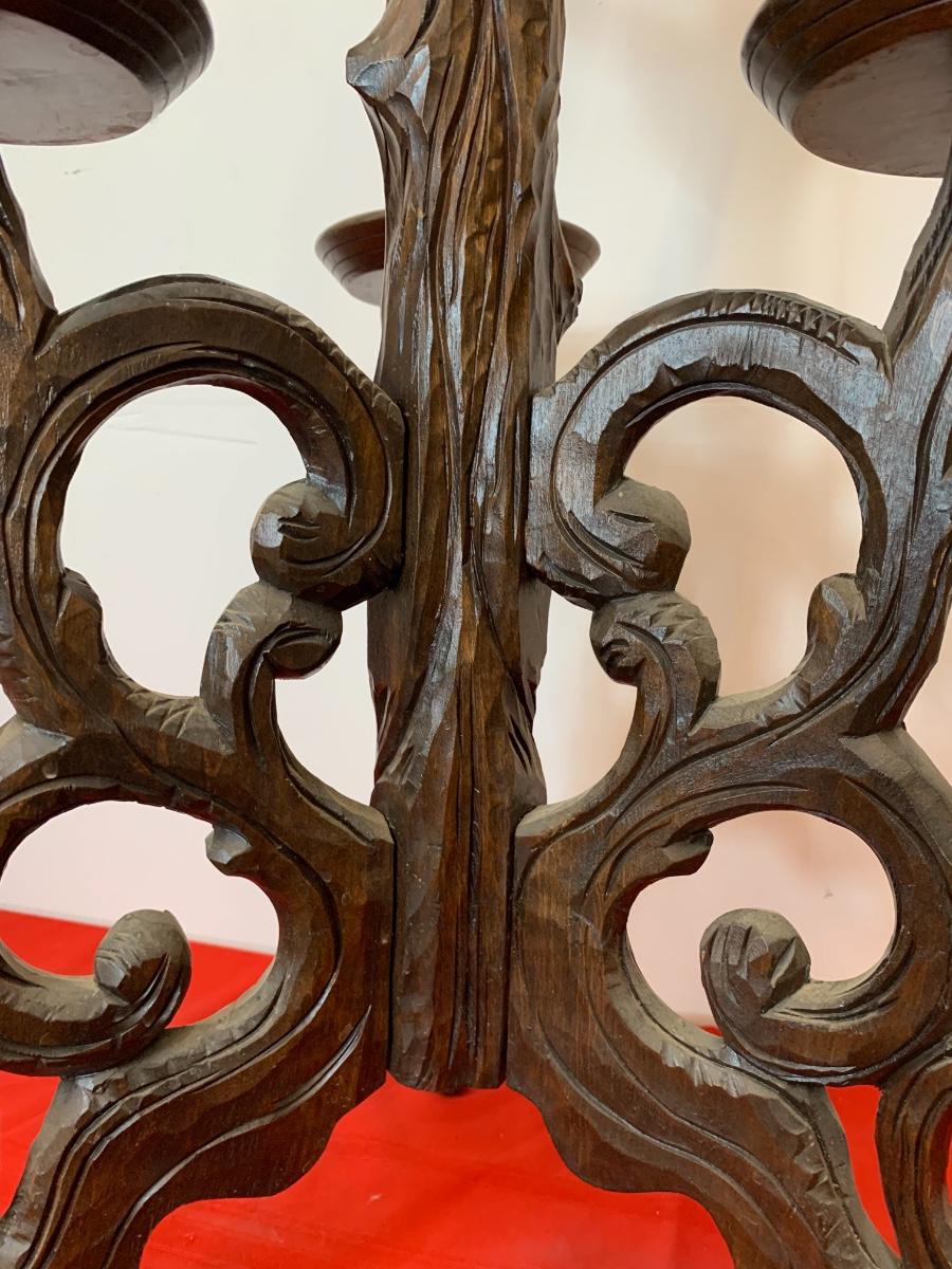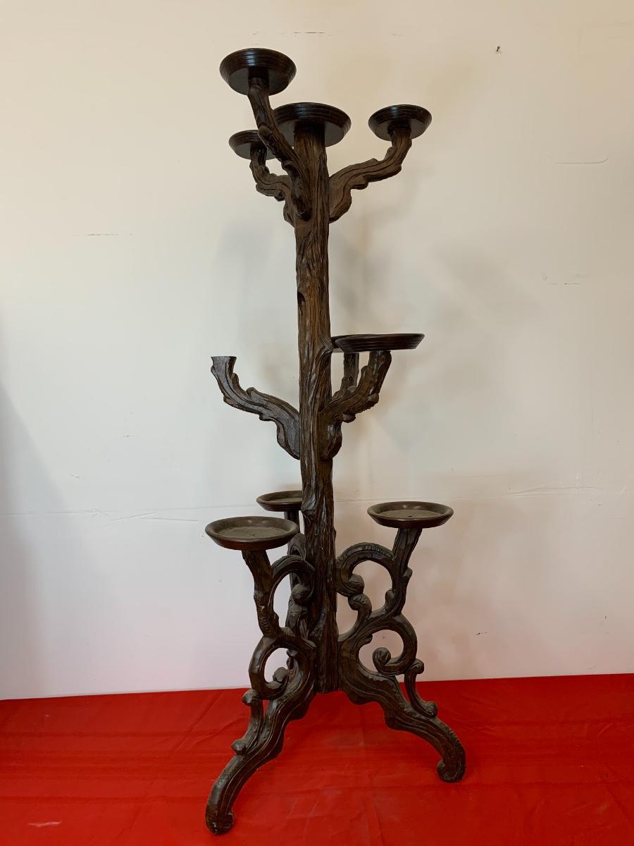 Unique decor piece in the shape of a tree. In fair condition due to one display arm missing circular plate piece. 53 inches in height at tallest piece