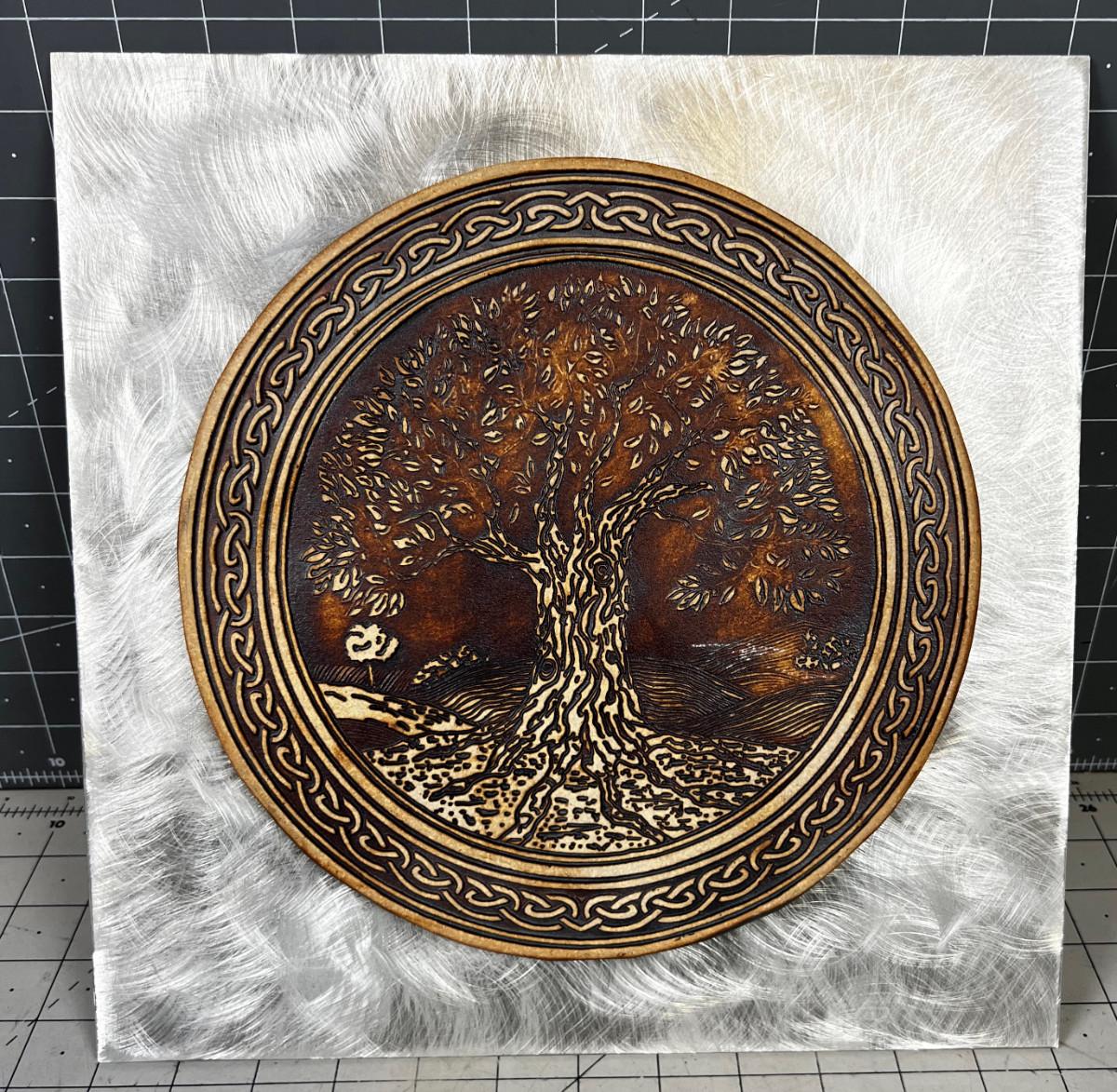 Tree of Life Tile with Aluminum Backing Frame. Artist Signed