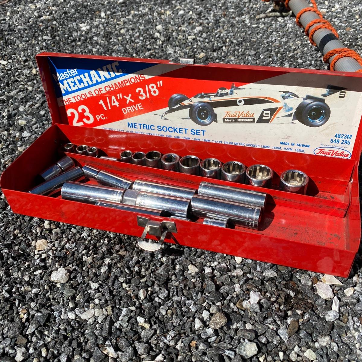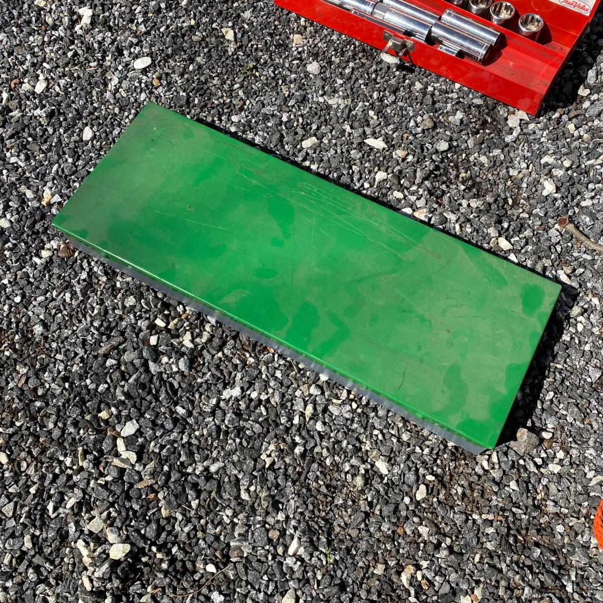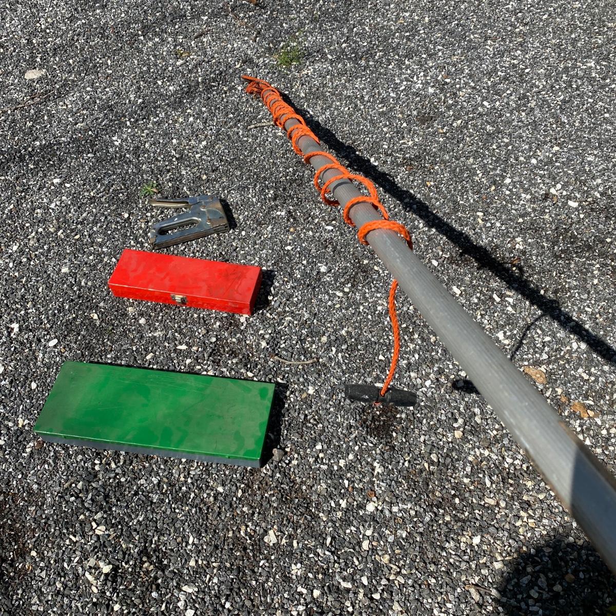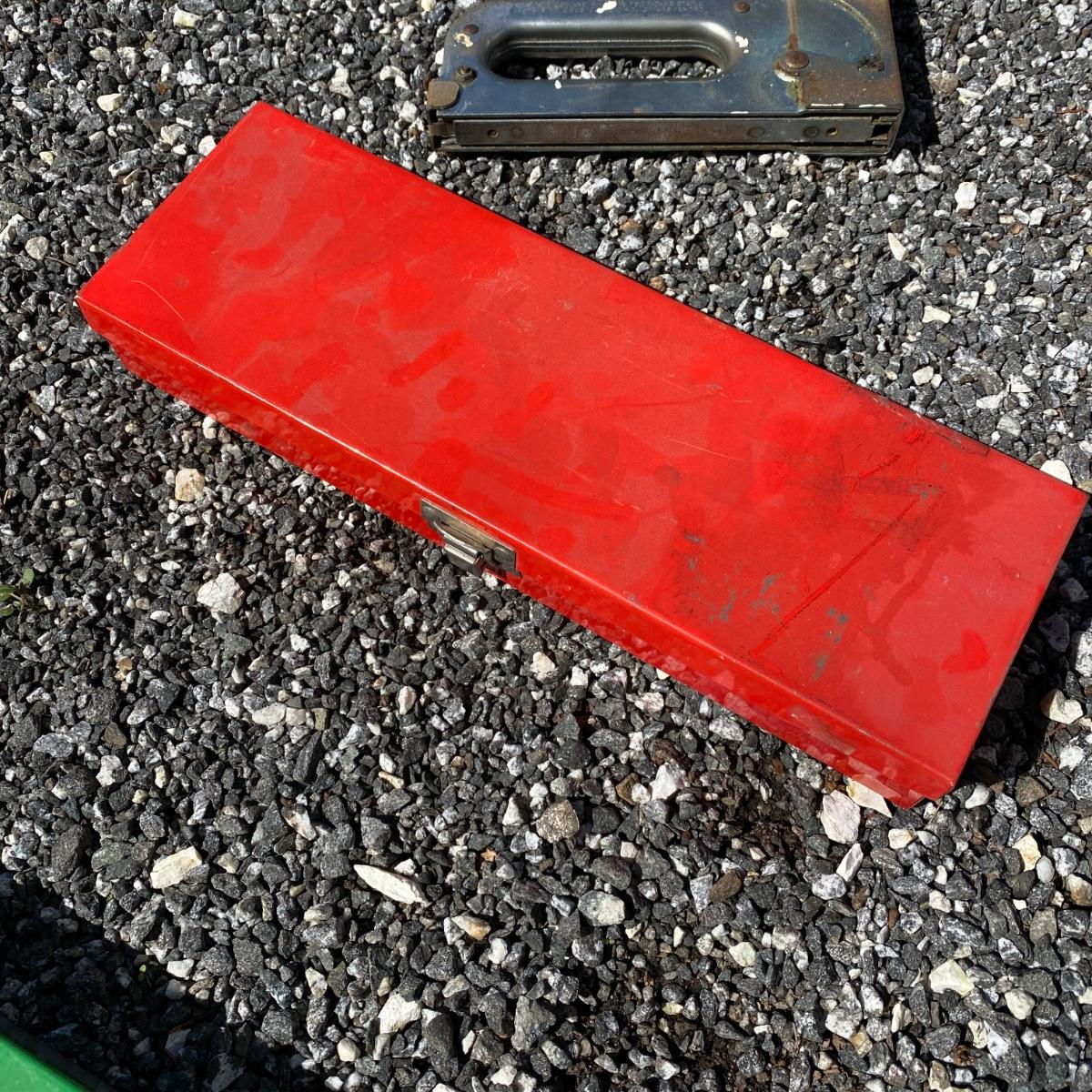 Two socket sets with all sizes you may need. Both come in metal box for storage. Green one measures 16.5” x 6.5”. Lot also includes a 6.5foot tree trimmer and a staple gun. Local pick up