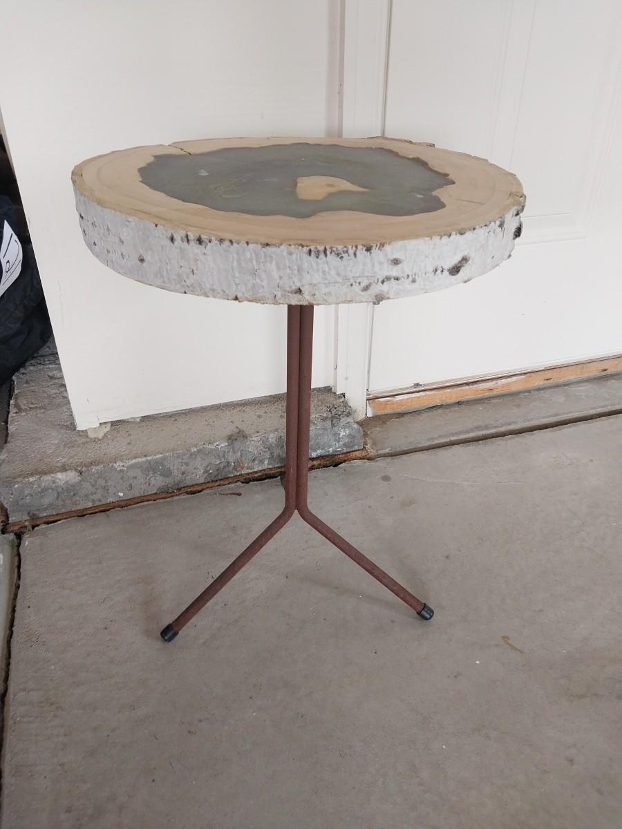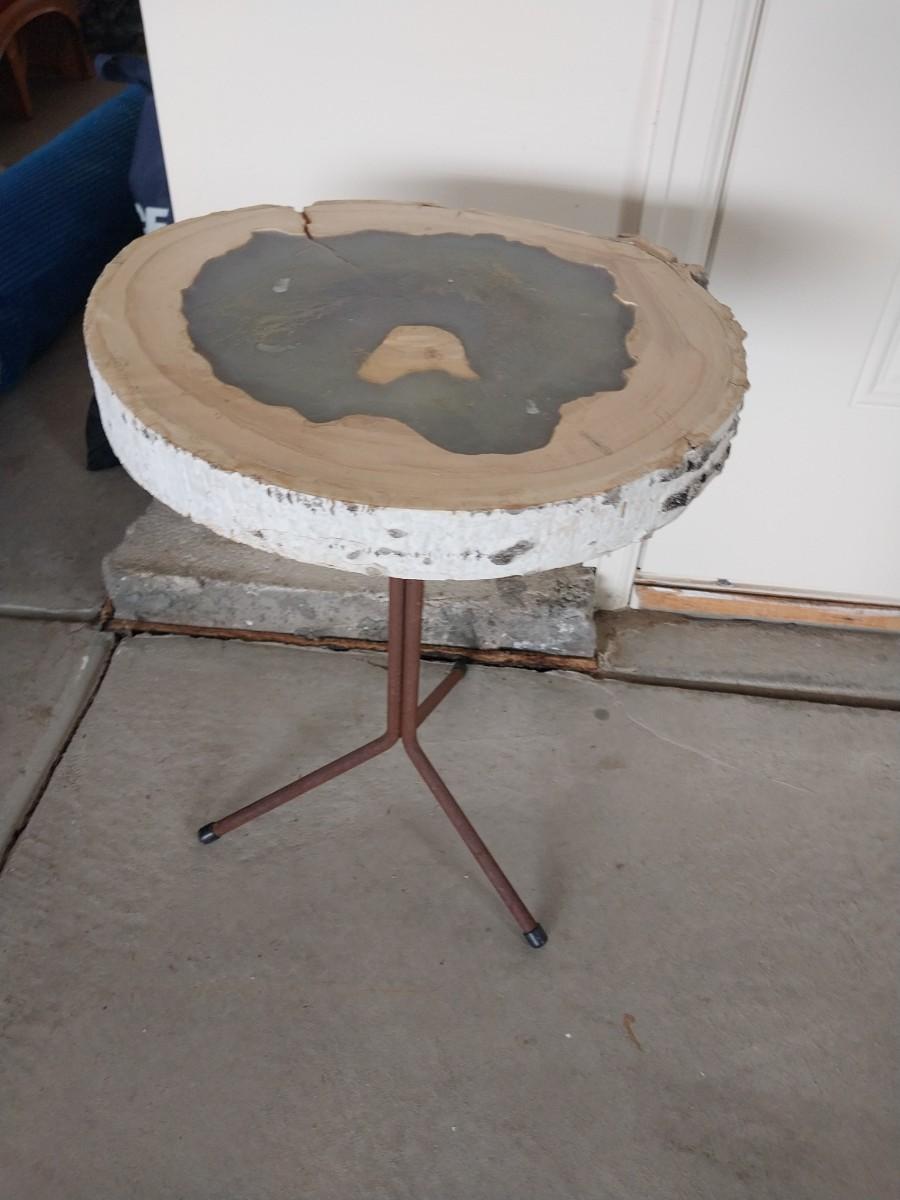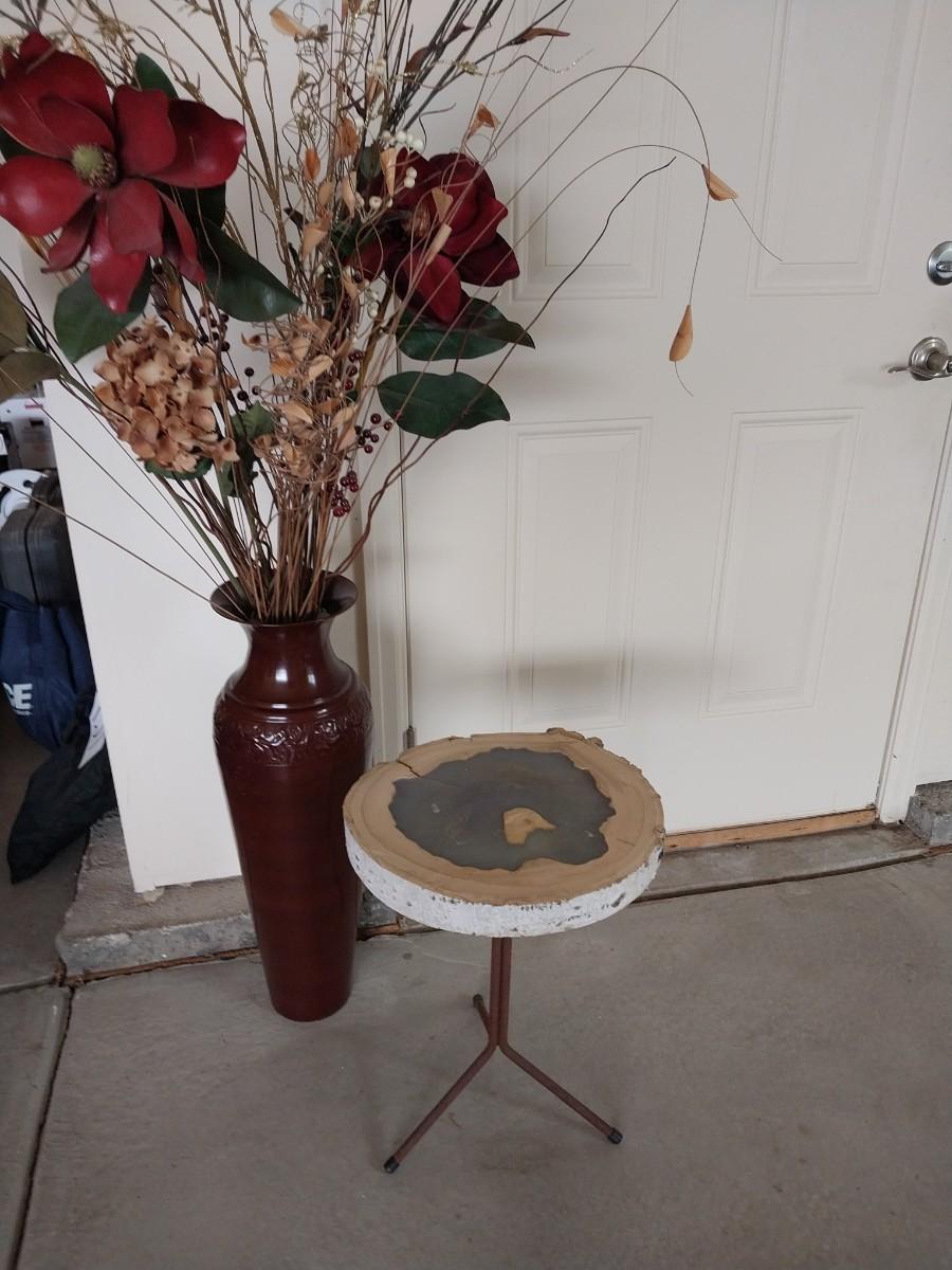 TREE TRUNK TOP TABLEAND VASE WITH FAUX FLOWERS