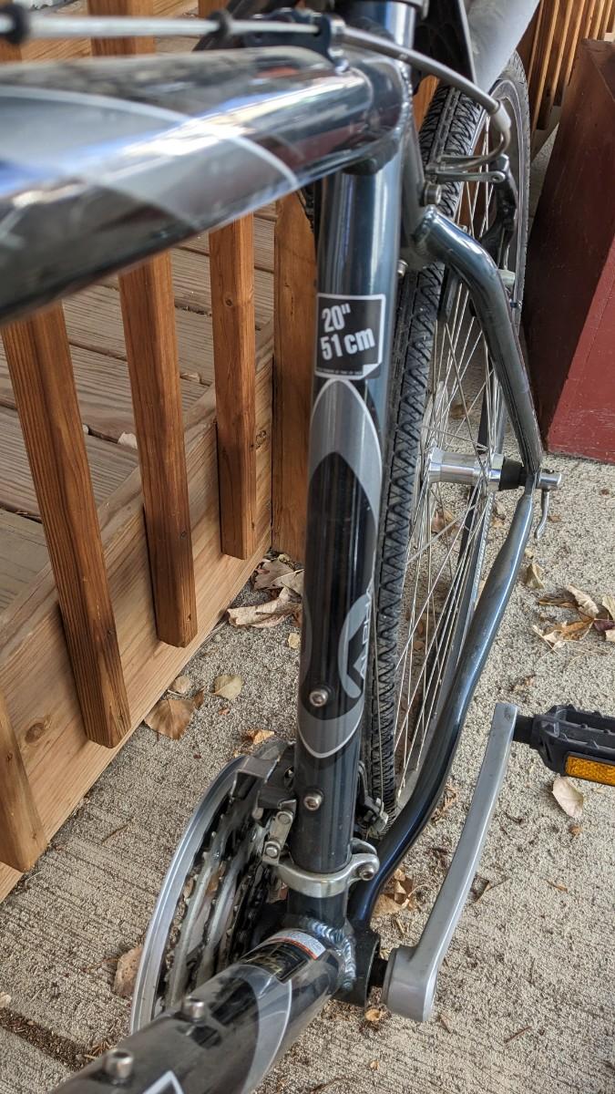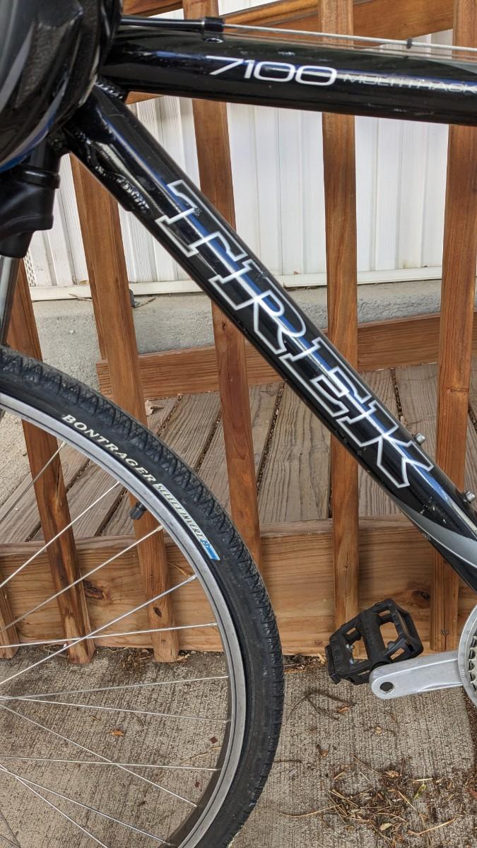 A nearly brand spanking new, 20", Trek bicycle with helmet and bike pump. Tires need air and chain needs reset. No other flaws noted to this great bike. No shipping. Shed