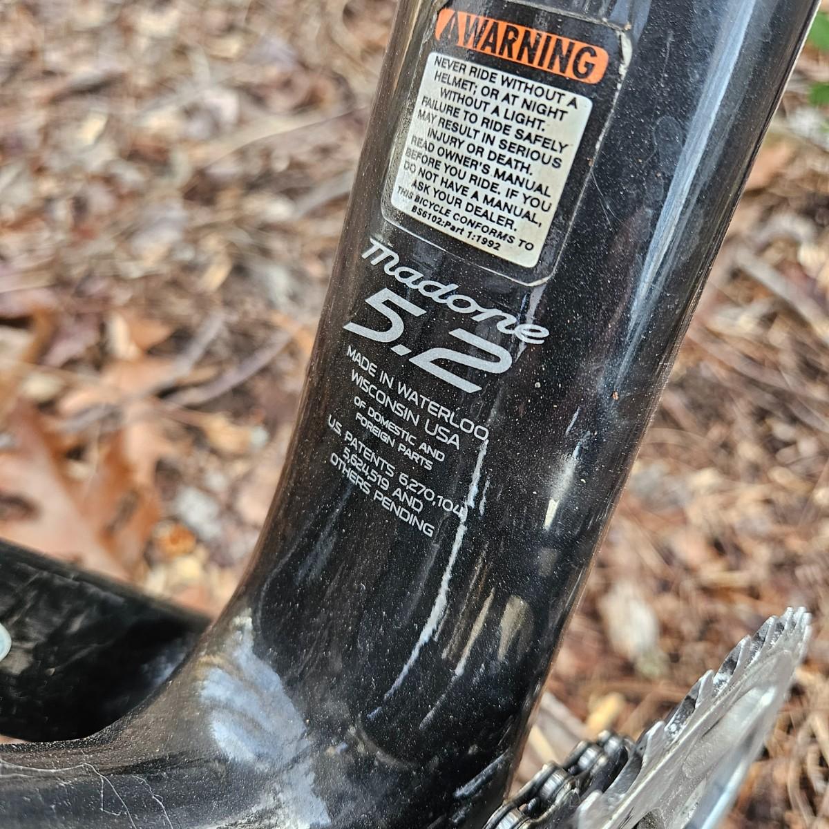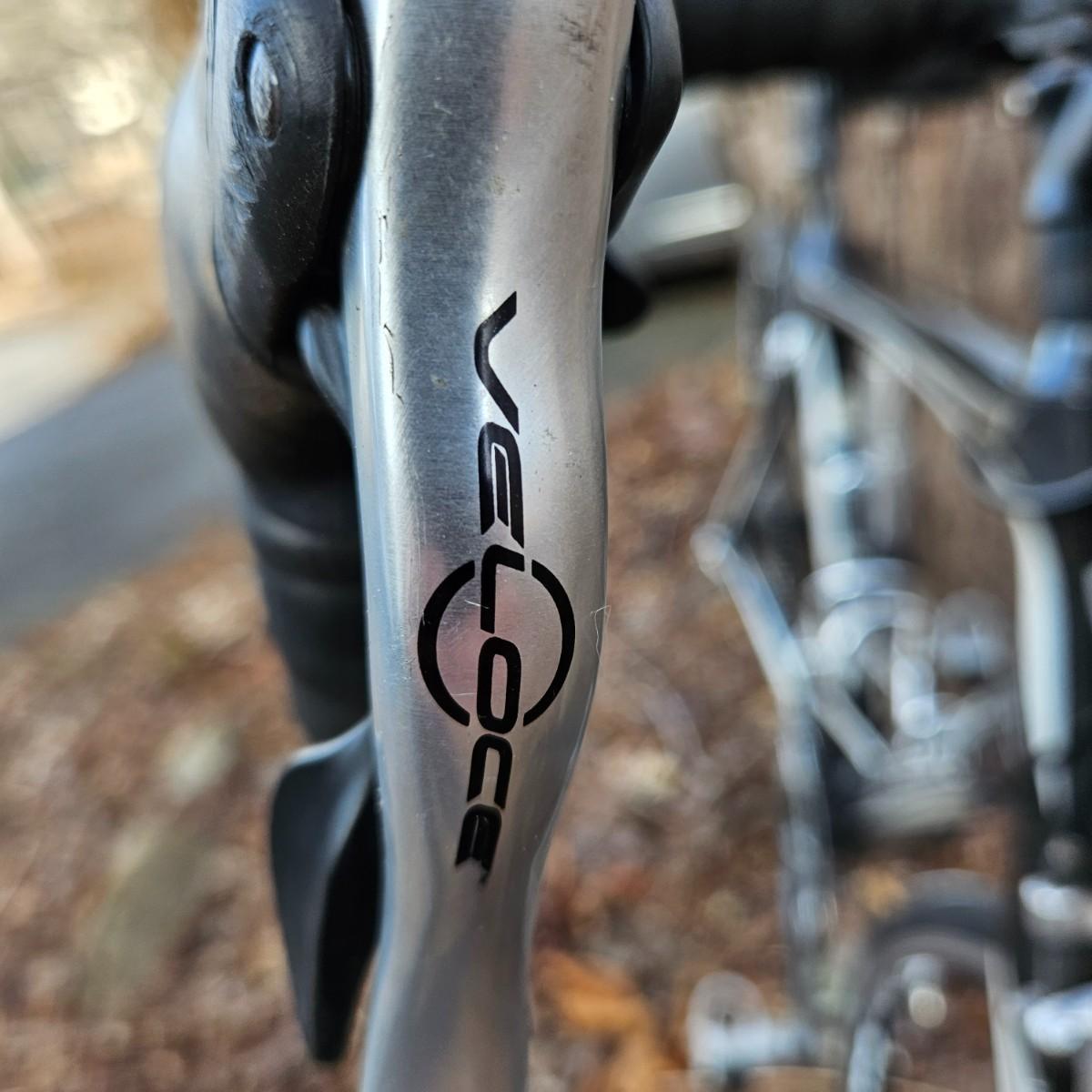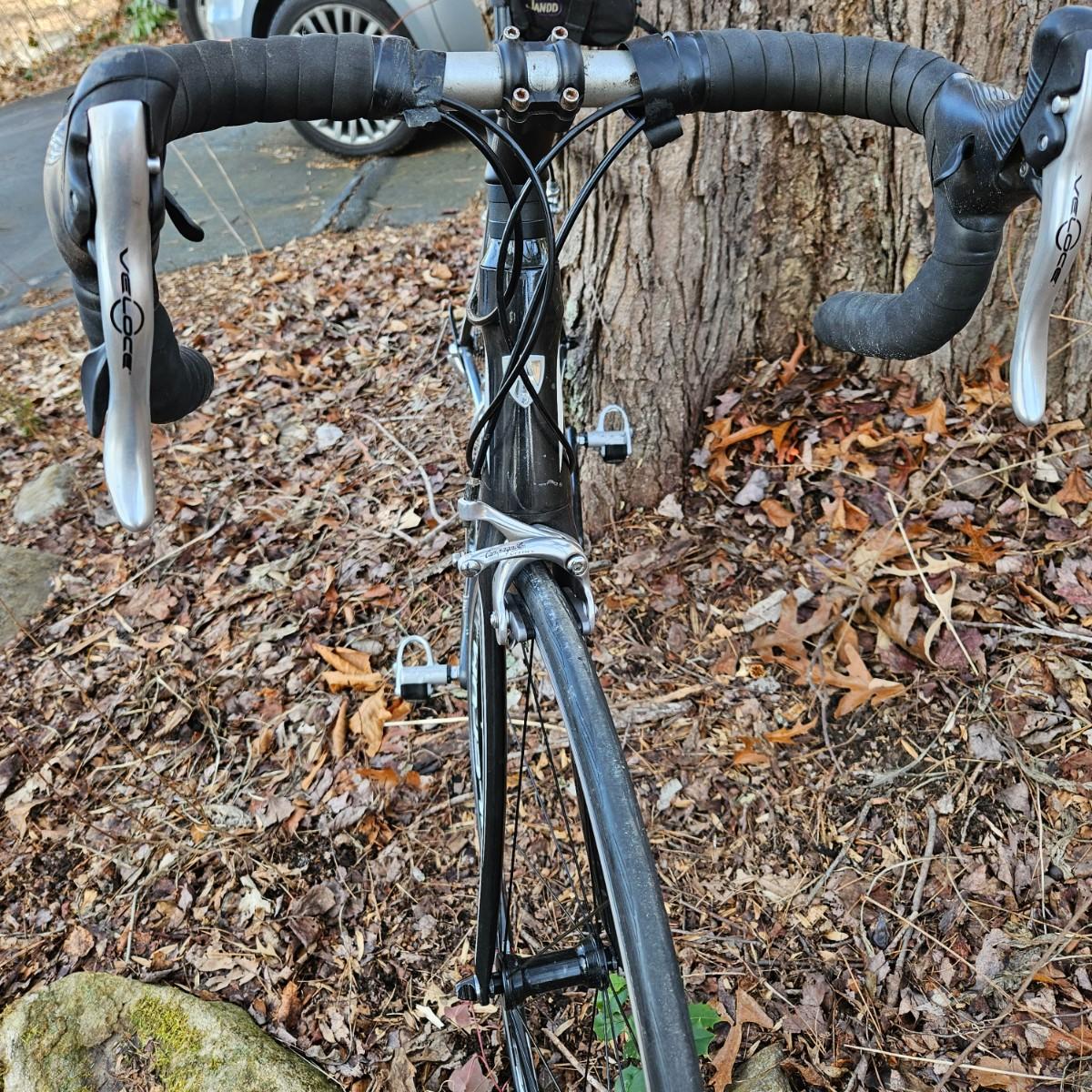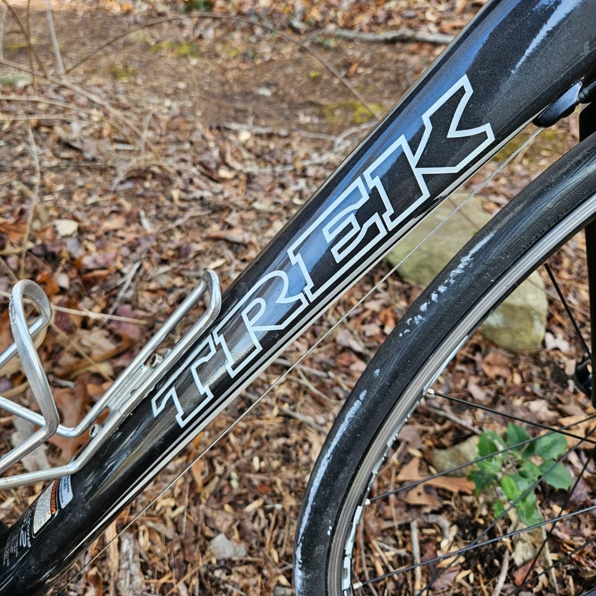 A Trek Madone 5.2 OCLV carbon frame road bike with Campagnolo derailer, shifters and brakes. It has a 3 x 10 gearing with a FSA crank arms and rings. The rims are Fulcrum Racing 7. It comes with a small tool bag and air pump. The top tube measures approximately 20.5" and the seat tube measures approximately 21.25". There are some minor blemishes associated with use, see attached pictures for more detail. Local pickup only